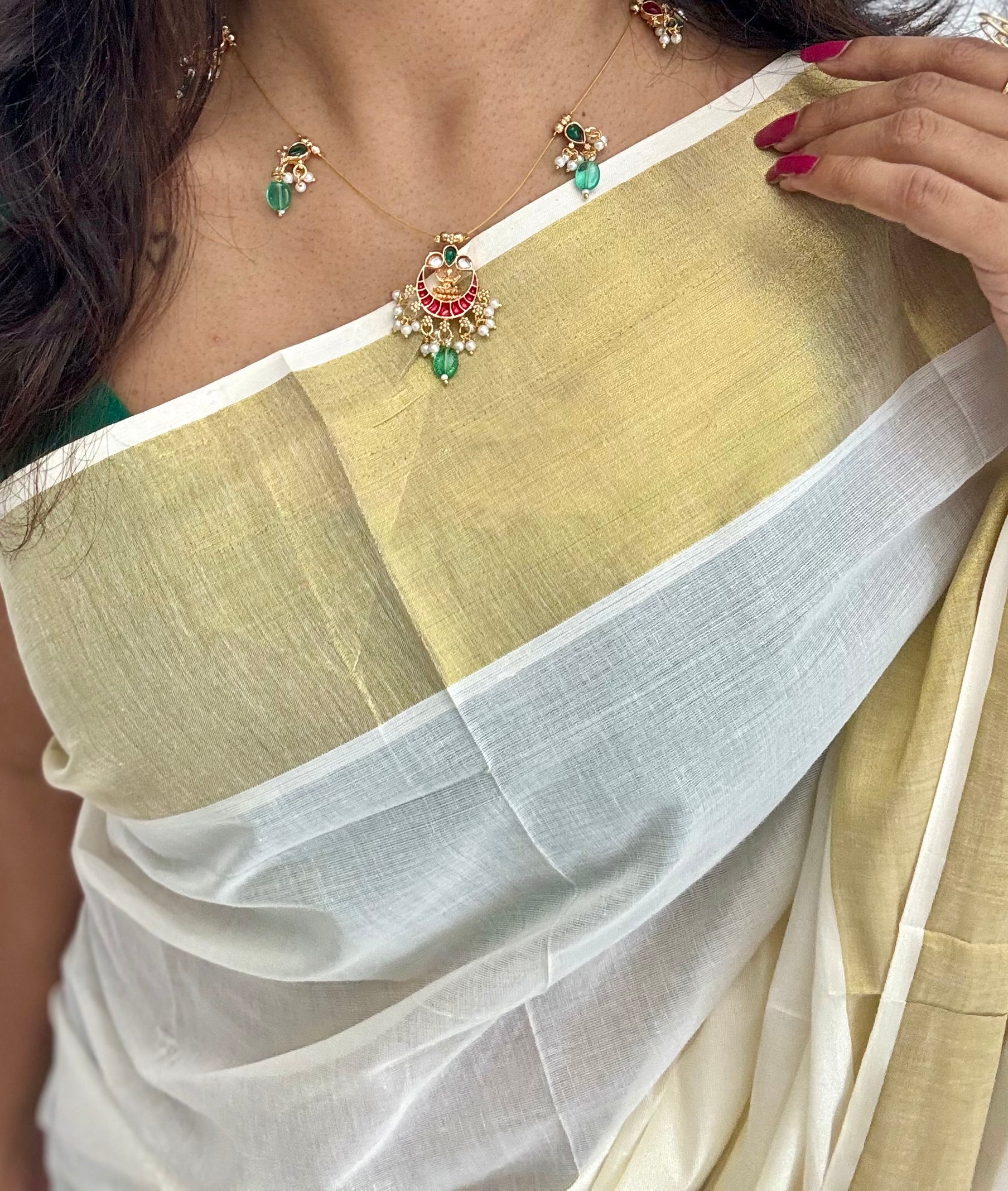 Half moon shaped jadau kundan pendant, invisible chain neckpiece - YCAGC67