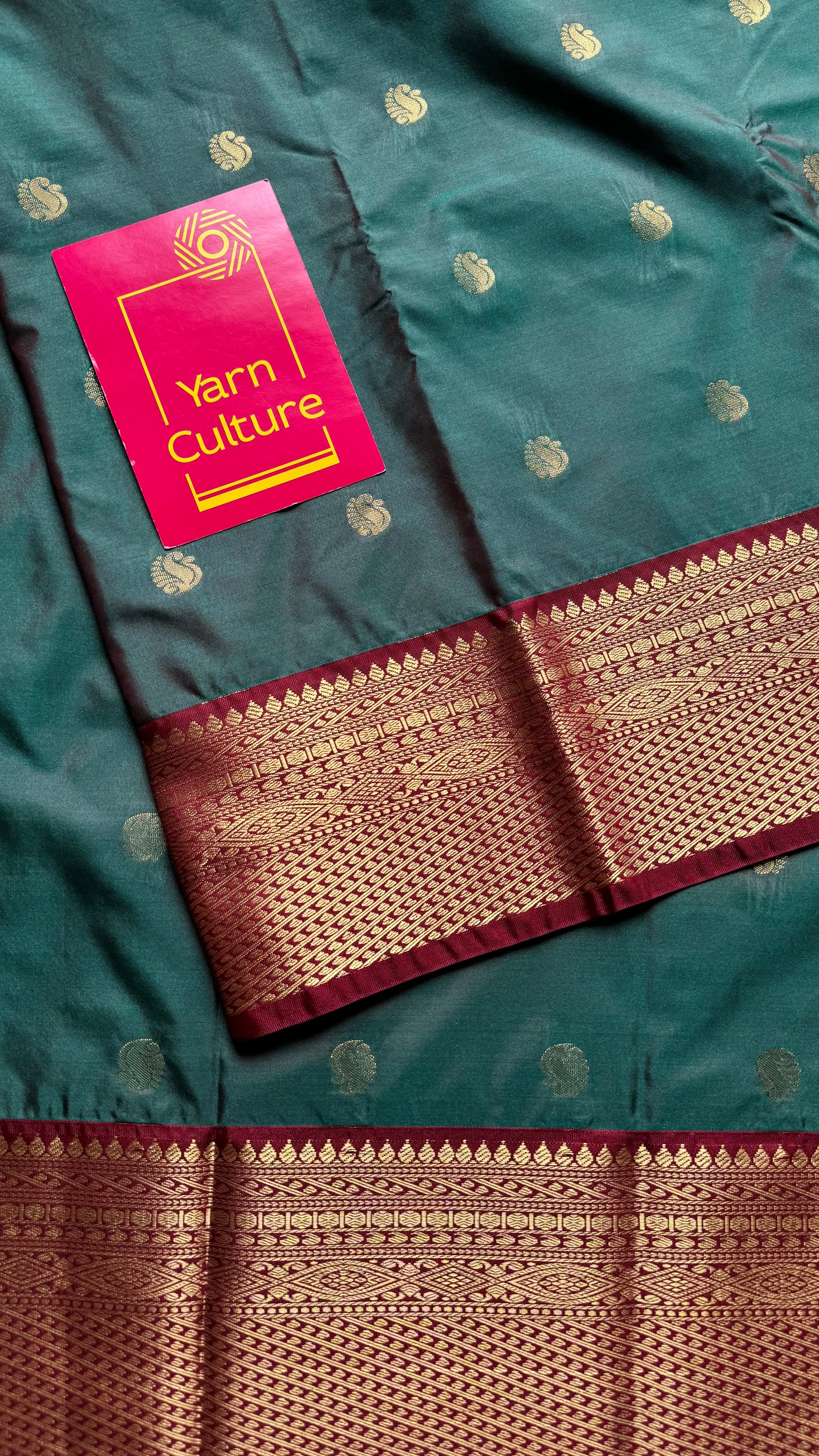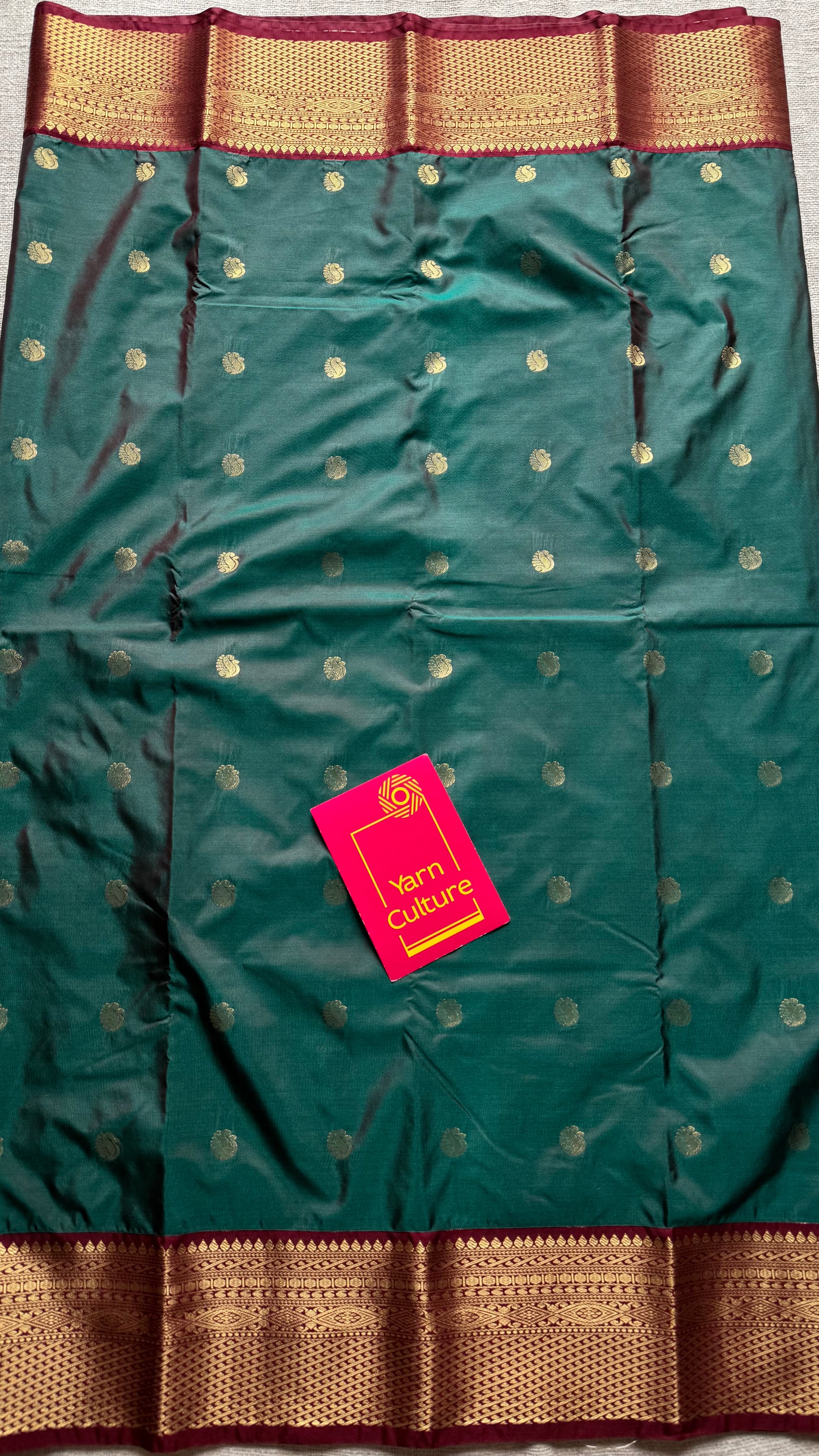Harini - Emerald green with maroon, handloom korvai semi silk - YCCOTNFEJUKS07