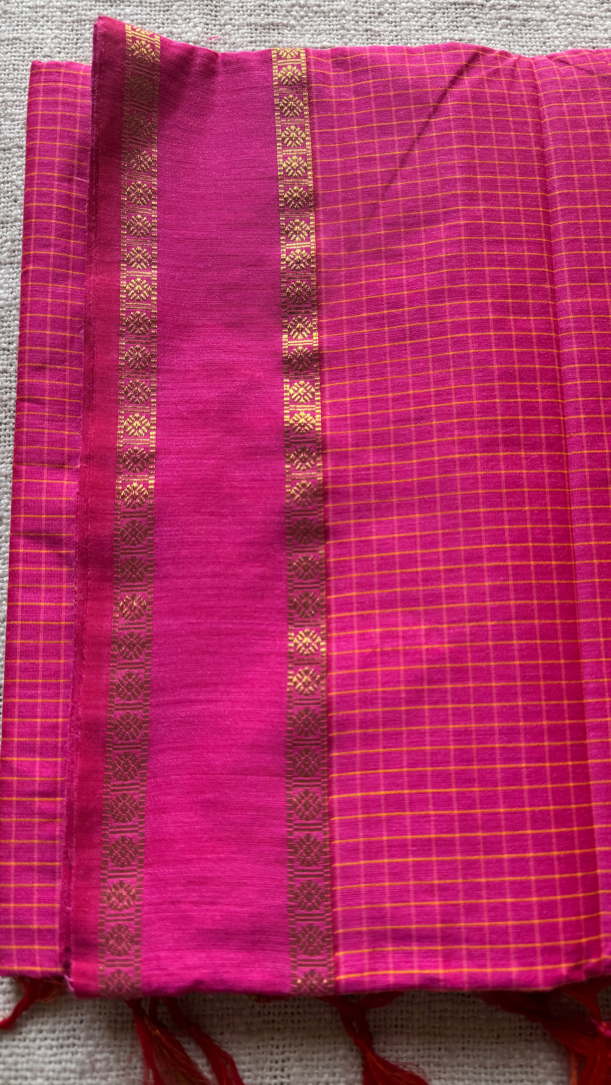 Hot pink, arani checks, cotton silk - YCCOTNOCAR08