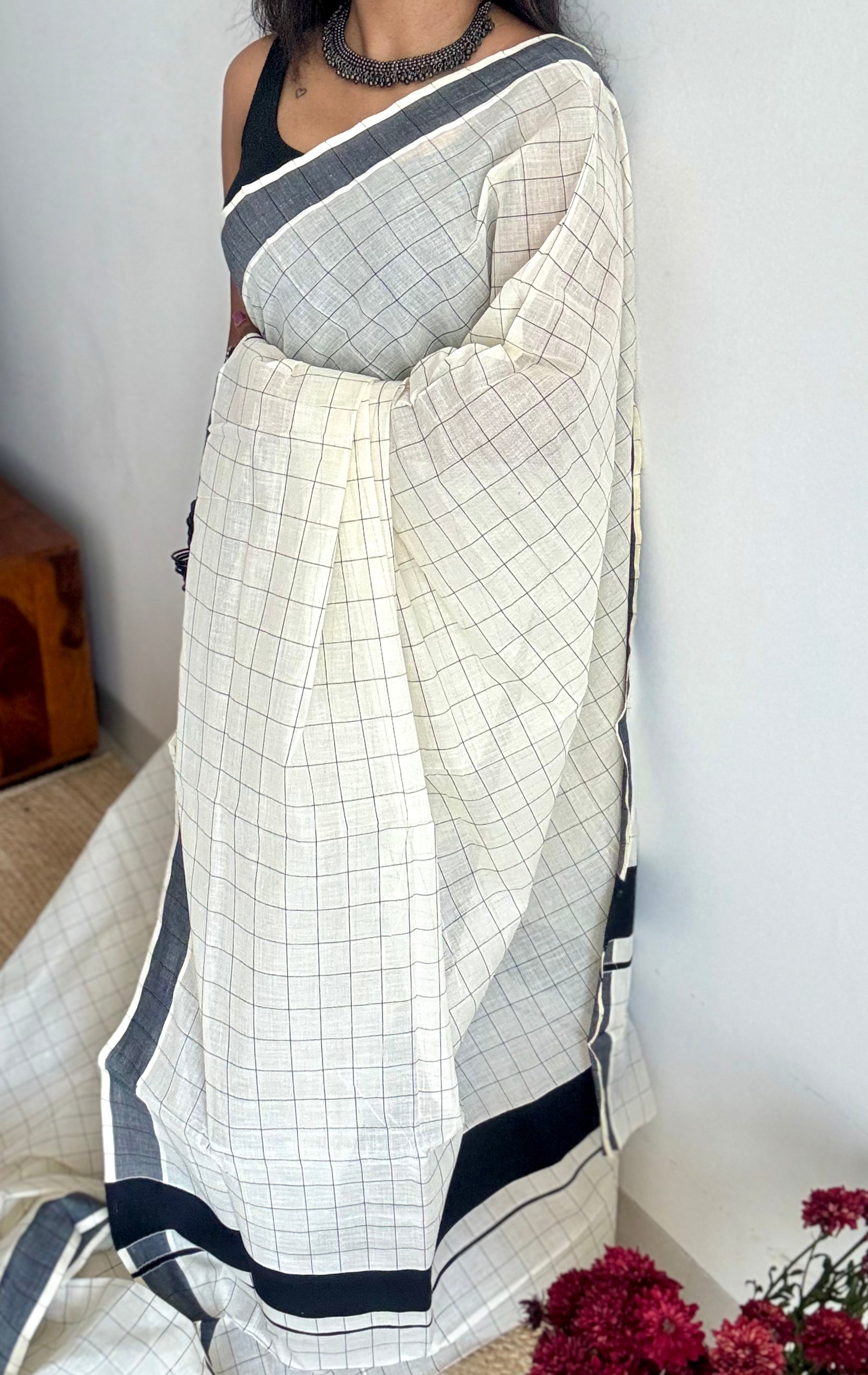 Ivory and black checks, kerala cotton - YCON25KCPC68