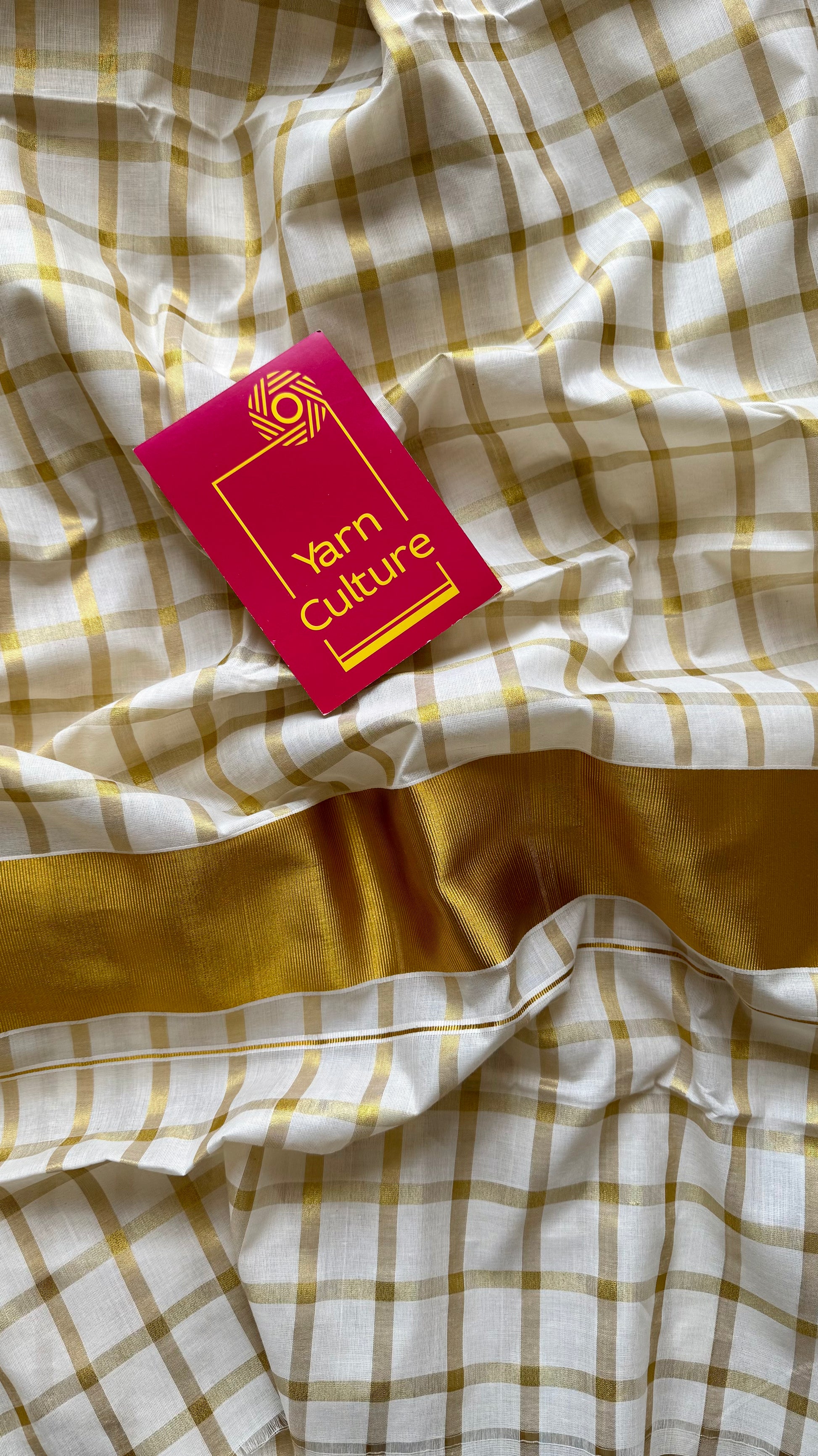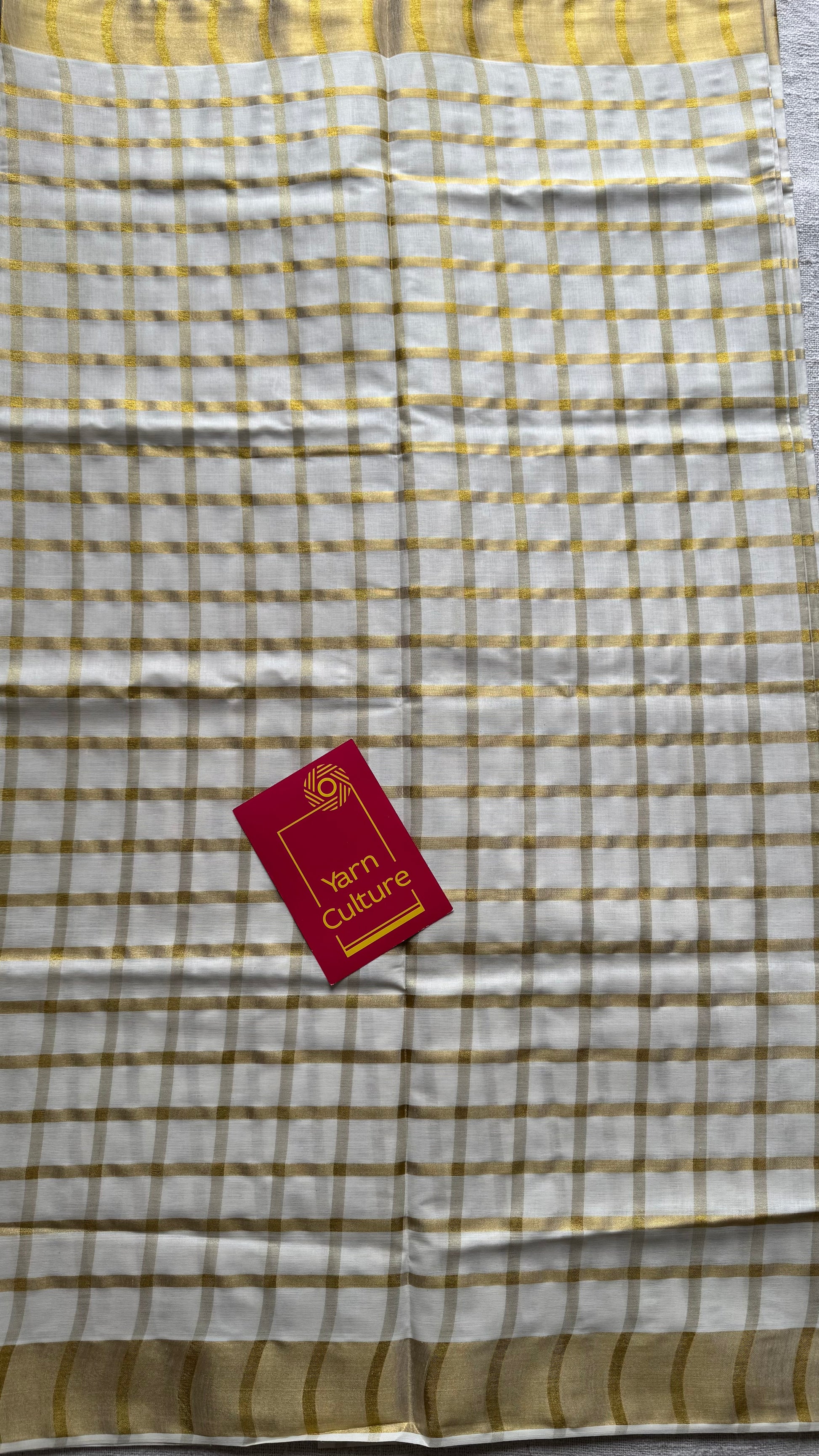 Ivory and gold bold checks, kerala tissue cotton - YCON25KCMC66