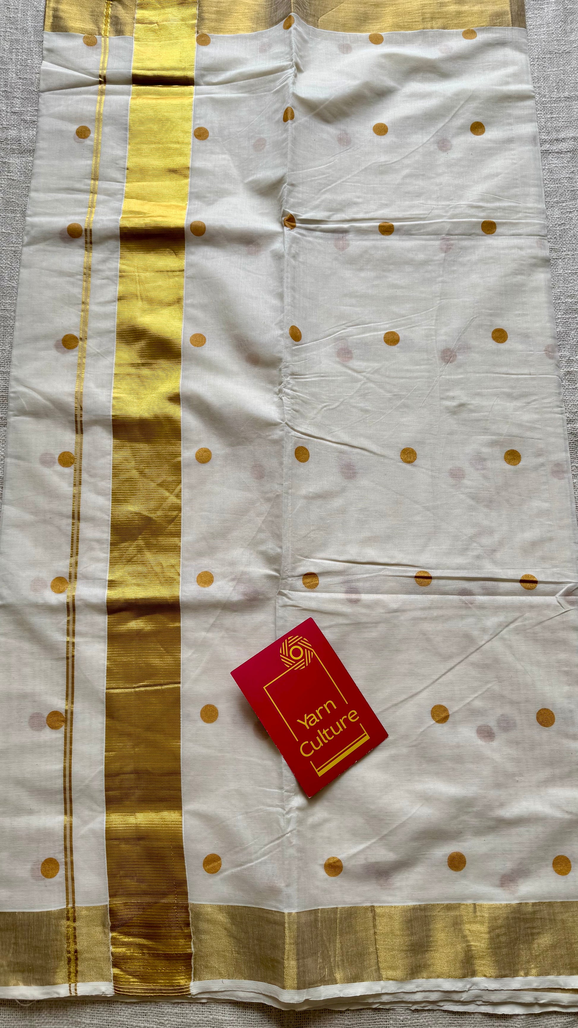 Ivory and gold with buttas, kerala soft cotton - YCON25KCPD253