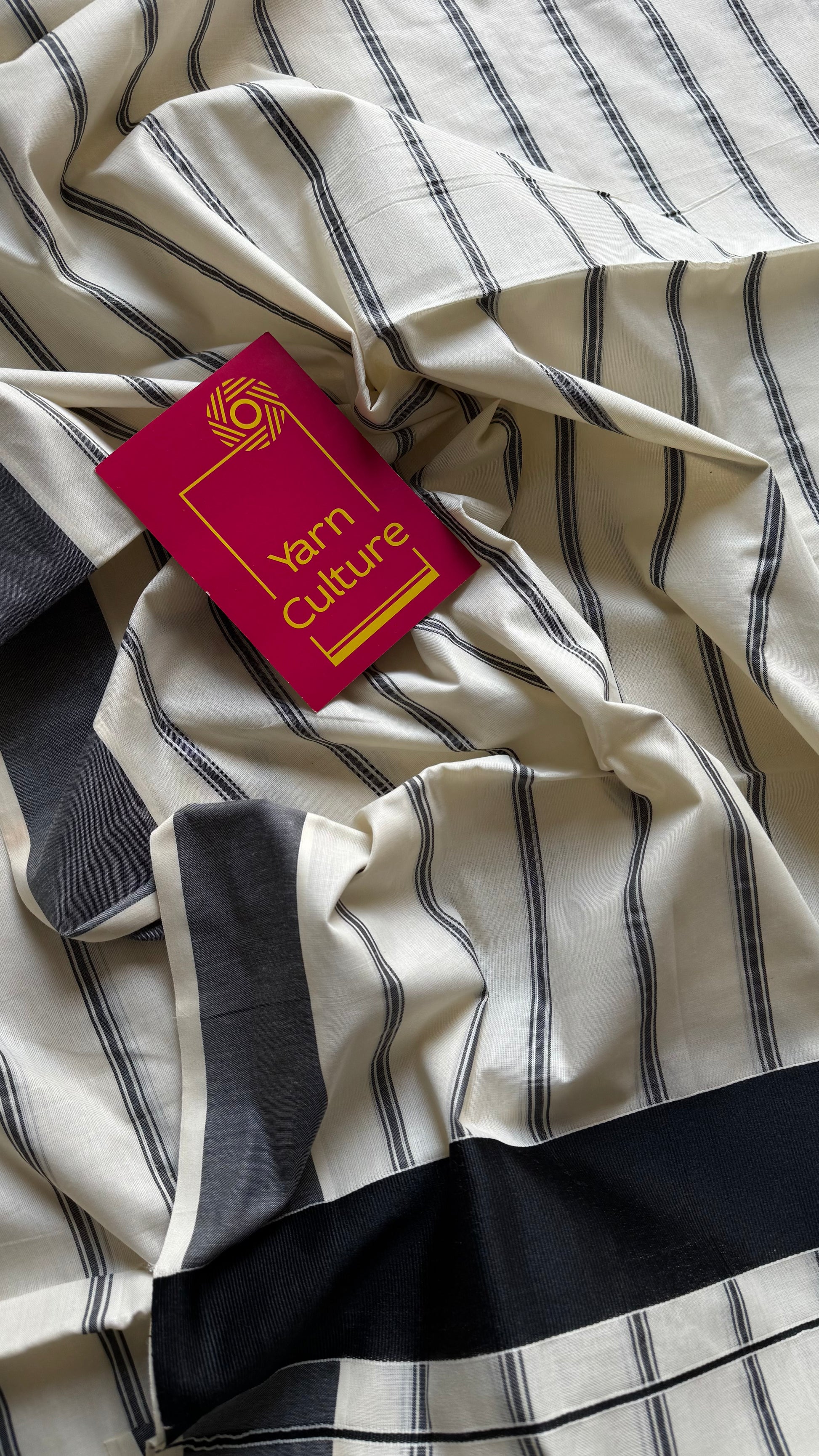 Ivory Kerala cotton saree with black stripes and border - YCIEKCFE321