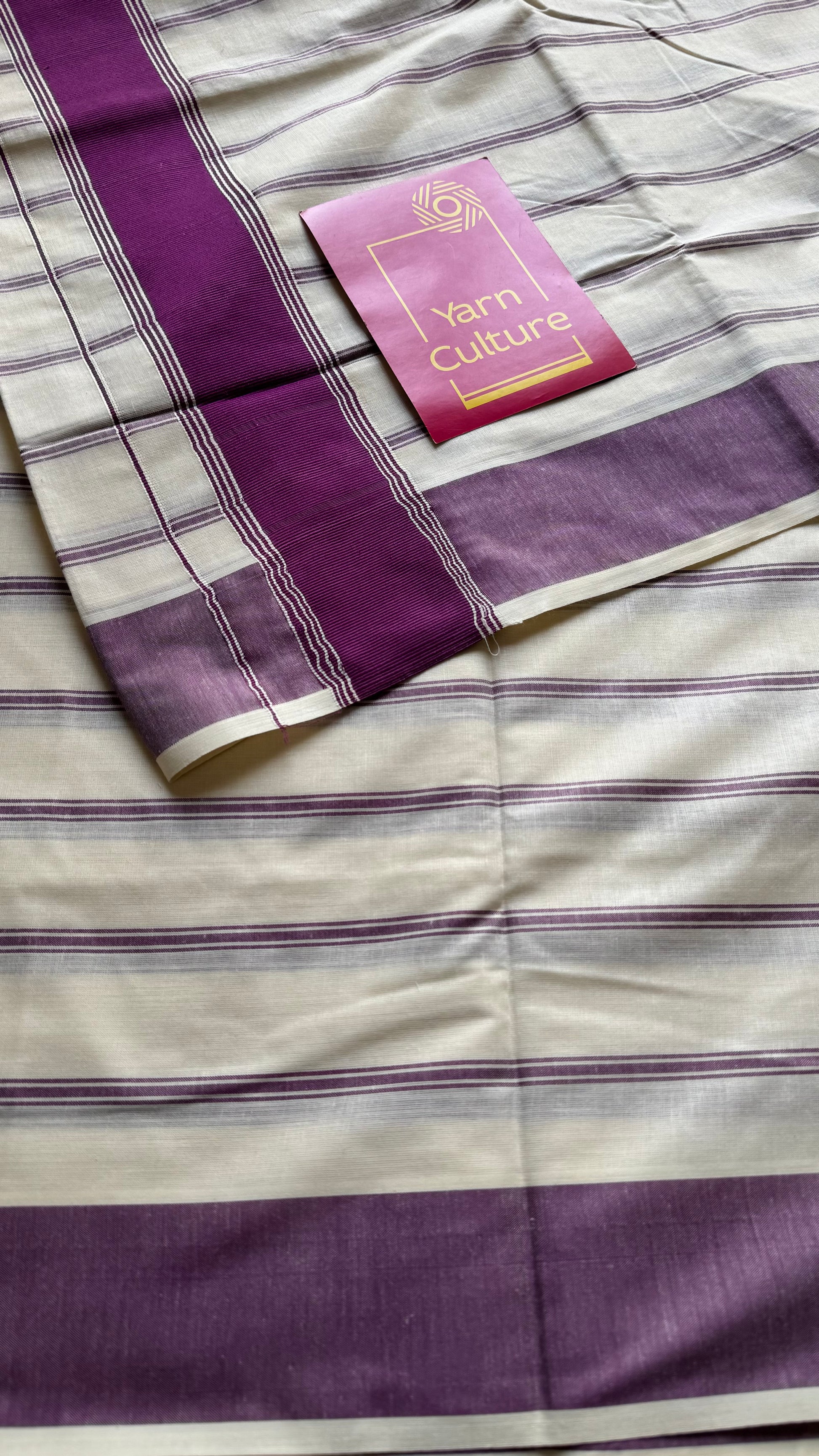 Ivory Kerala cotton saree with purple pink (vadamalli) stripes and border - YCIEKCFE322