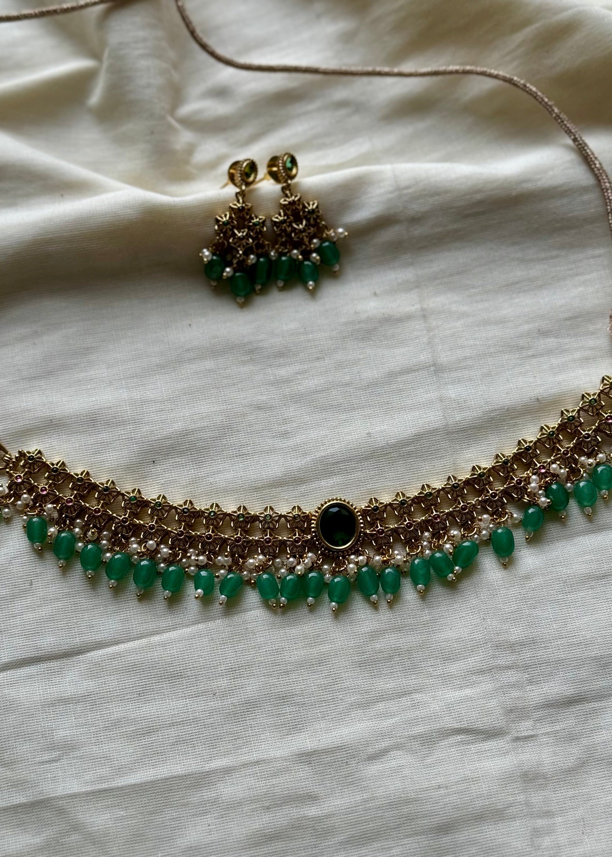 Jadau kundan choker neckpiece with earrings - YCAGNP268