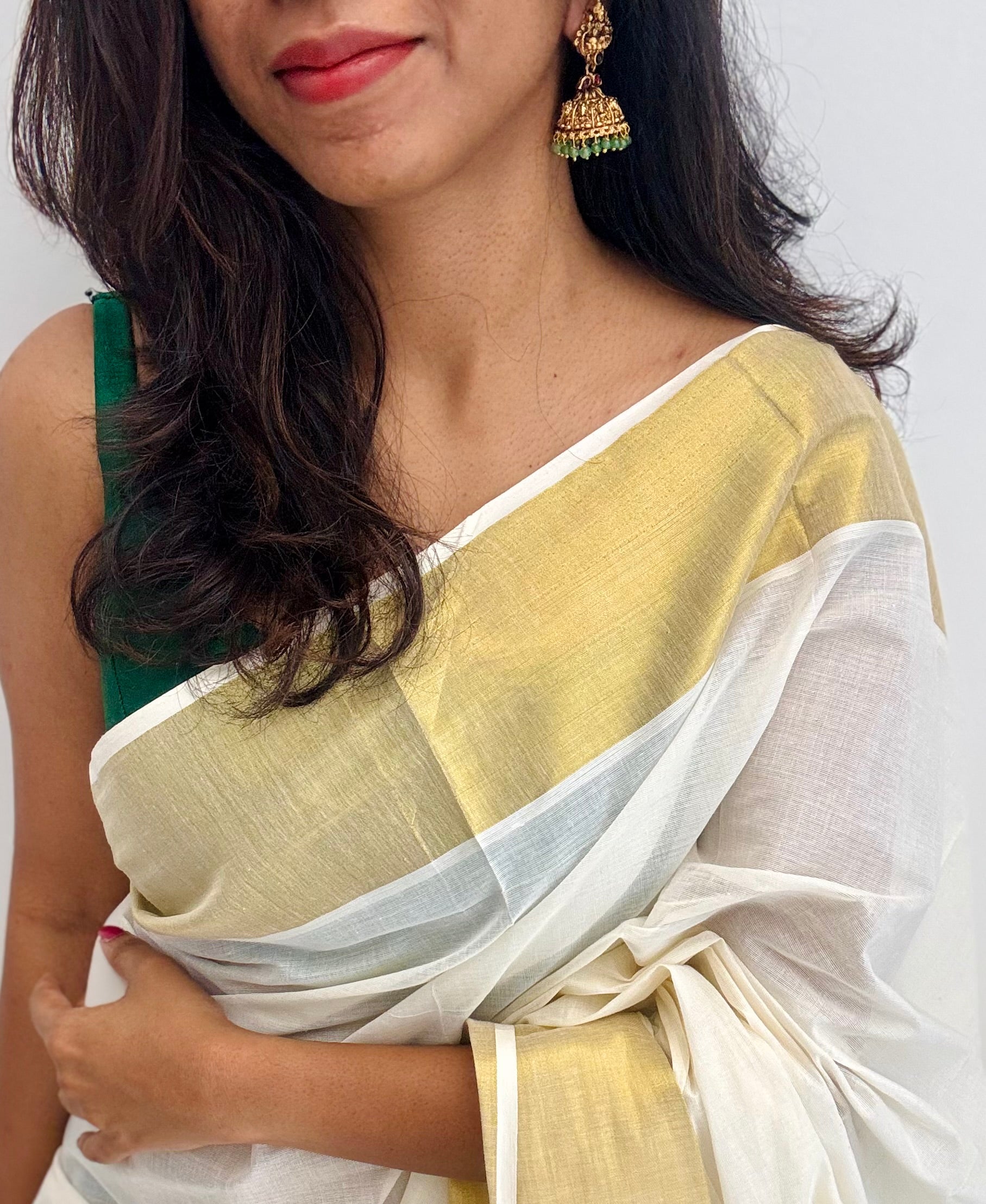 These temple design-inspired antique gold jhumkas are perfect for that traditional attire.