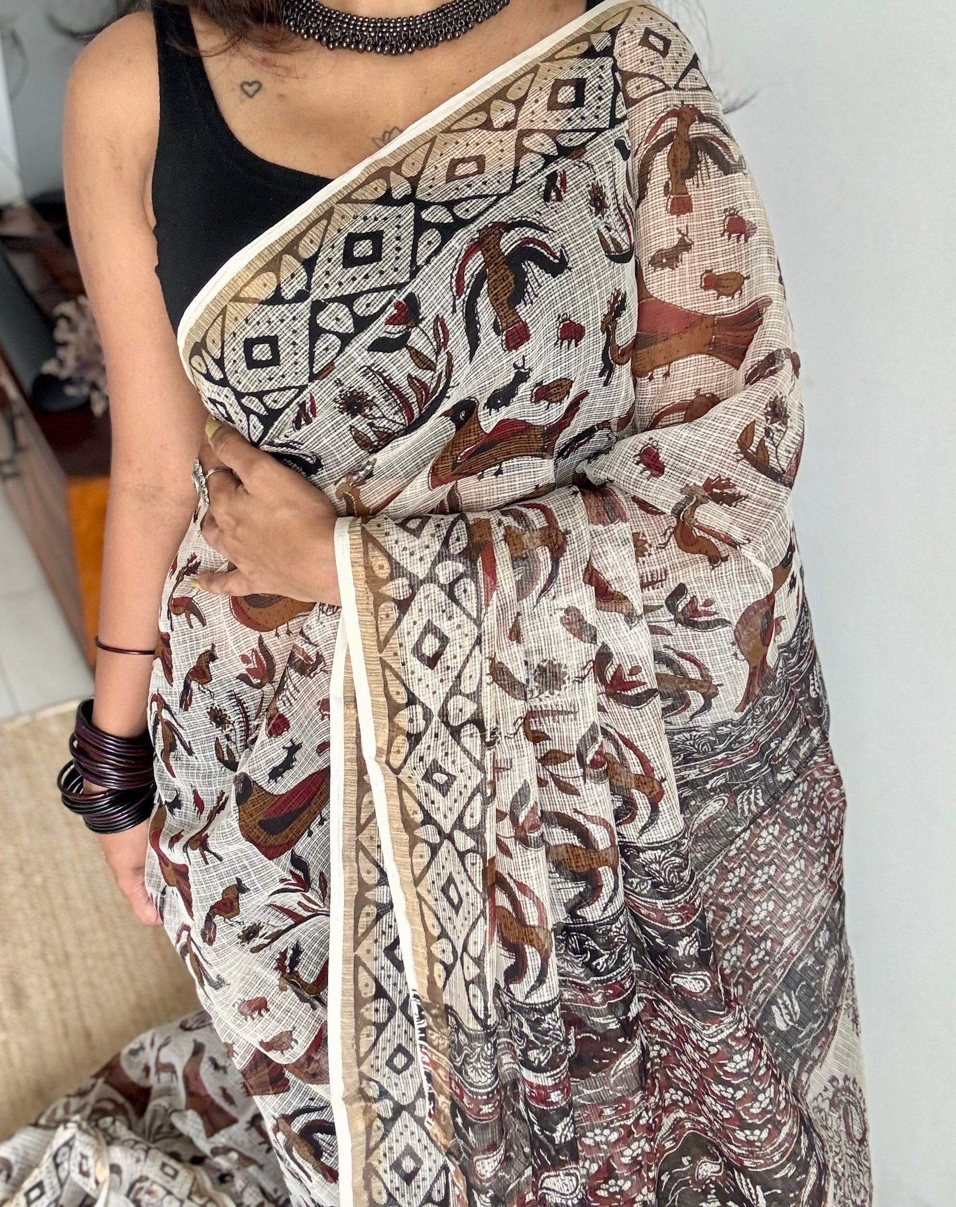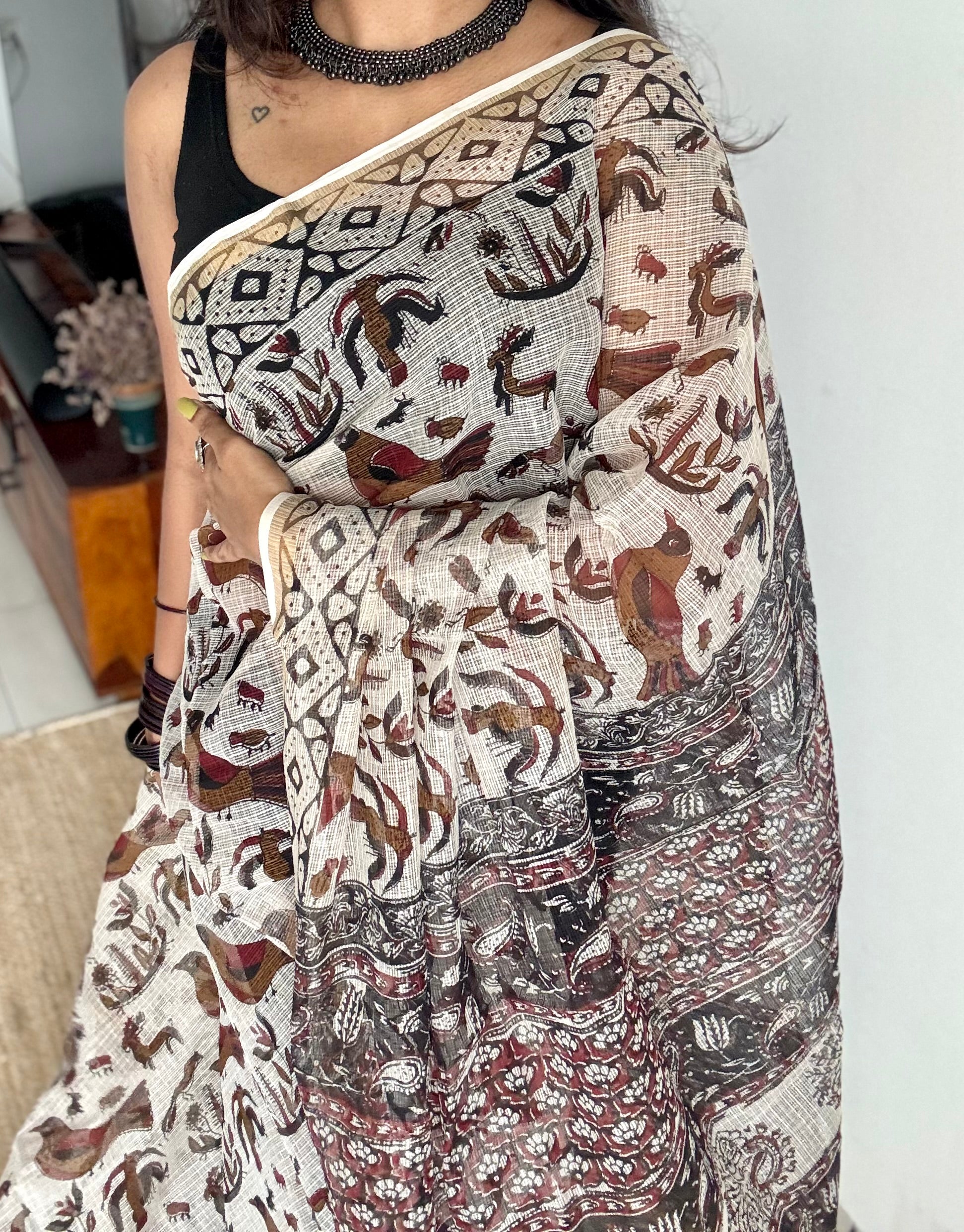 A beige canvas alive with birds and animals in multicolour prints, Jungle Noor celebrates nature in its most artistic form. Playful yet rooted, it carries the soul of Rajasthan where every creature and color finds its place in the weave of life.