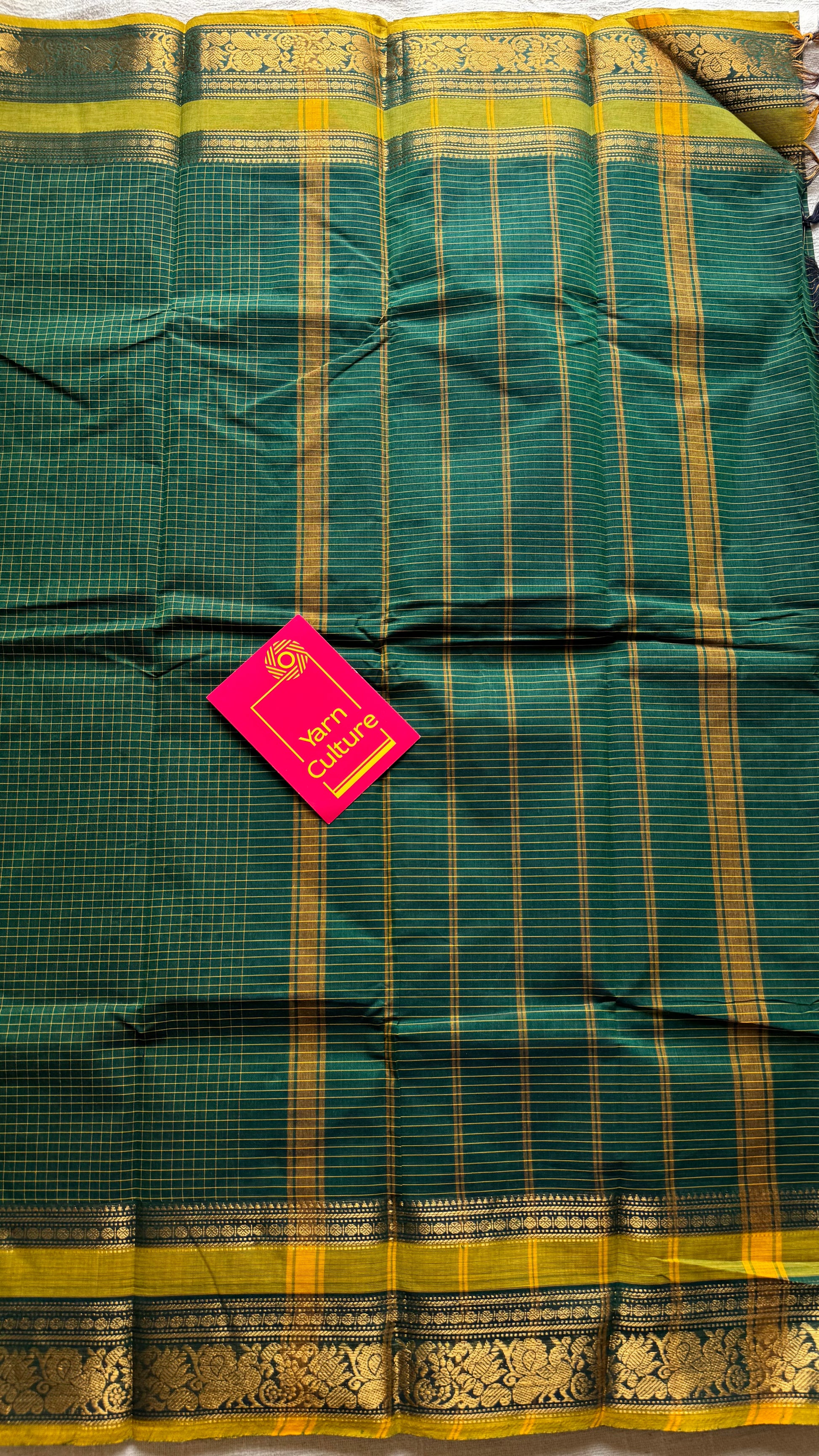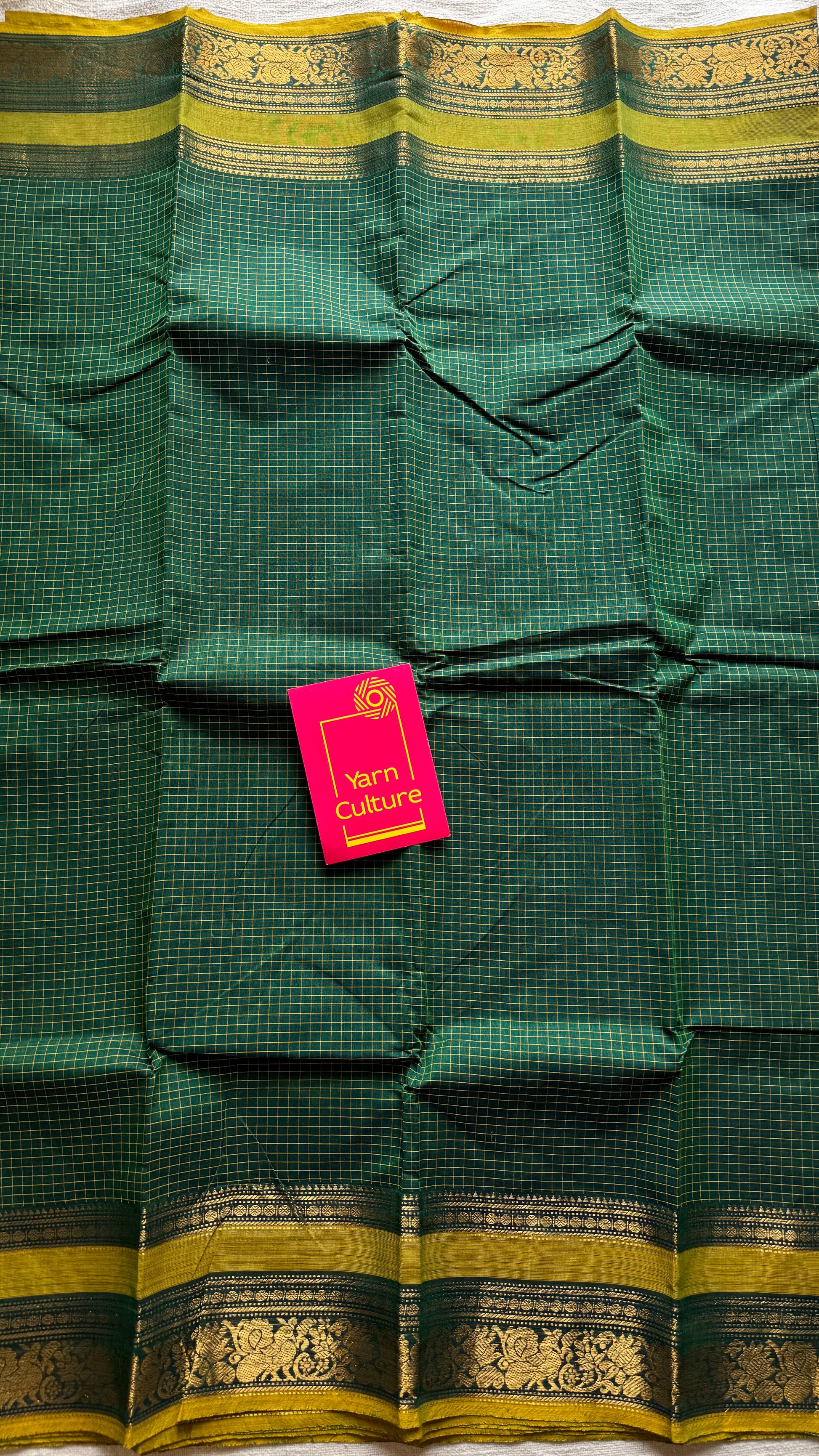 Kanchi cotton saree, green checks with korvai border - YCCOTNAP74