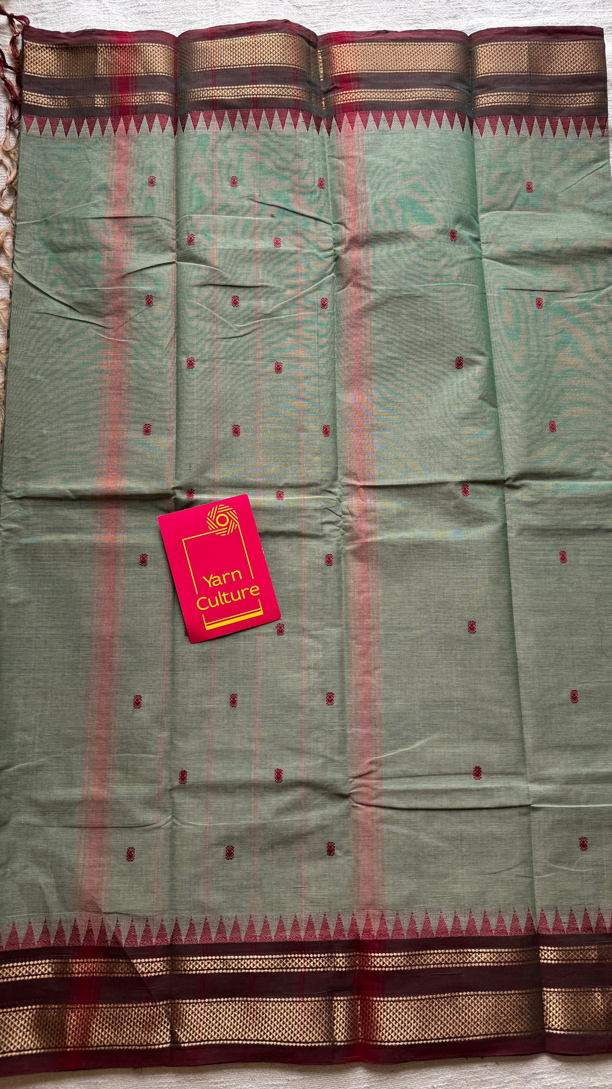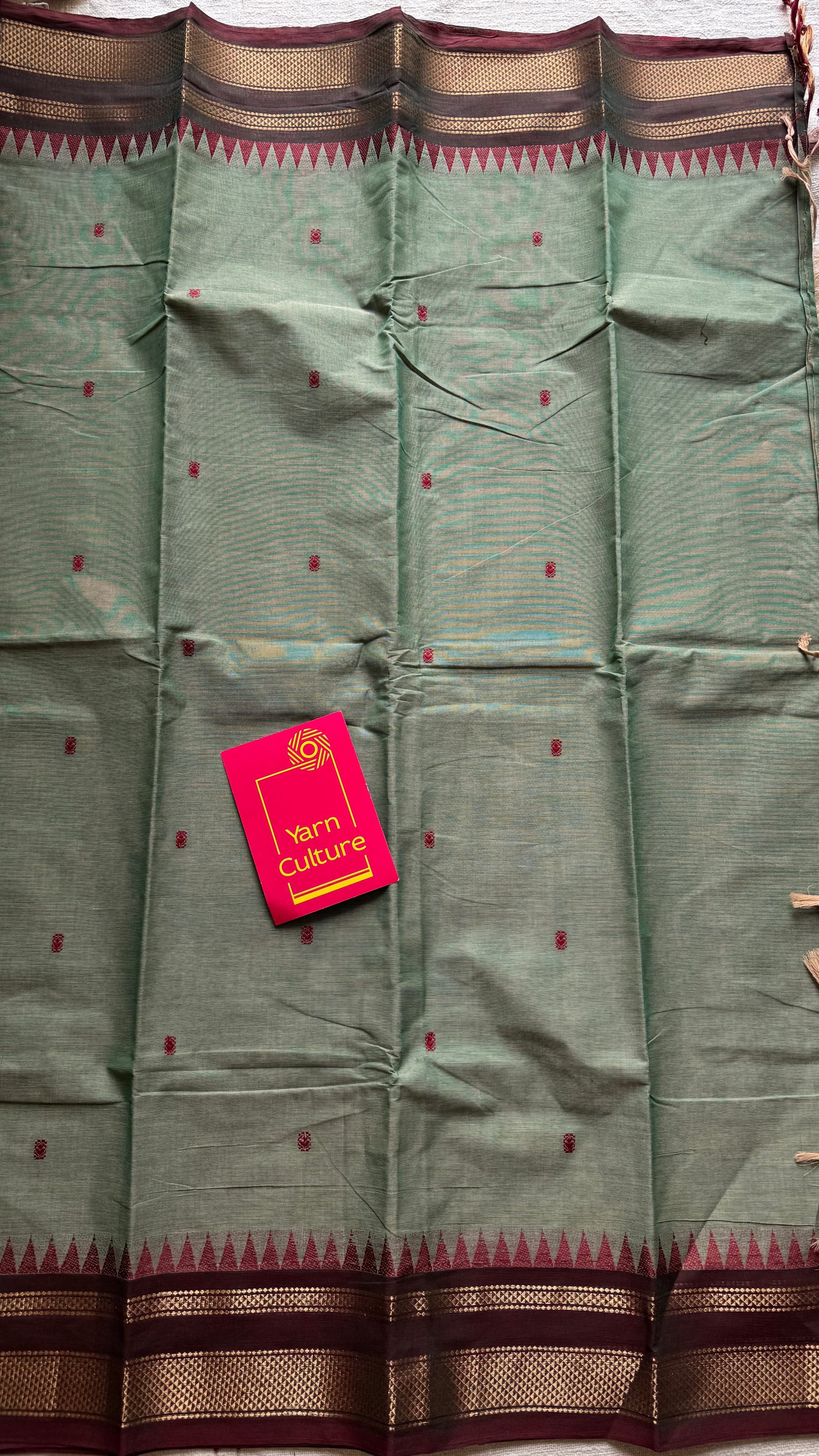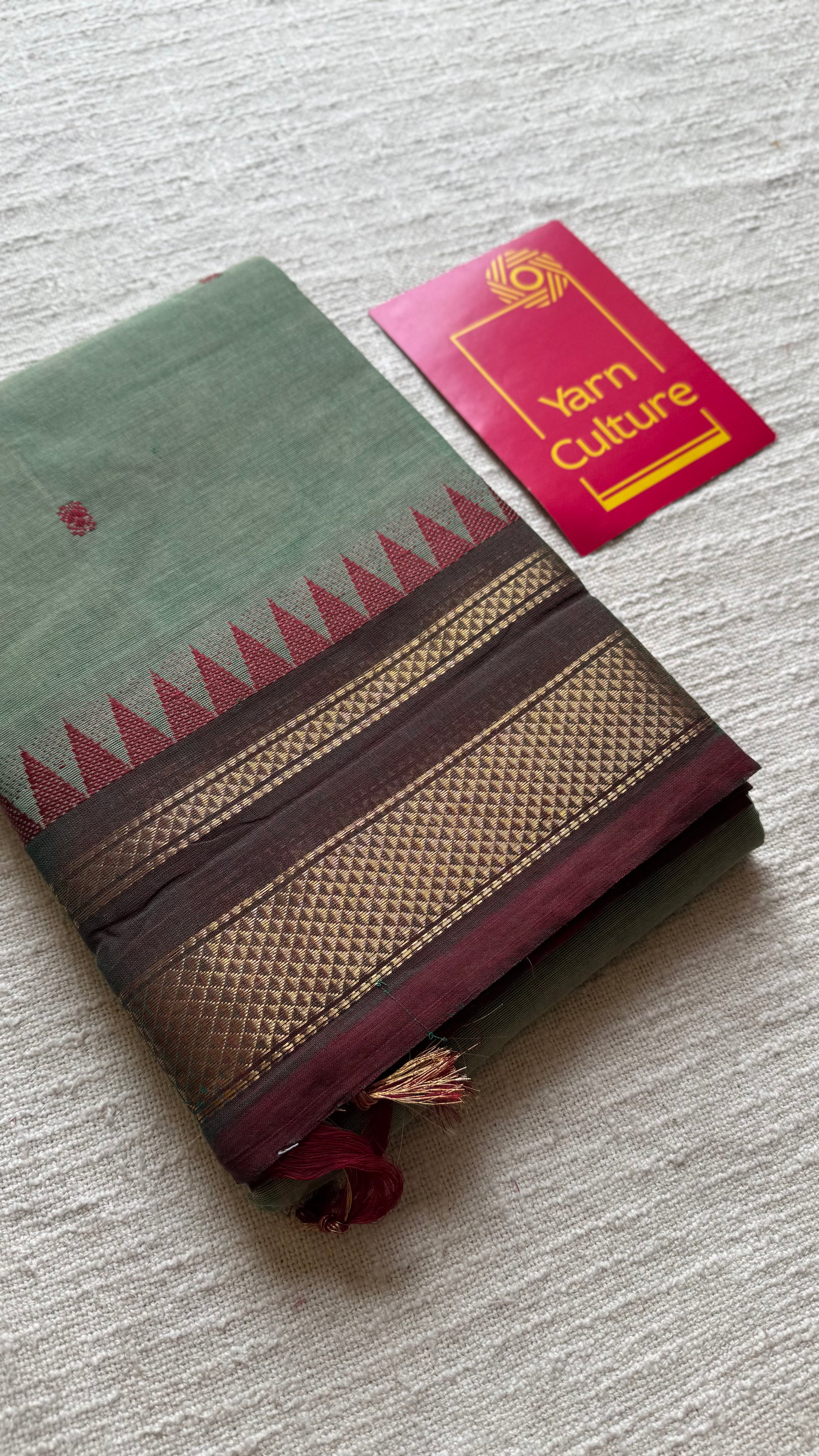 Kanchi cotton saree, mint green with brown khun inspired zari border - YCCOTNAP81