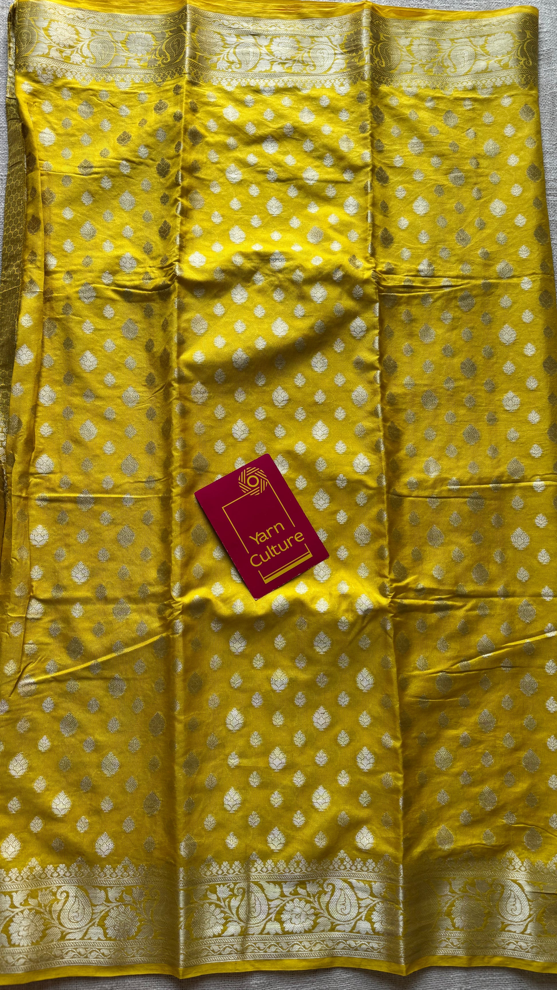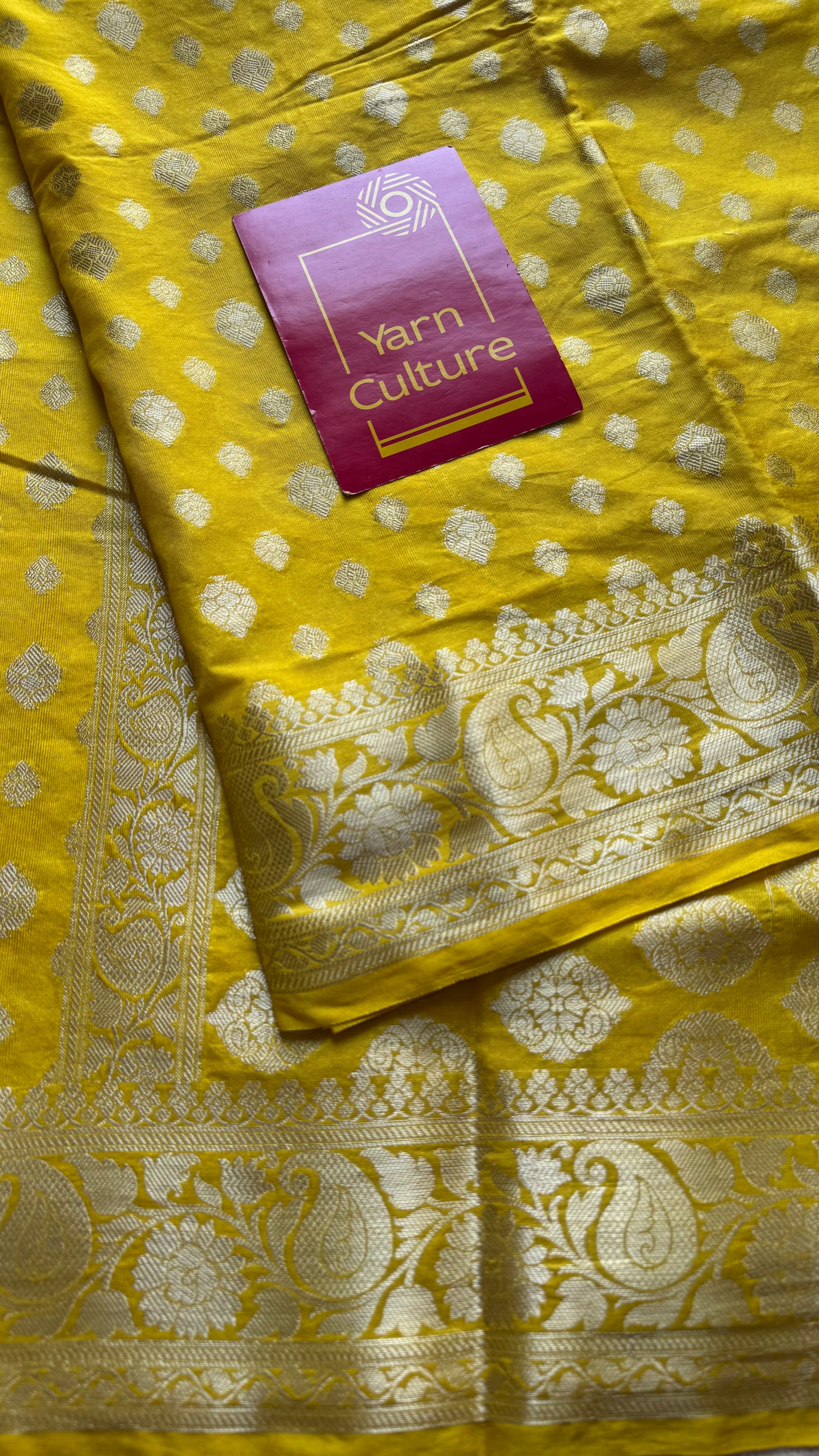Lemon yellow, silver buttas and zari, Banarasi semi-silk - YCDESE34
