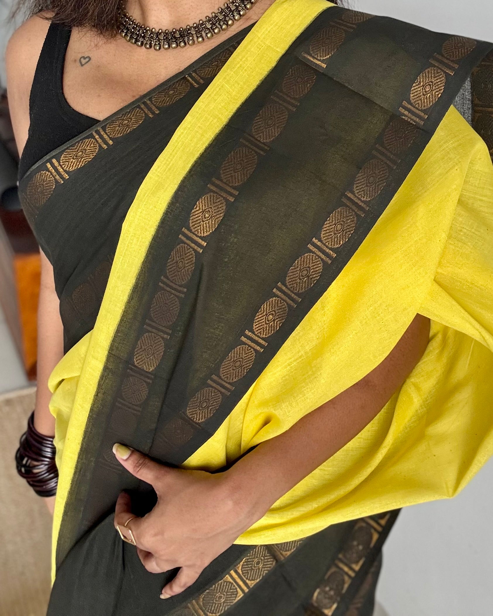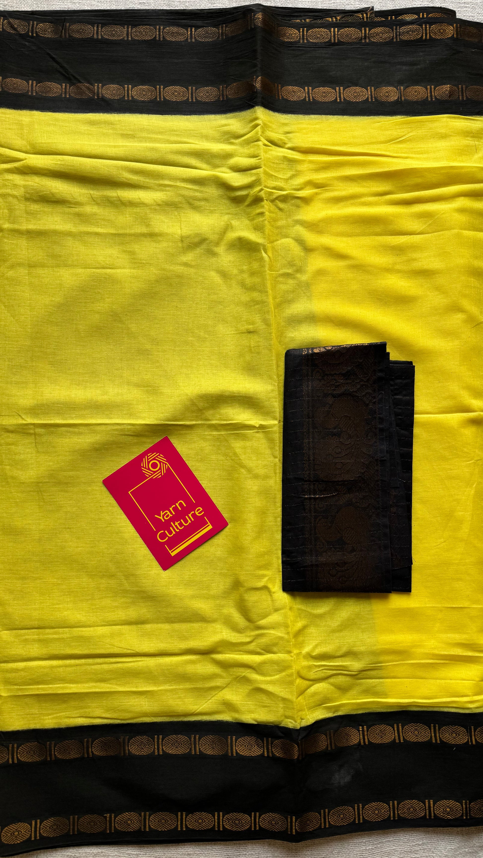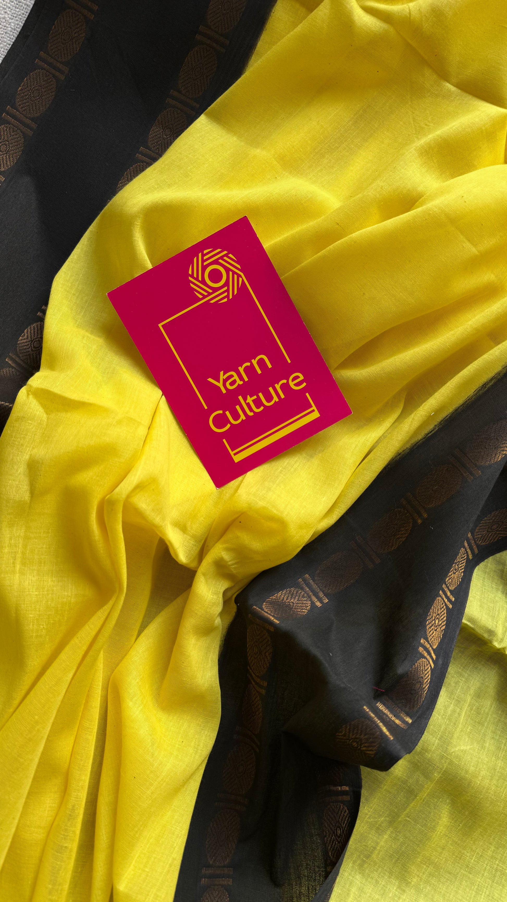 Lemon yellow with black, kattuchayam dyed madurai soft cotton - YCCOTNMSJA192