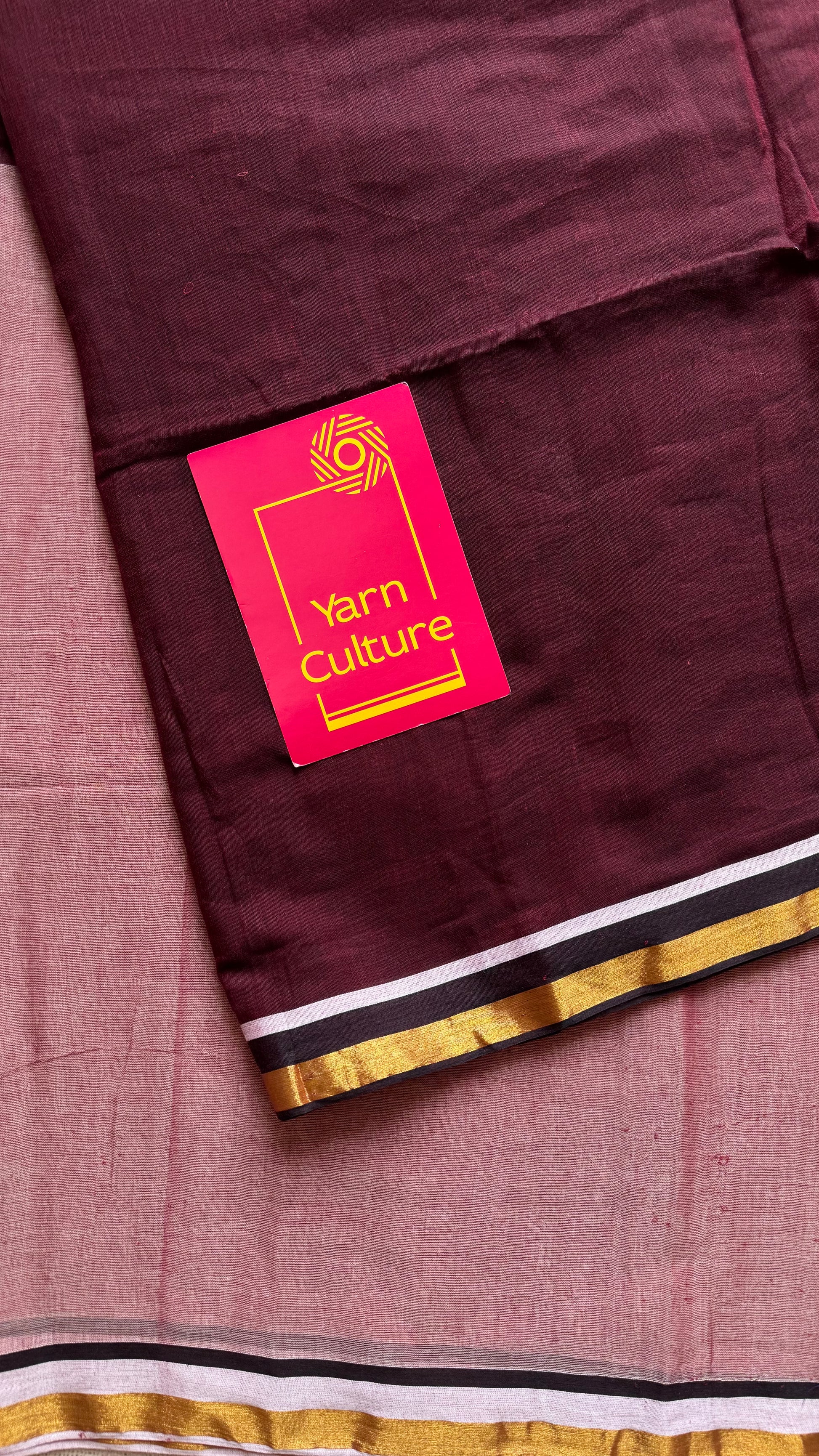Everybody's favourite mul cotton in light and dark maroon with antique gold zari border and with tassels.