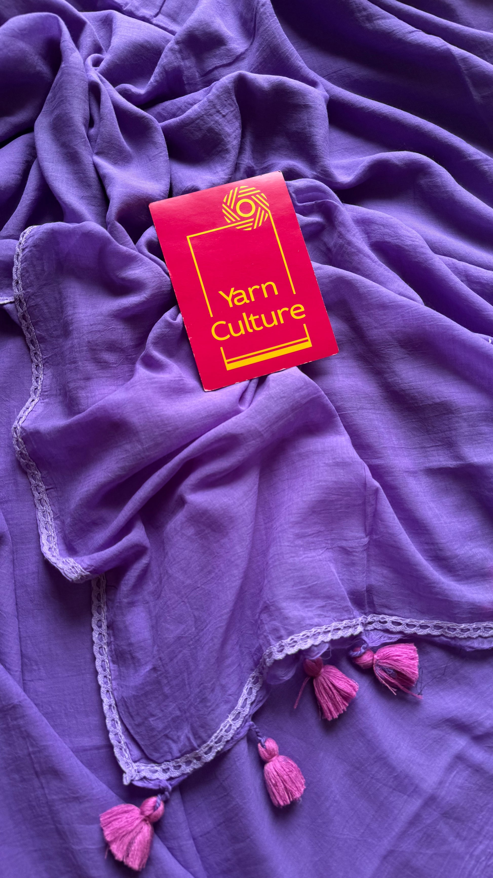 Everybody's favourite mul cotton in solid tone with a pretty lace border and tassels.