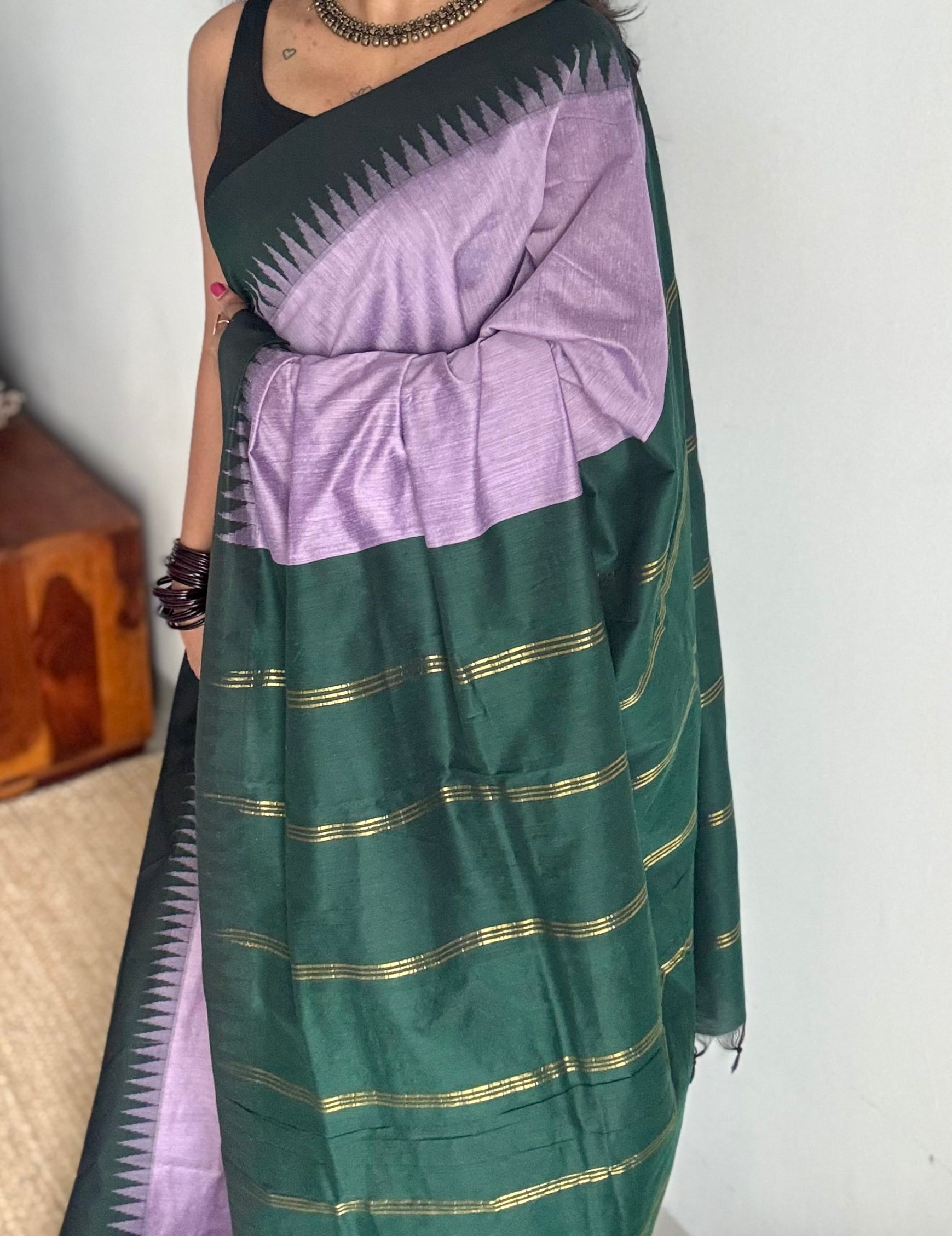 Lilac with dark green temple border - cotton silk - YCCOTNOCKCS7