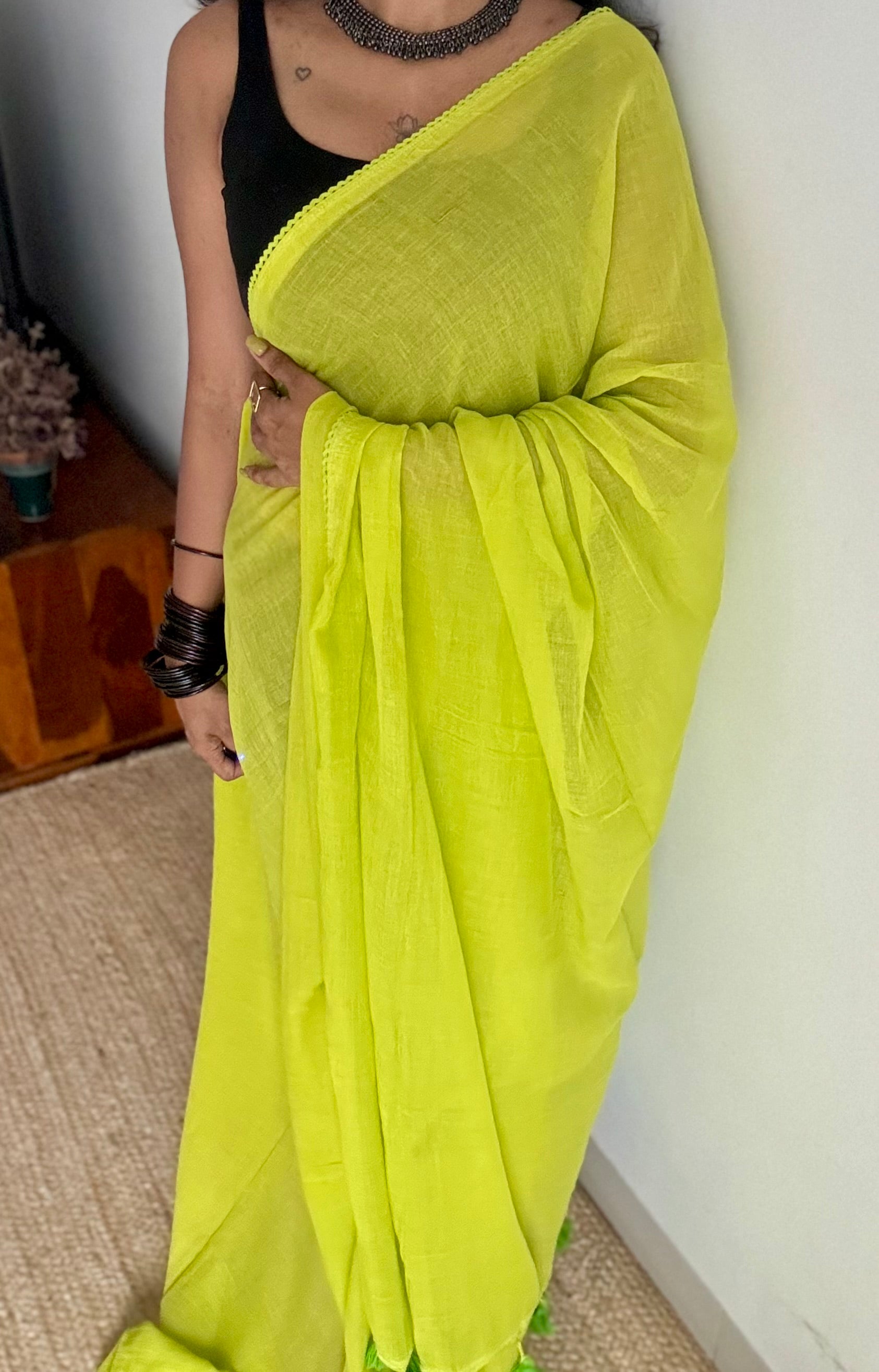 Everybody's favourite mul cotton in solid tone with a pretty lace border and tassels.