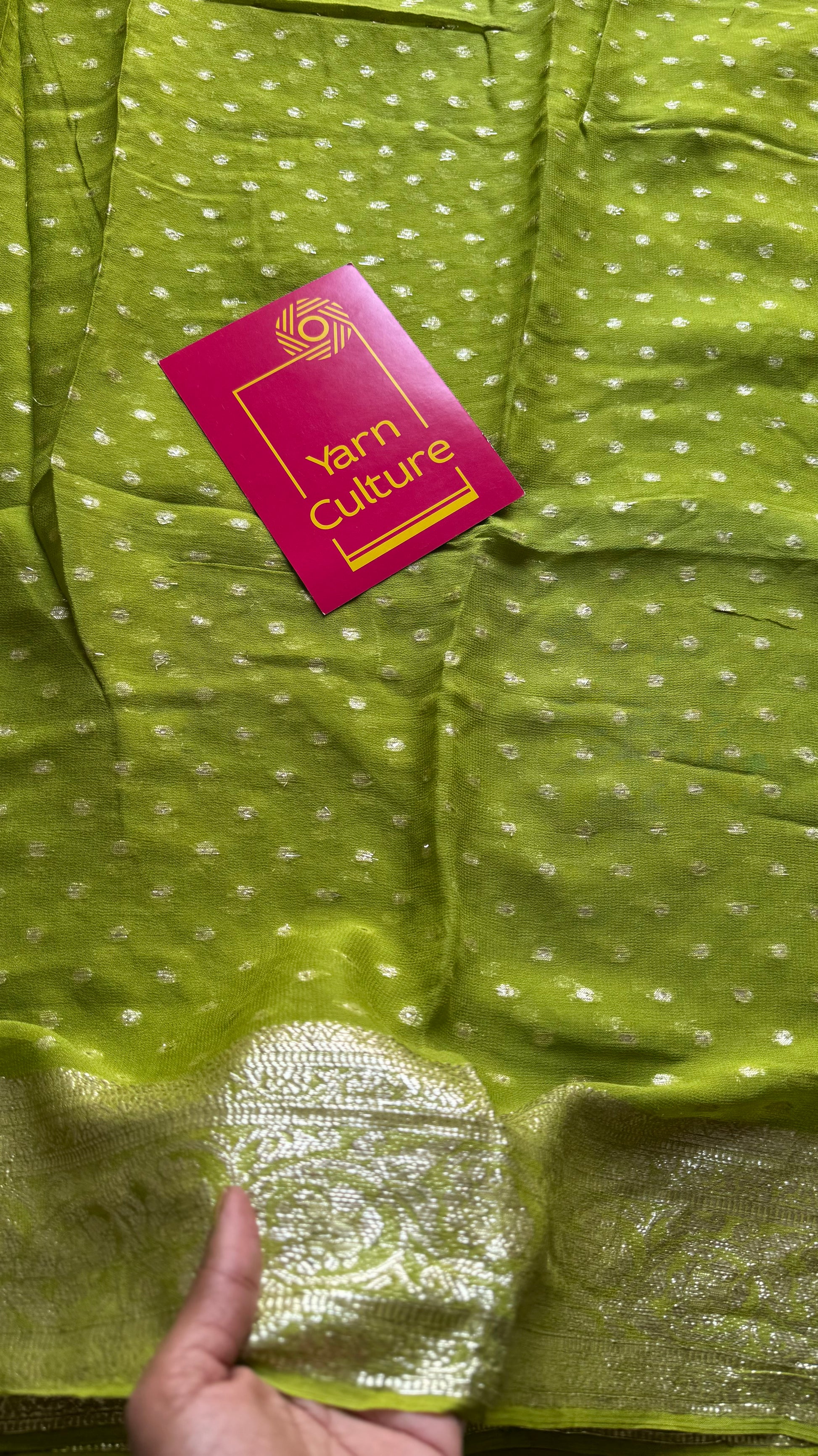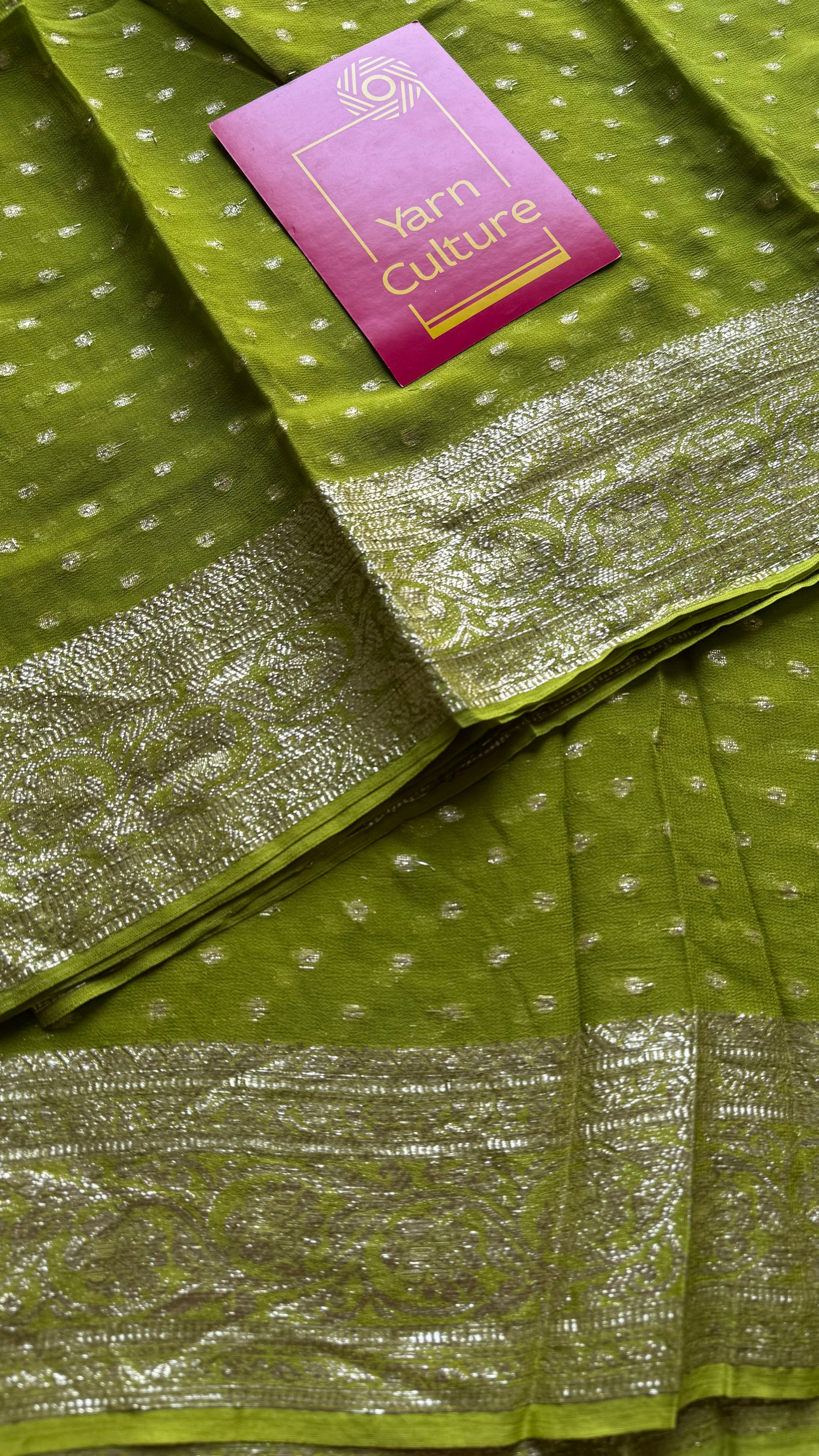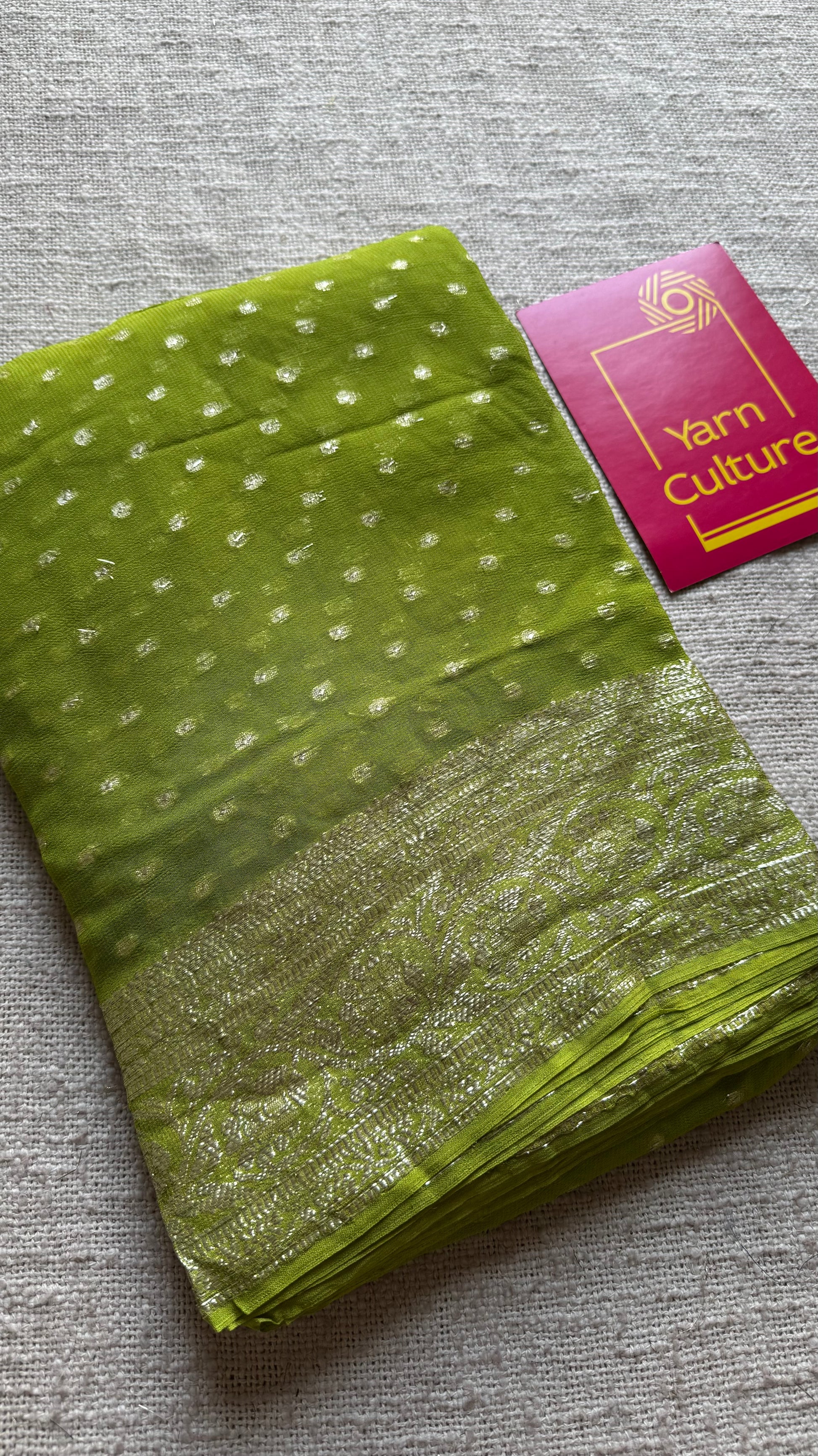 Lime green viscose georgette saree with zari motifs - YCDOSFE204
