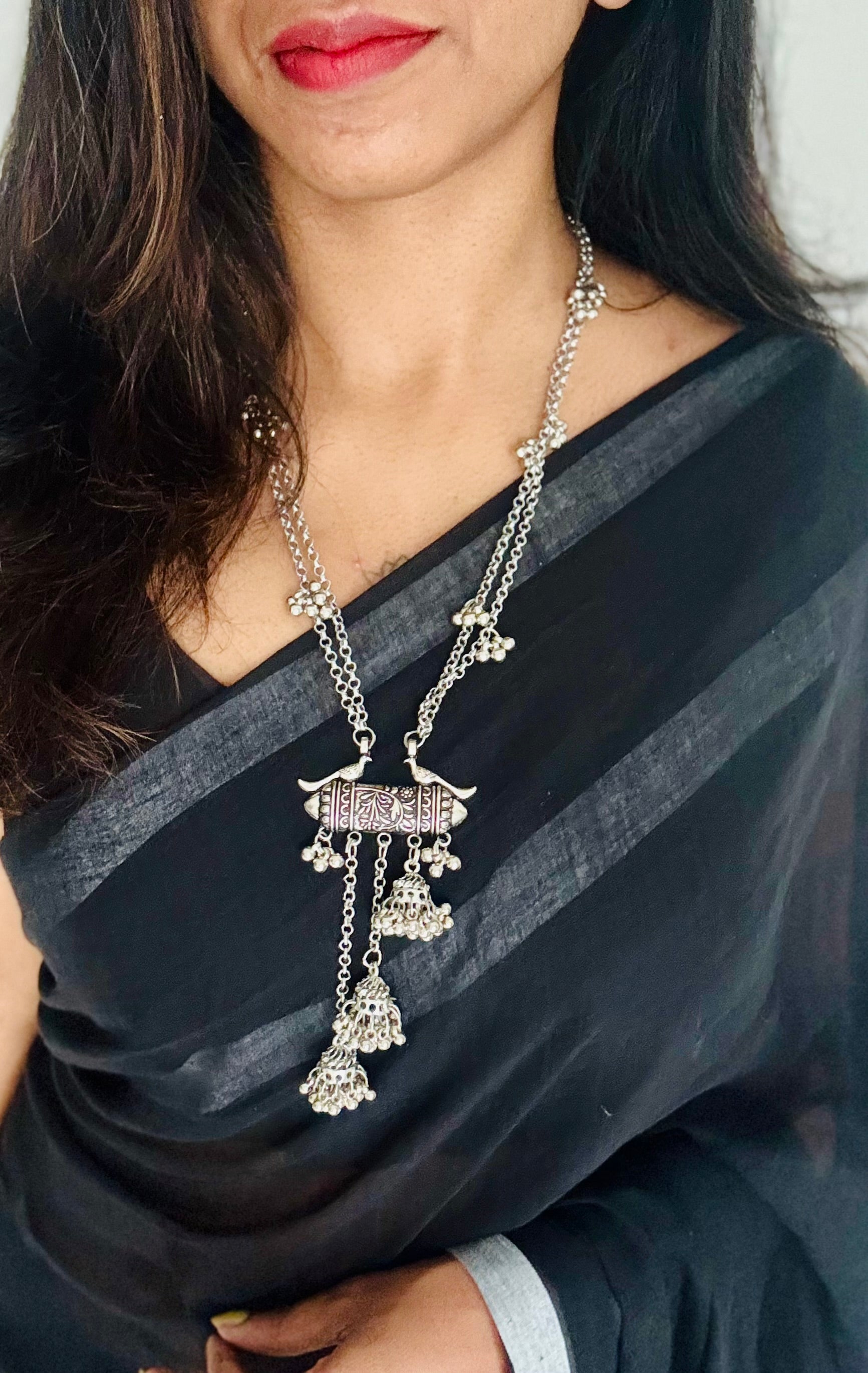 Long gungroo pendant chain, oxidised silver - YCOSNP308