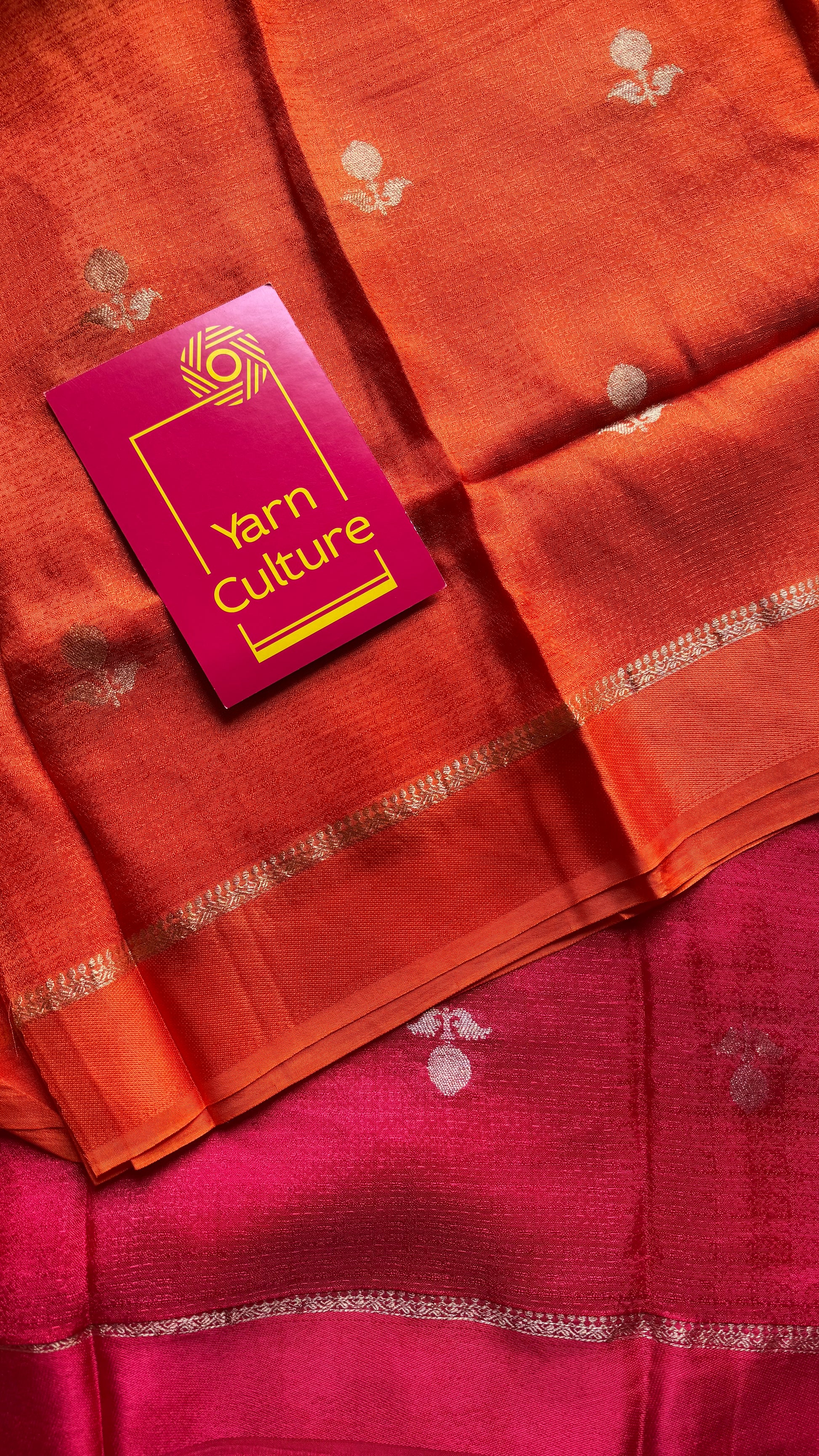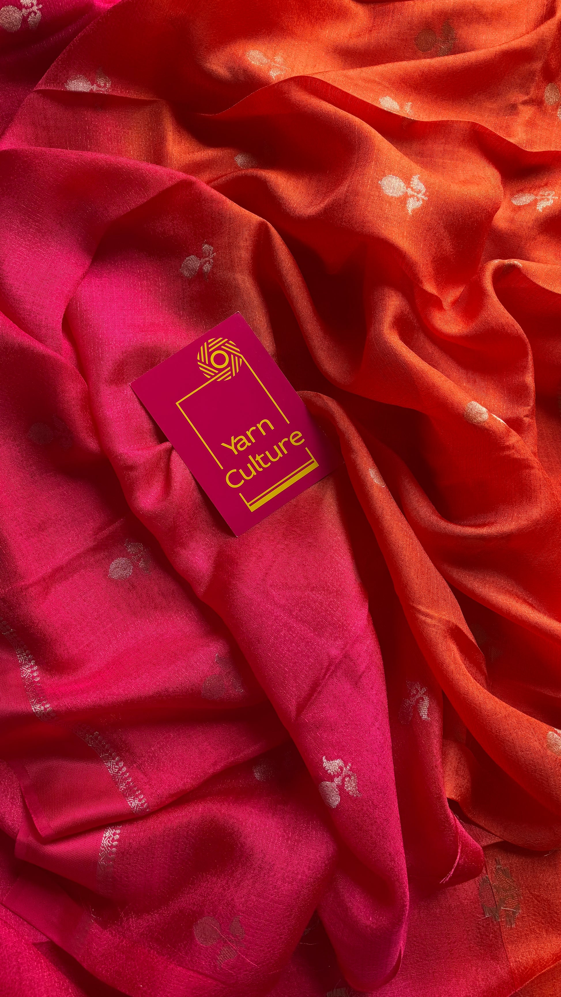 Magenta orange dual tone in viscose soft silk with satin border, jacquard zari motifs - YCDOSFE193