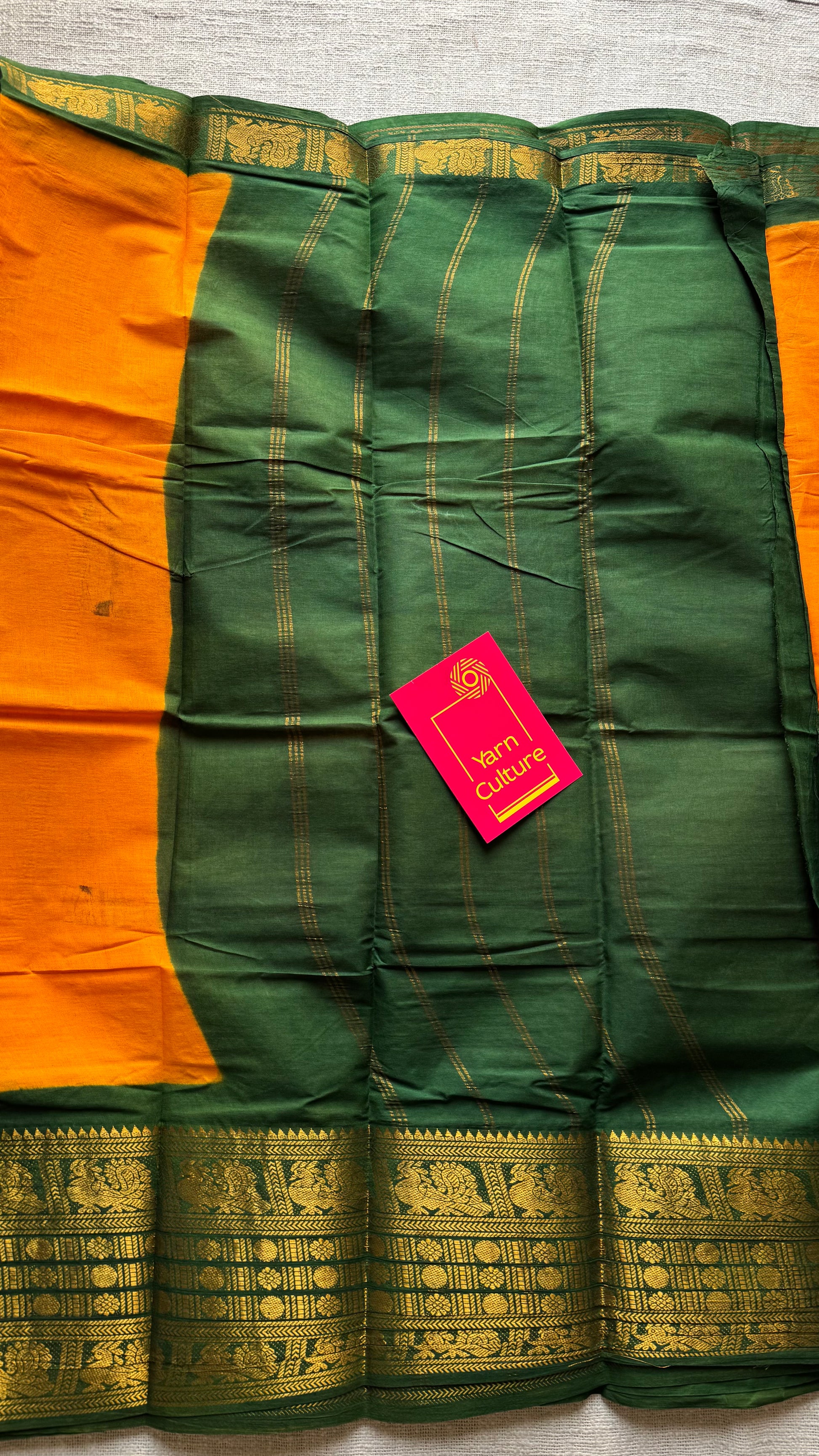 Mango yellow with green border, sungudi, madurai soft cotton - YCCOTNSUJA01