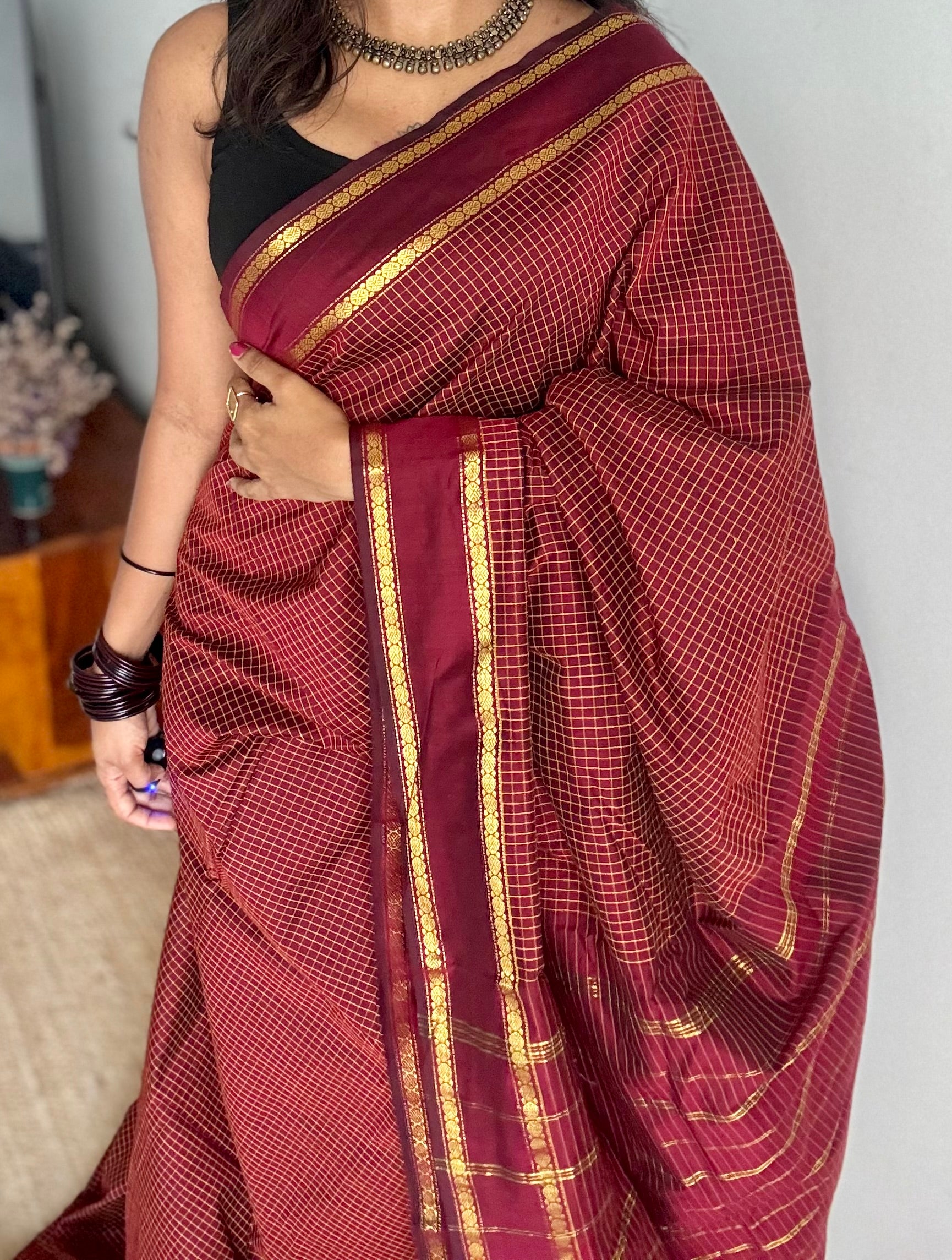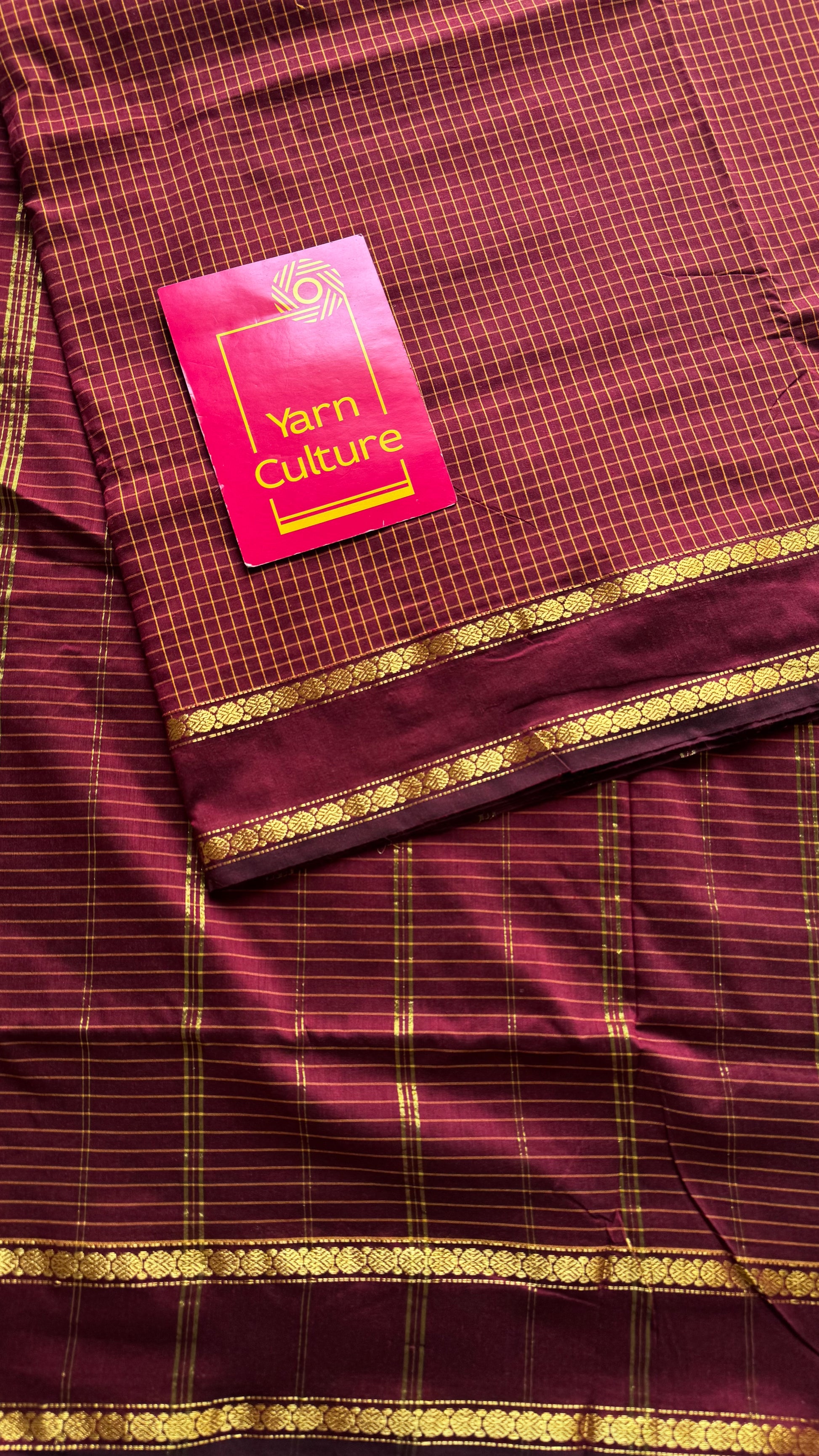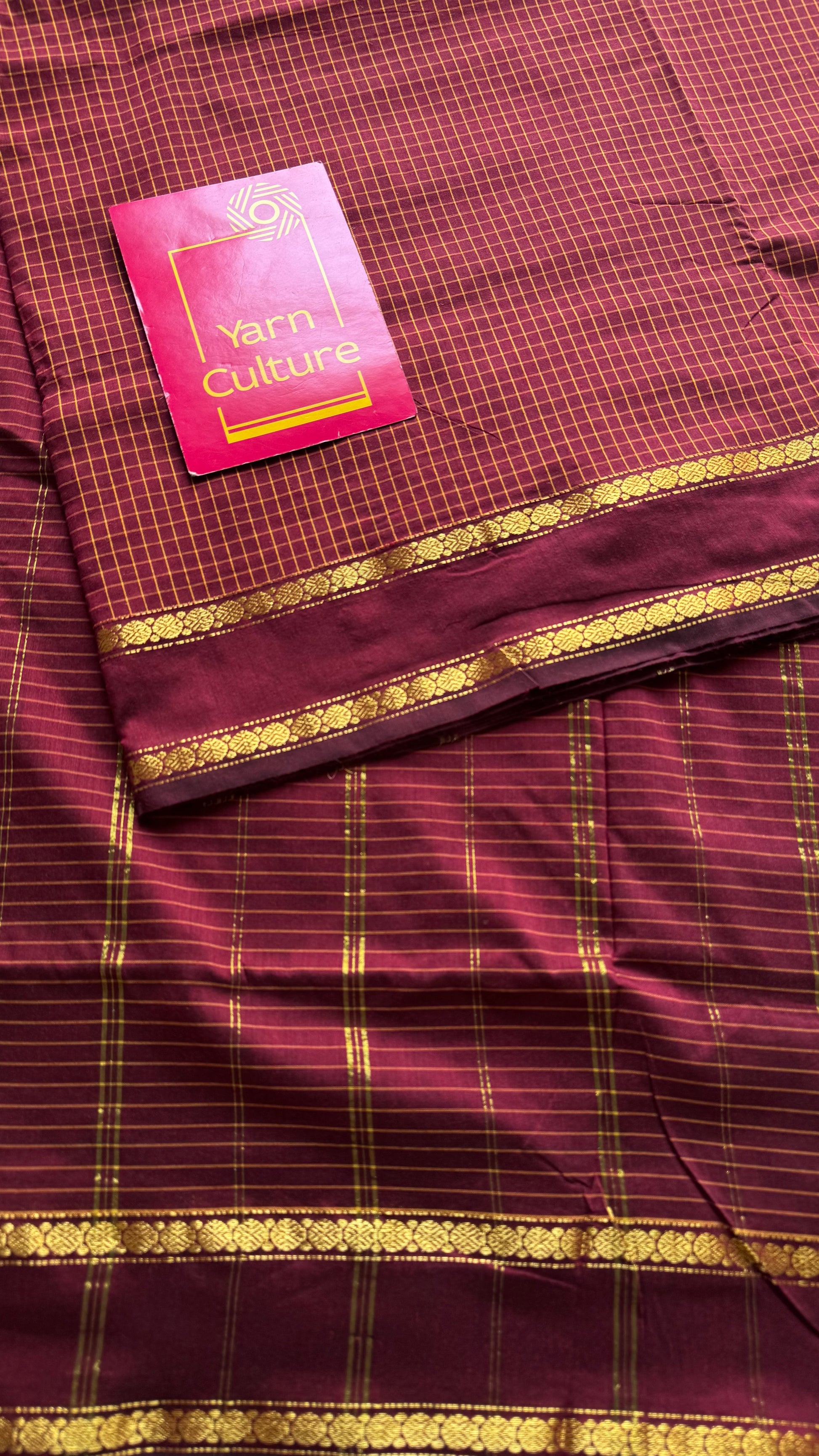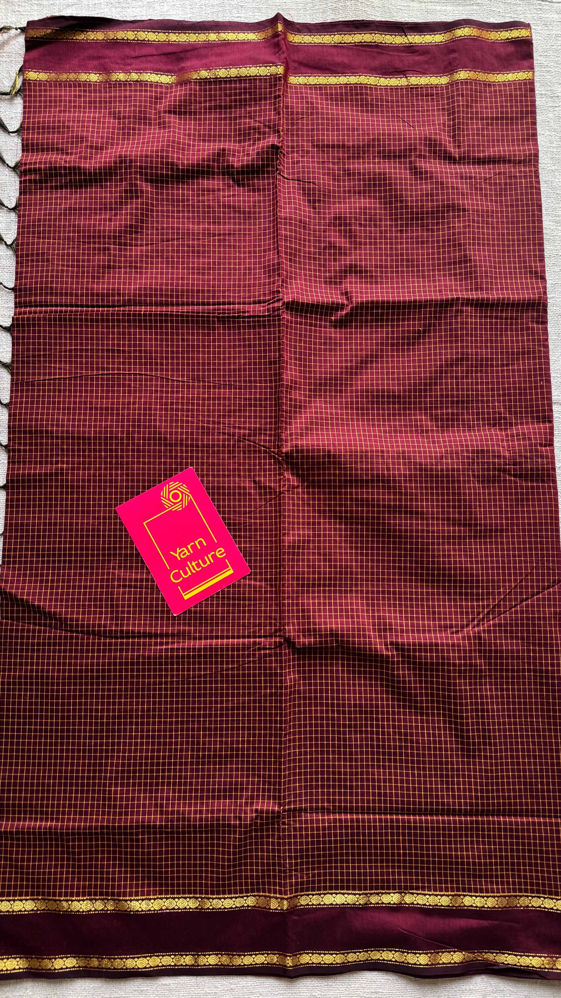 Maroonish brown, arani checks, cotton silk - YCCOTNOCAR07