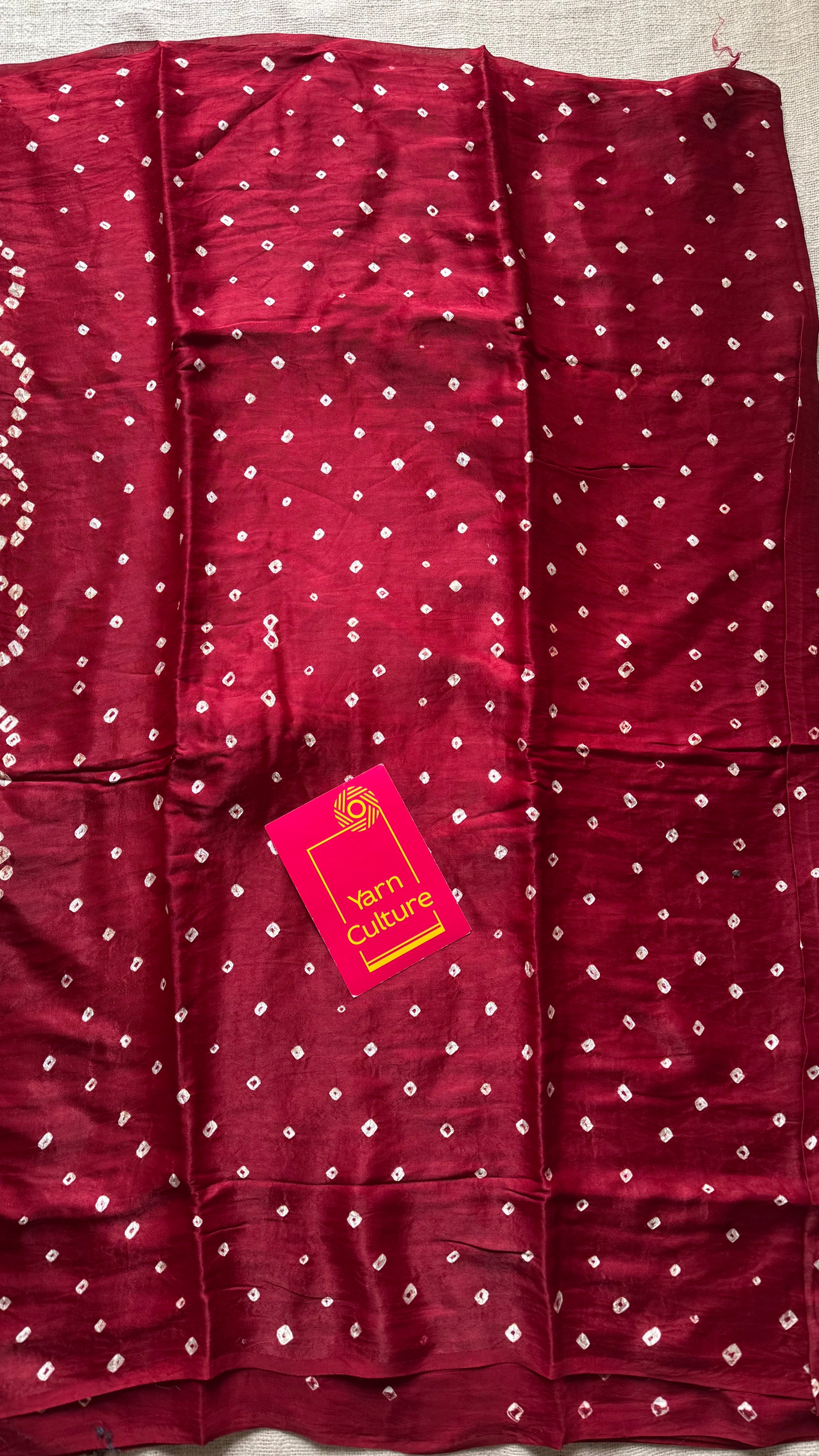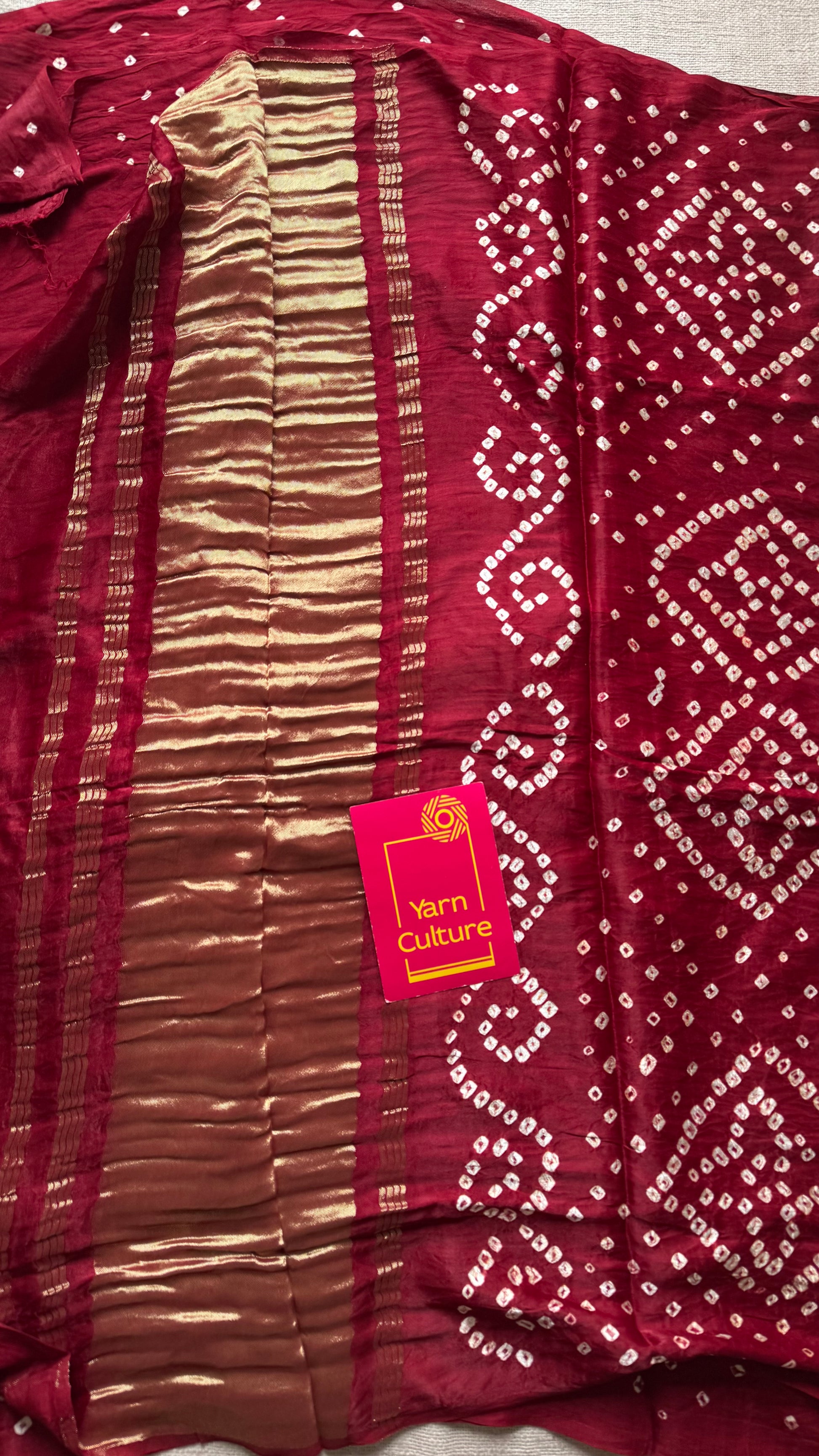 Maroon crushed bandhani modal silk with lagdi patta (zari pallu) - YCDESE31
