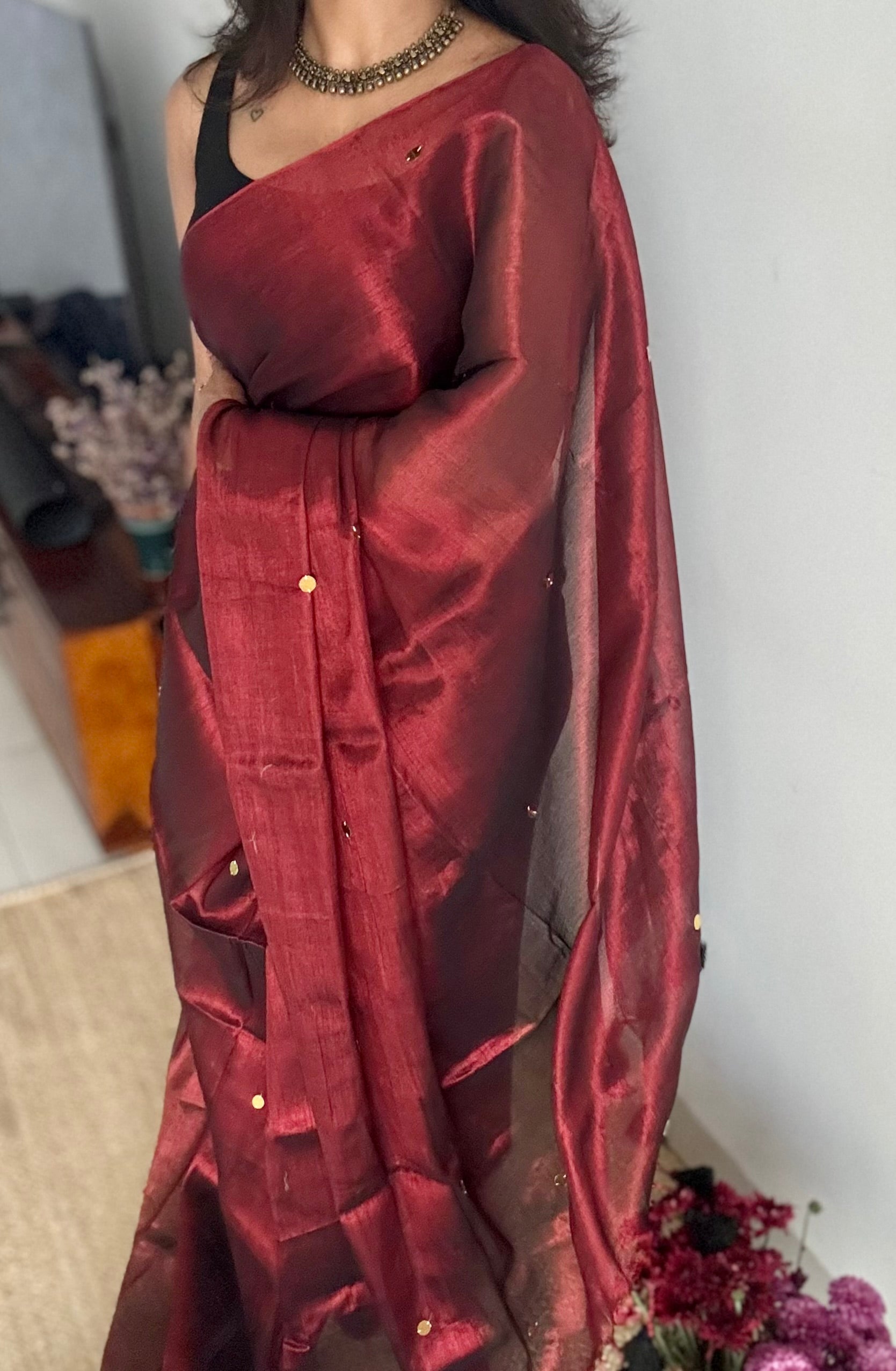 Maroon, gold sequins, soft mul tissue - YCBCFEMCM31
