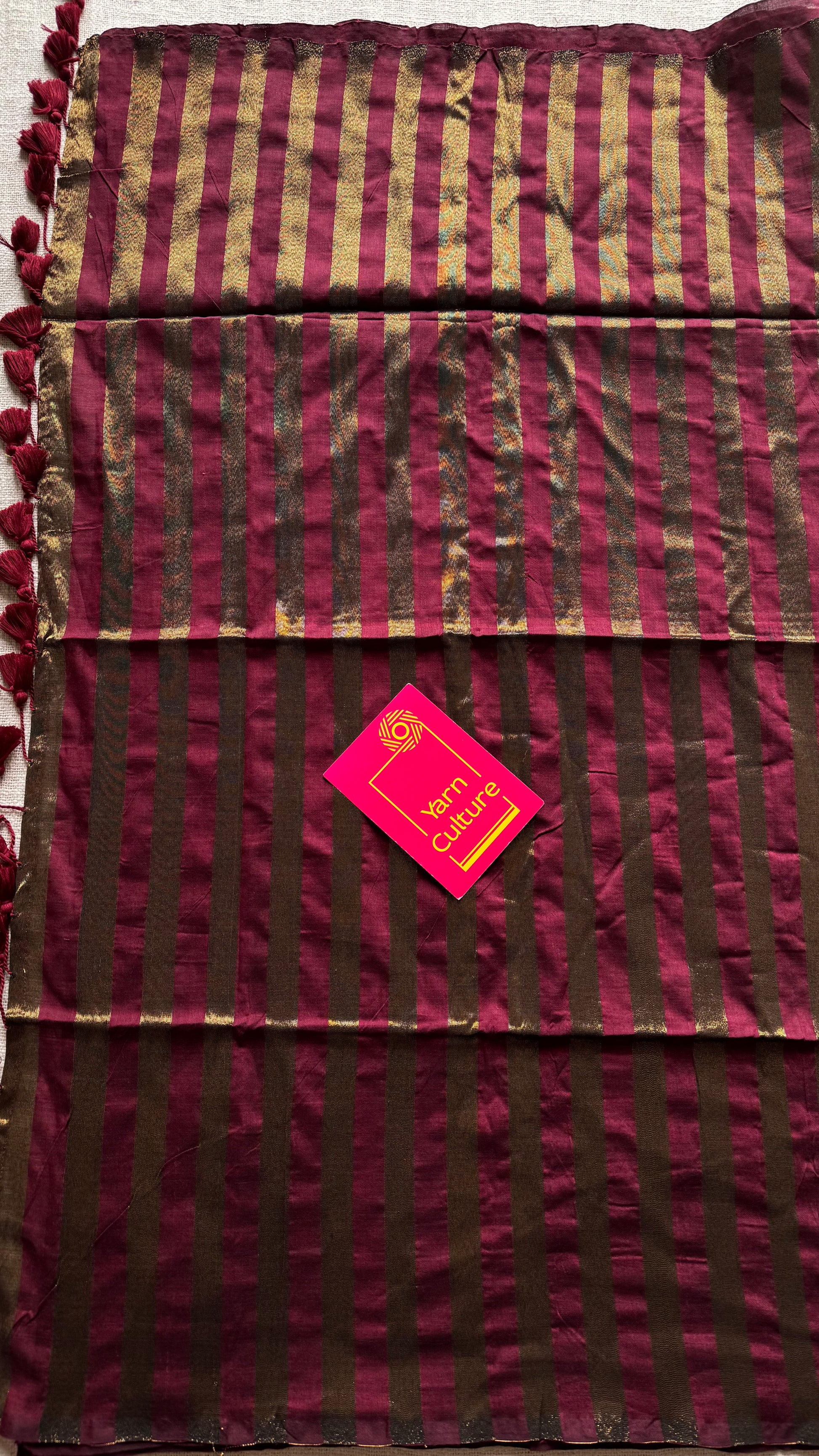 Maroon khadi with antique gold pallu - YCBCKZPSE05