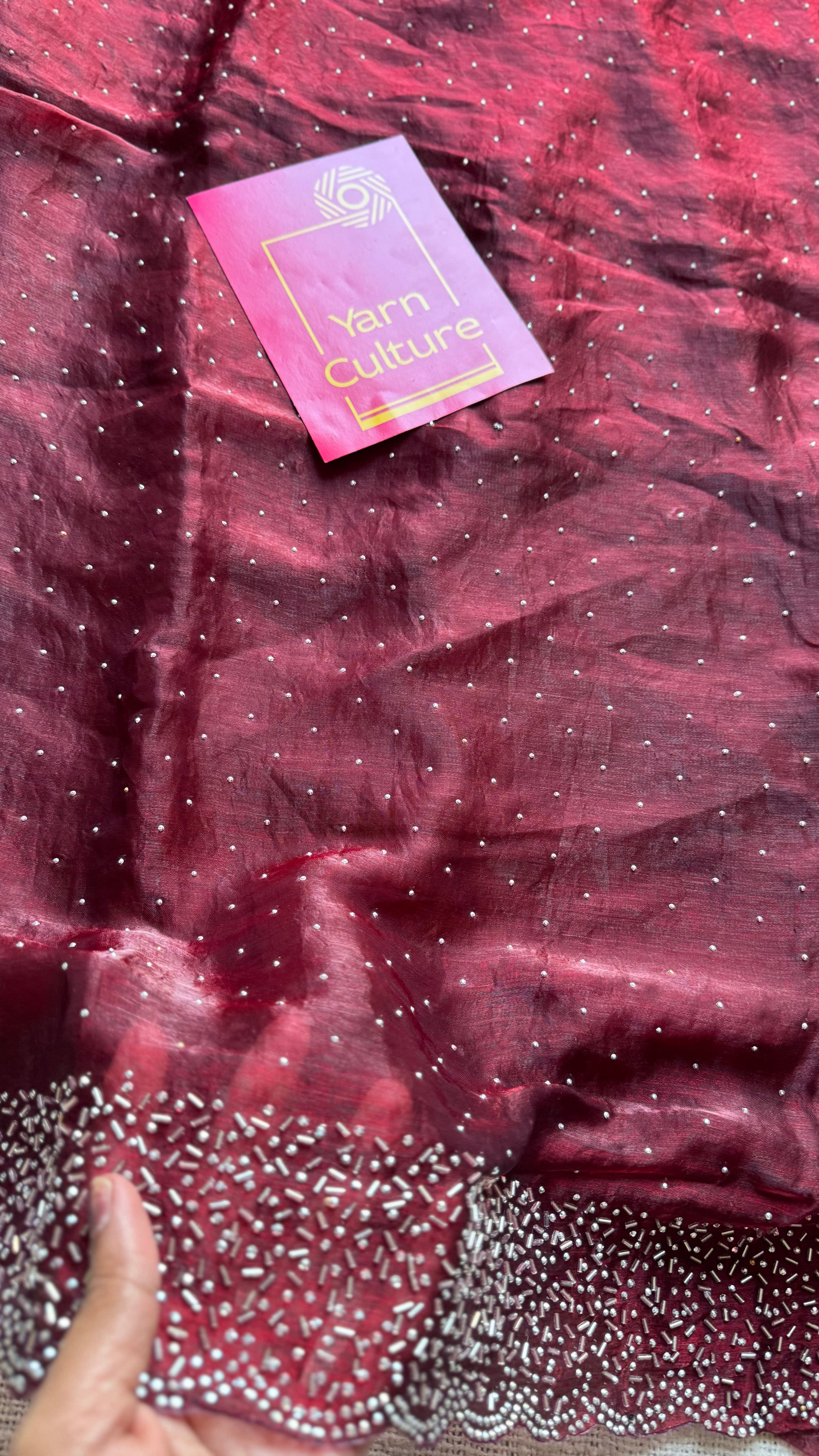 Maroon Munch - maroon dual tone space silk, jarkhan stone work - YCDOSNO39