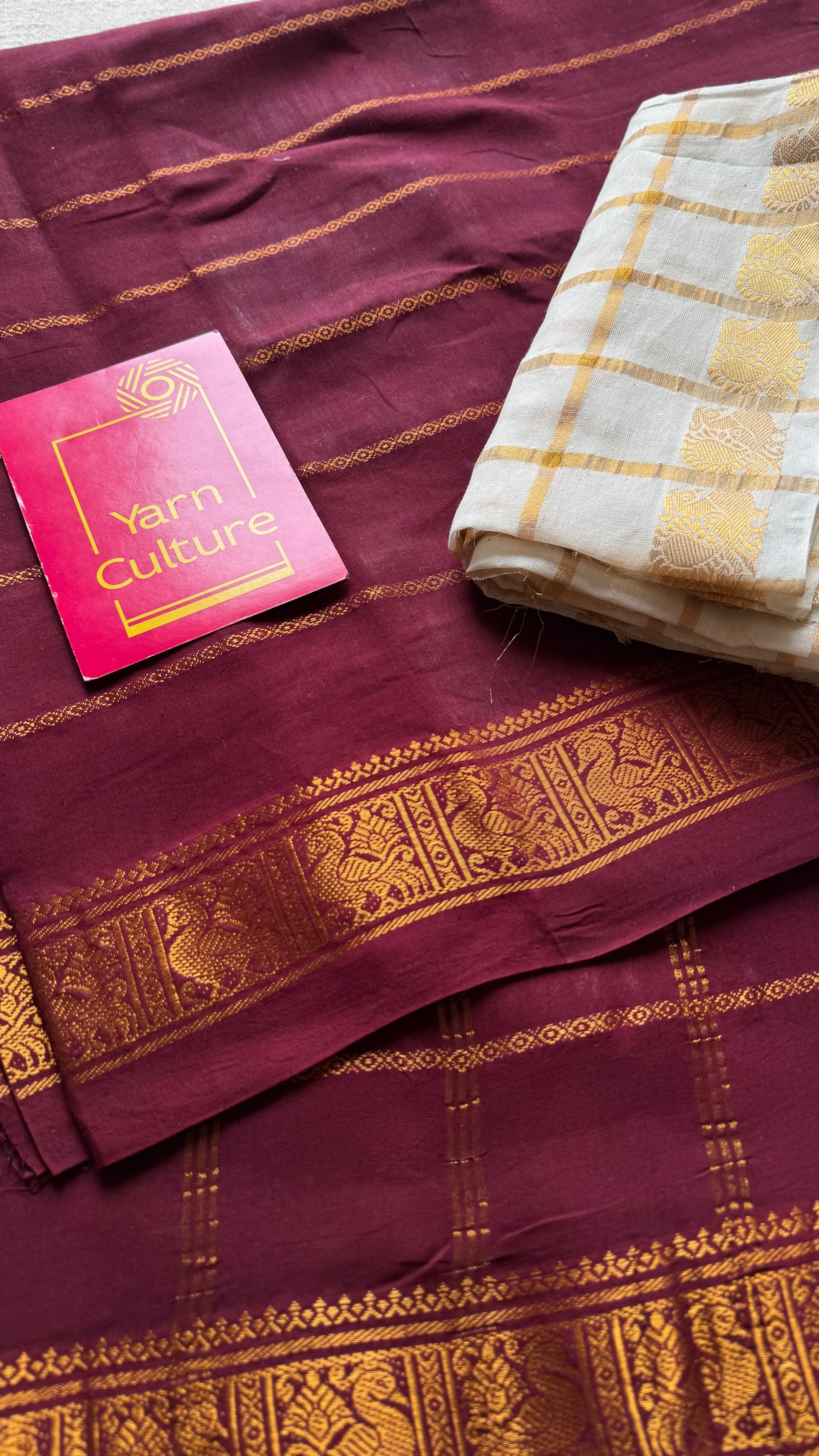 Maroon veldhaari, kattuchayam dyed, madurai cotton, with contrast blouse fabric 💖