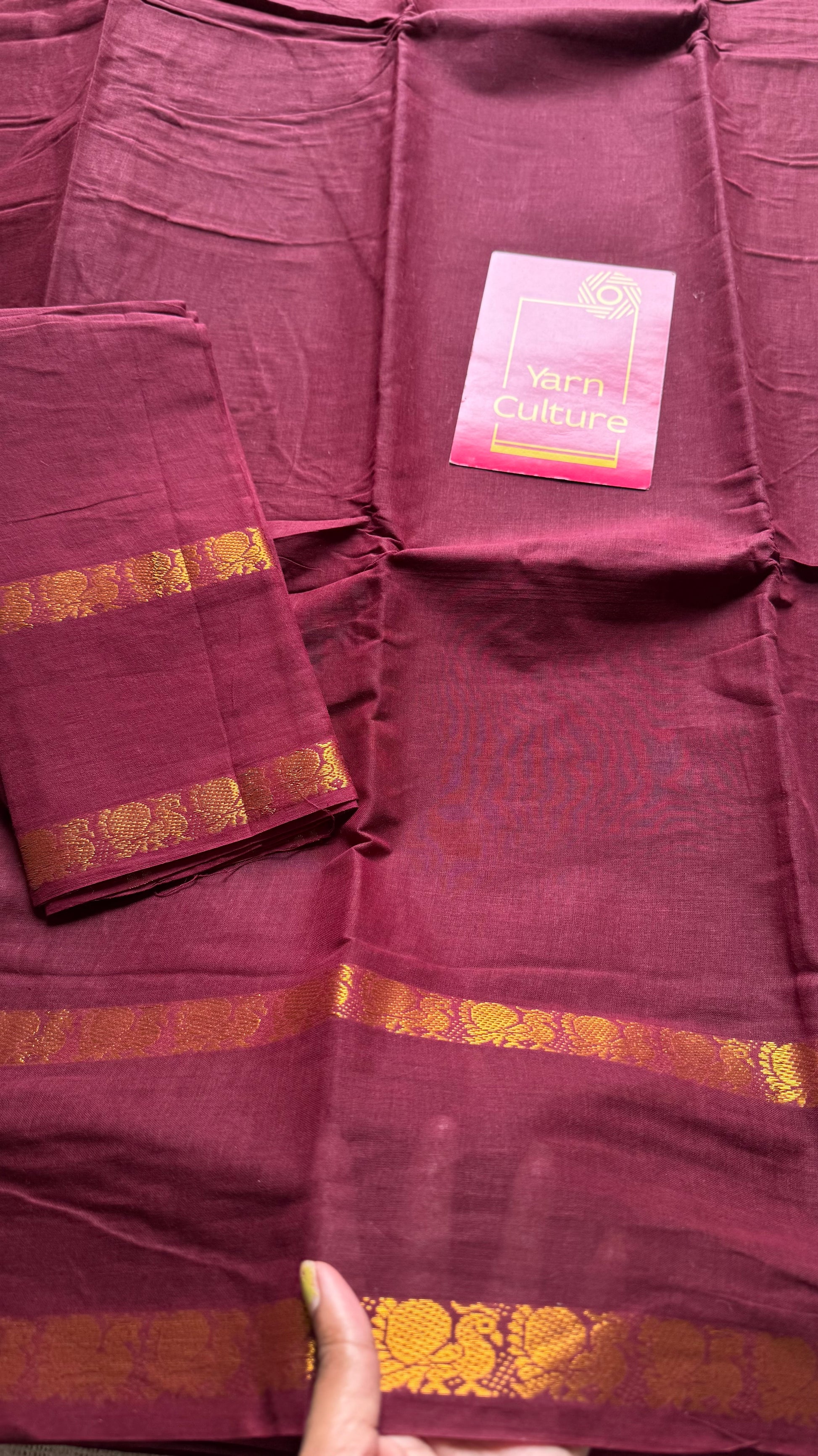 Maroon rettaipettu peacock double border 💖 Made using the kattuchayam dyeing technique. Comes with 0.9m same colour blouse