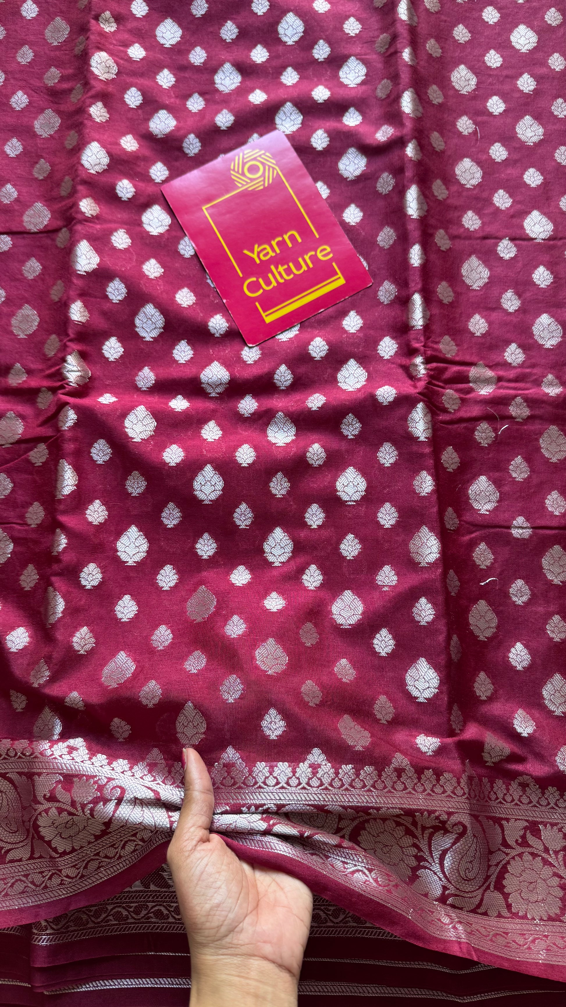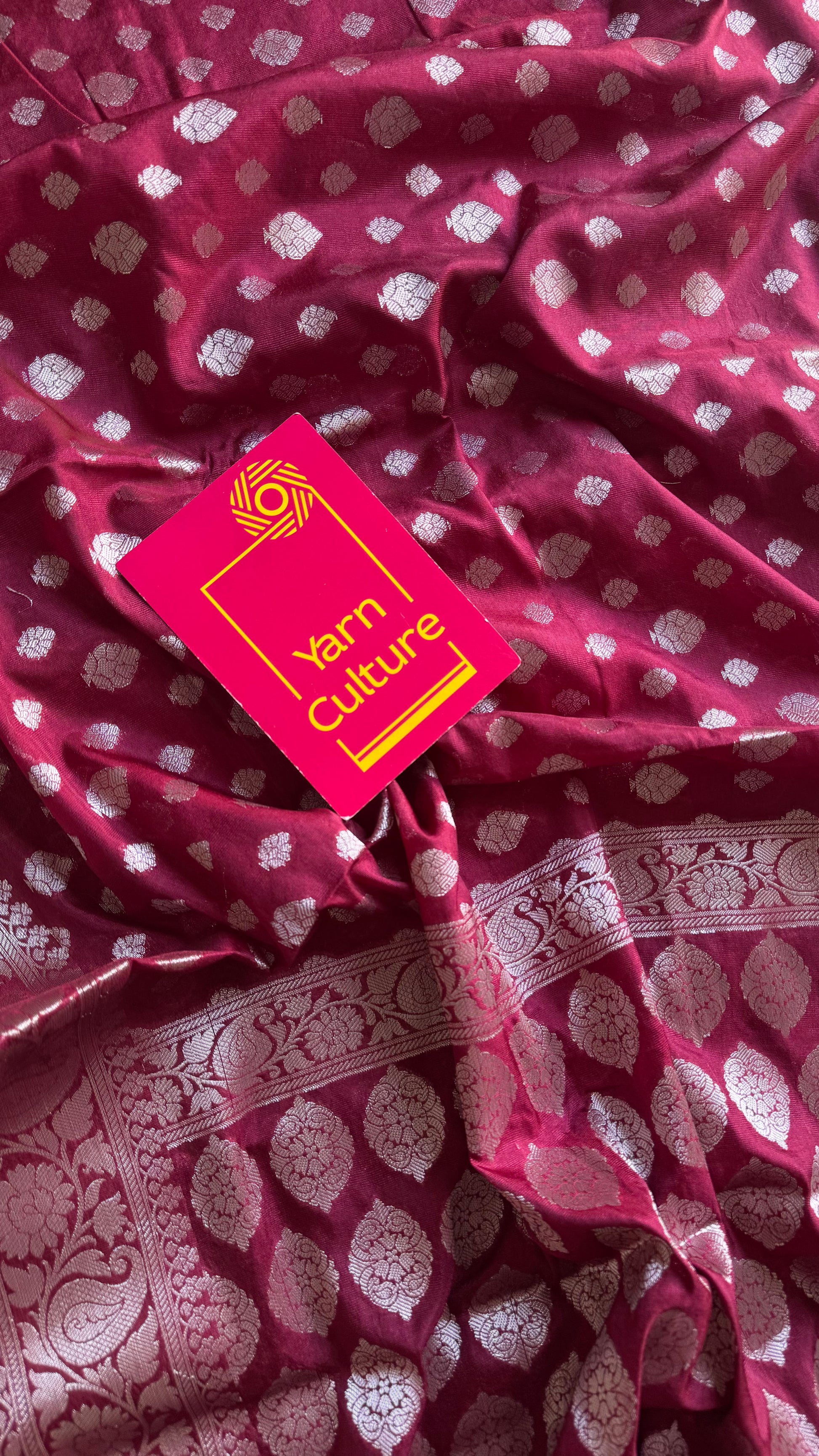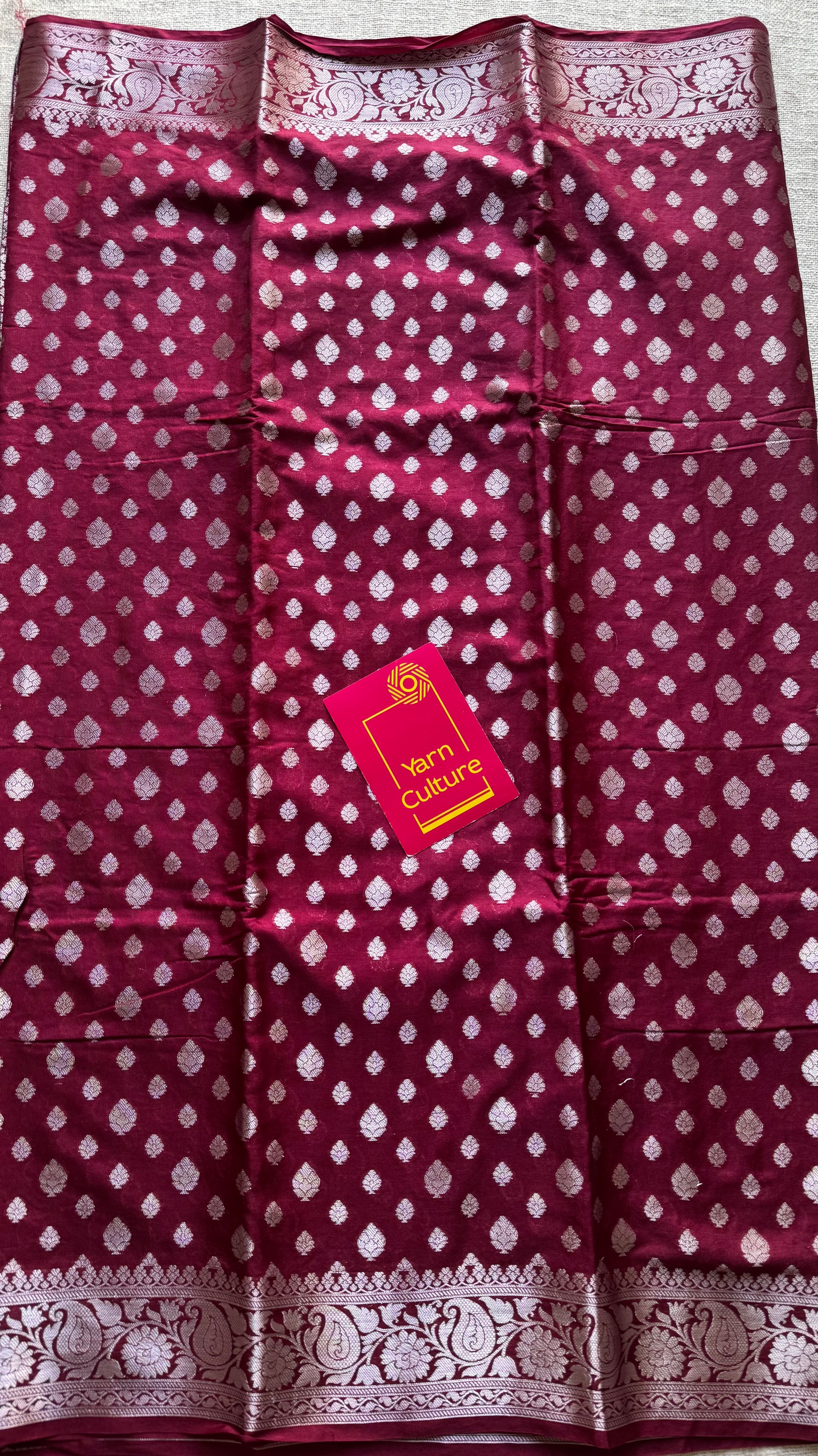 Maroon, silver buttas and zari, Banarasi semi-silk - YCDESE39