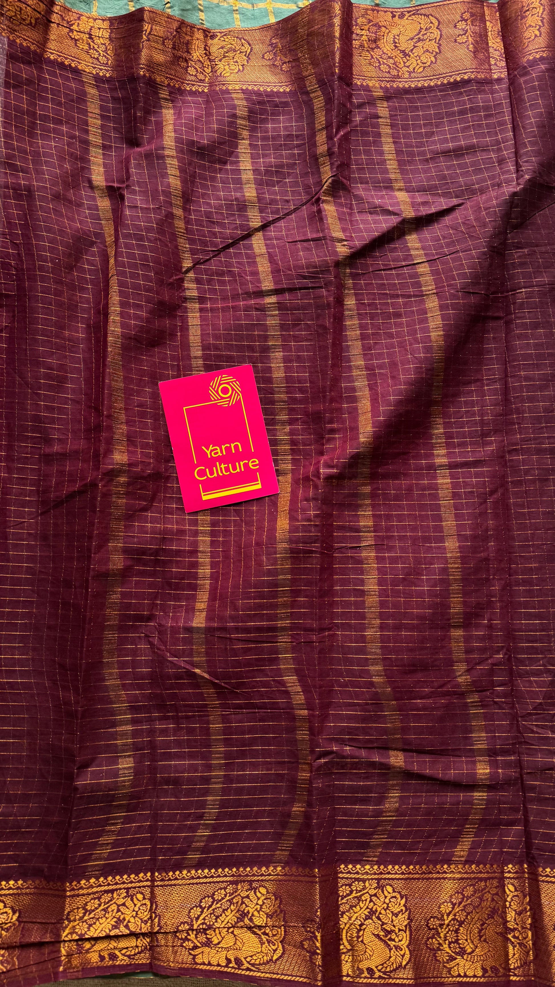 Maroon with mint green, sungudi cotton half-half saree - YCCOTNMSFE362