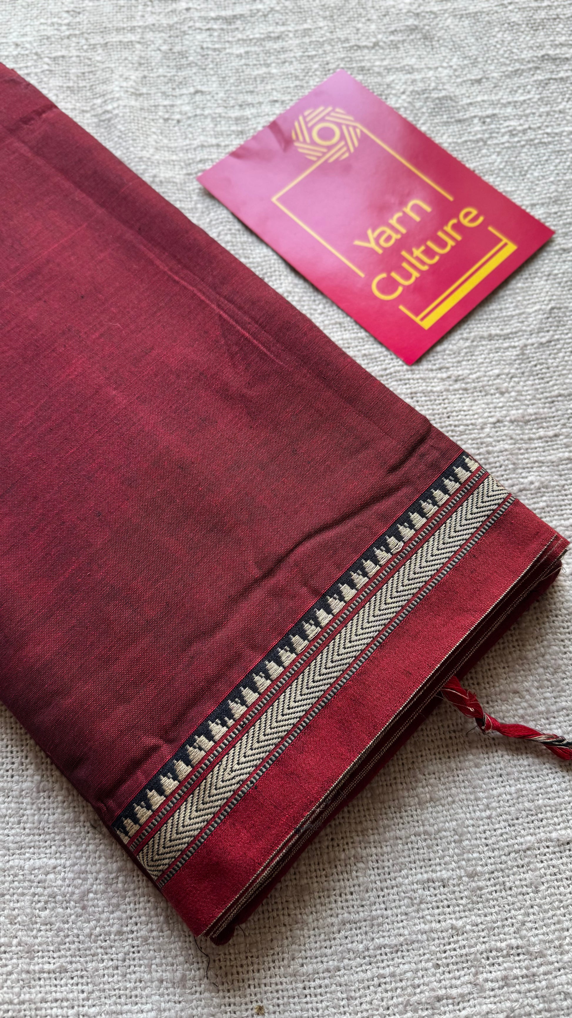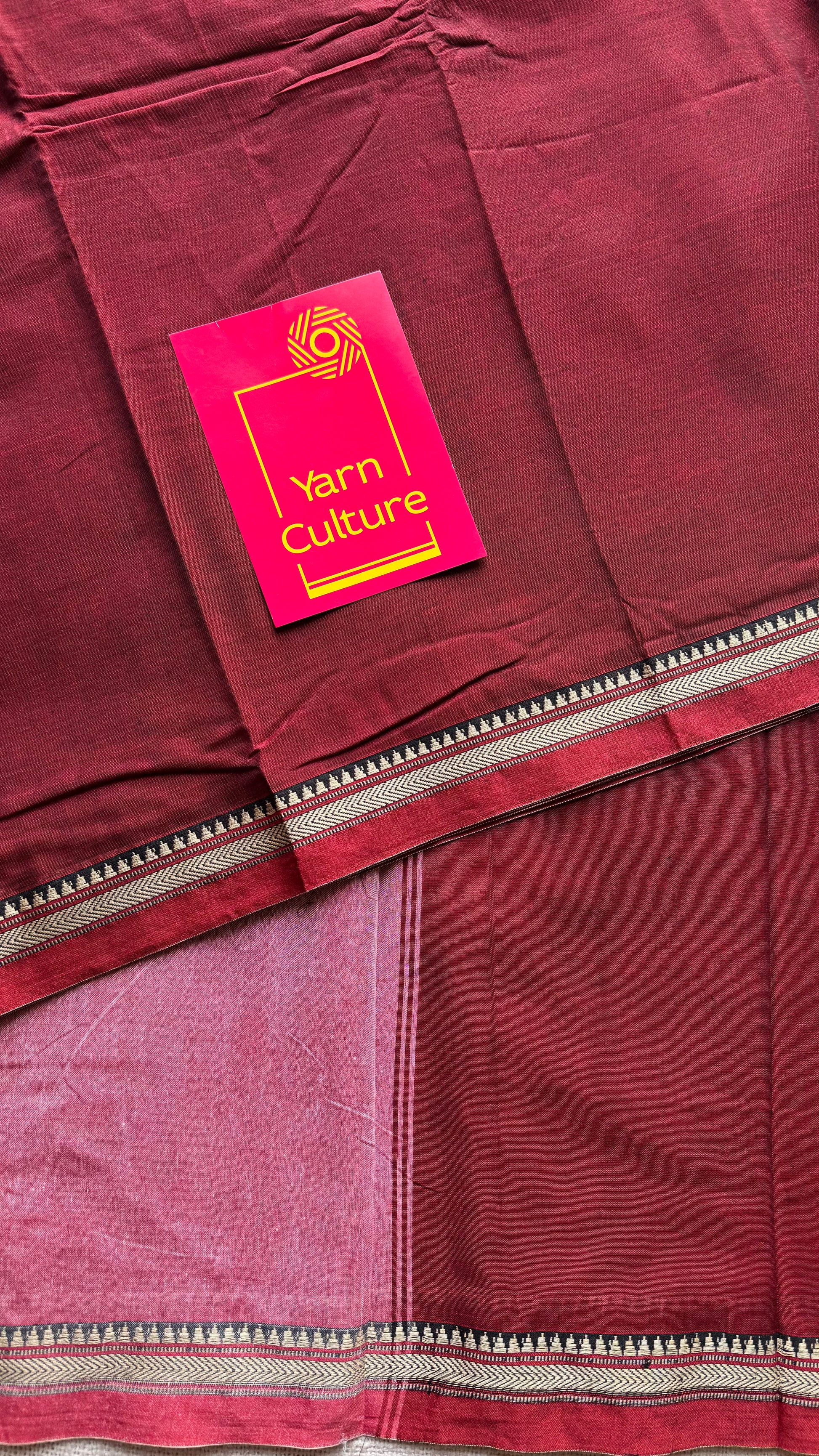 Maroon with red border narayanpet saree, soft cotton - YCWOTDNPFE30