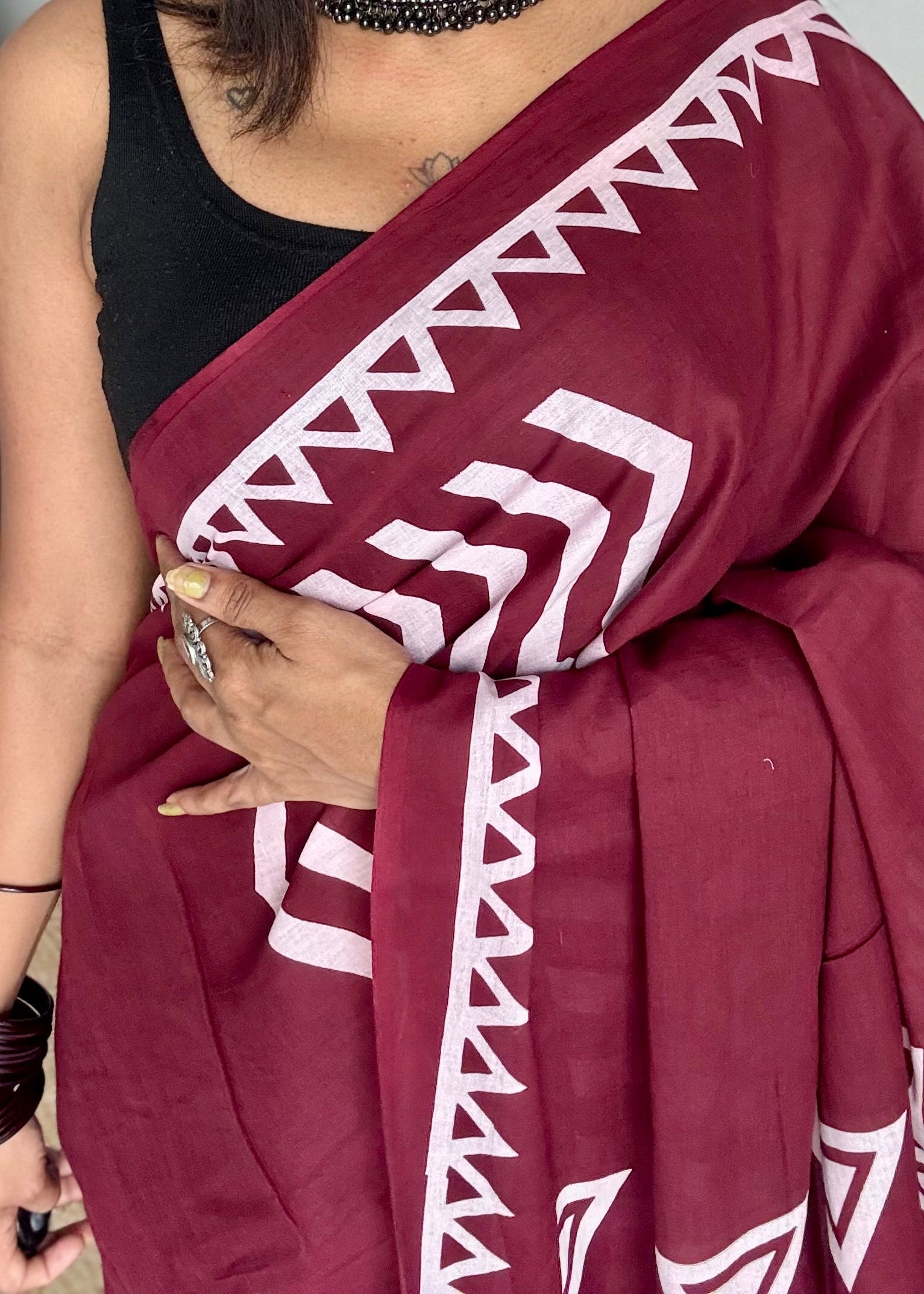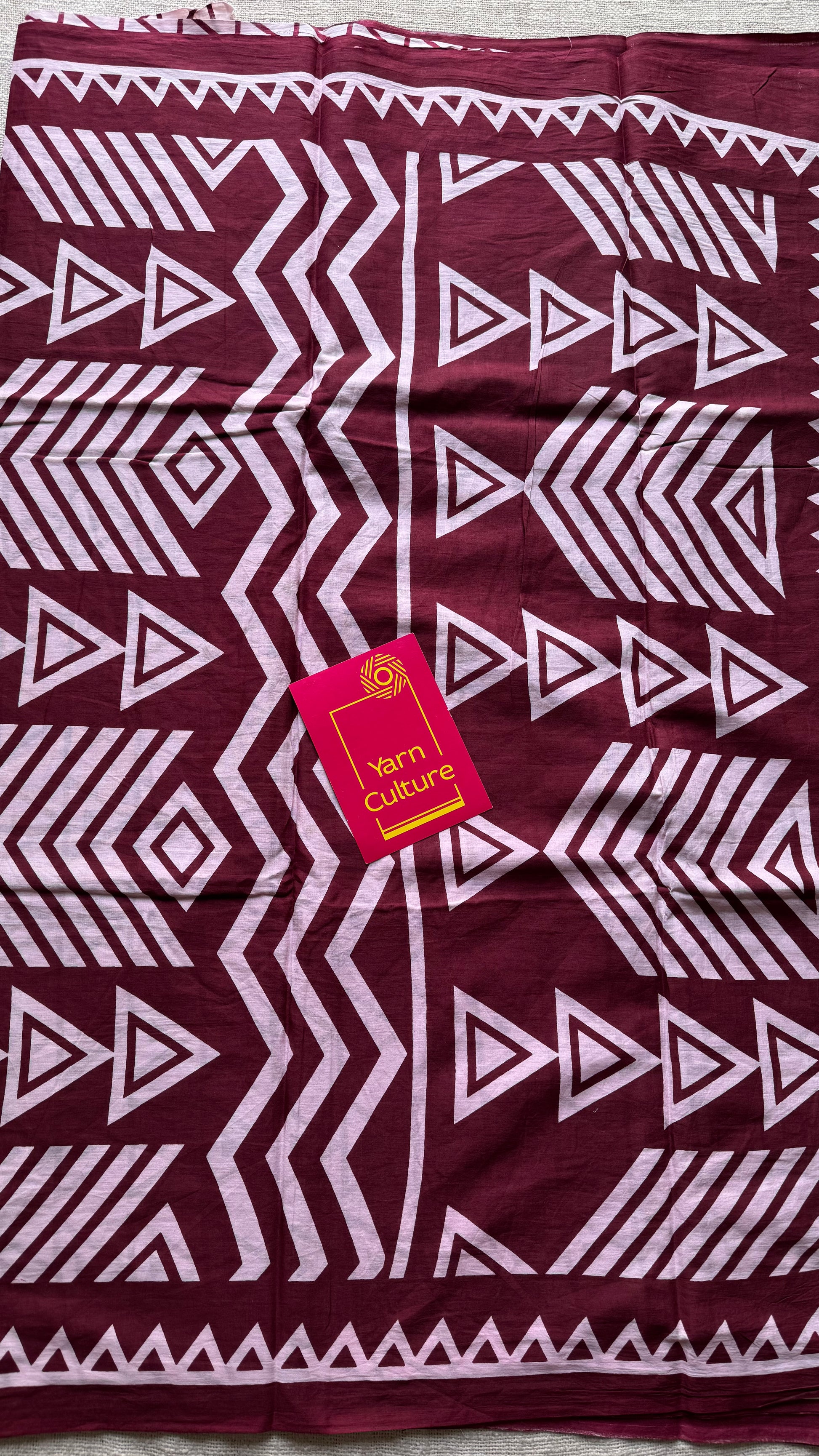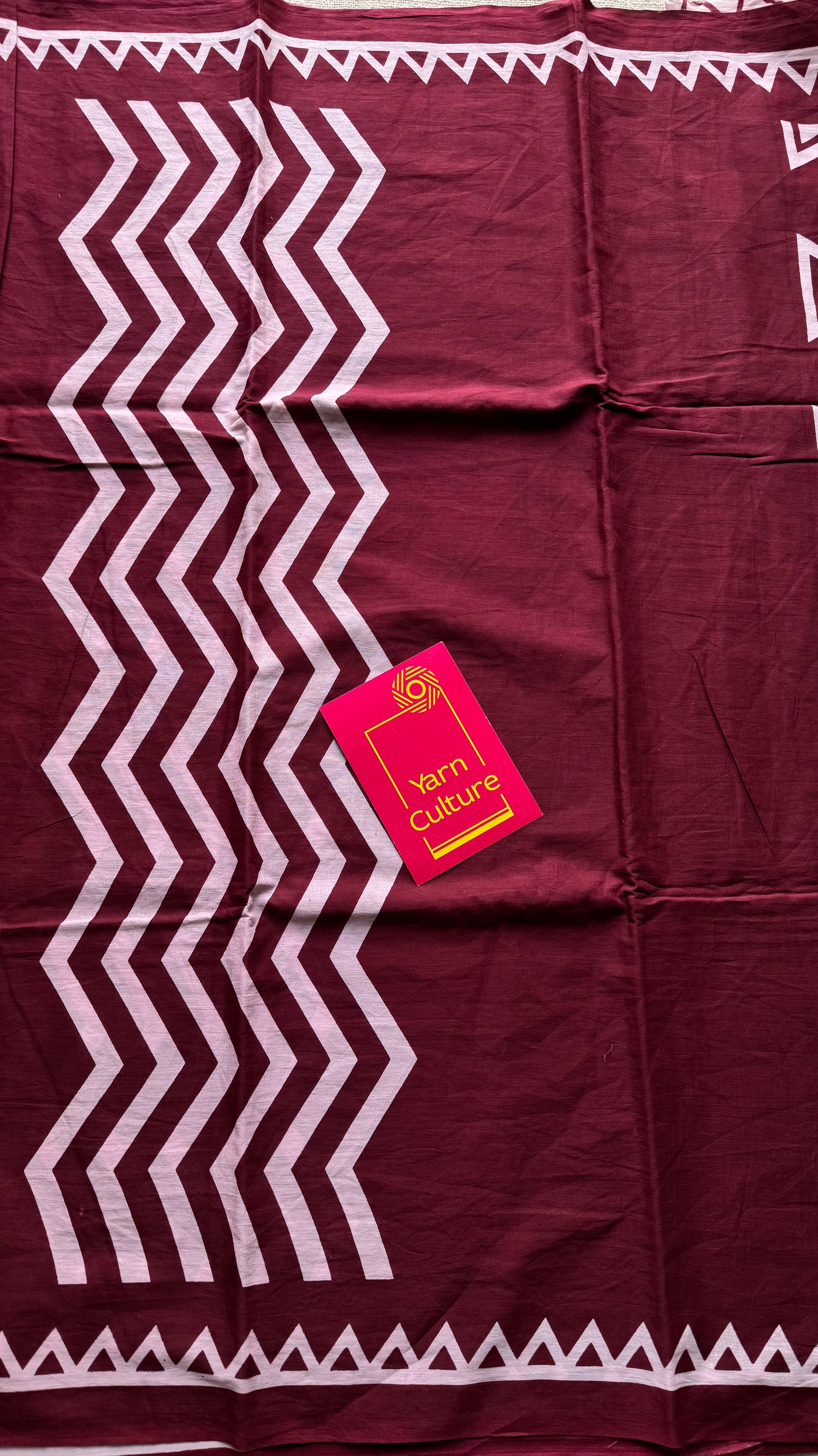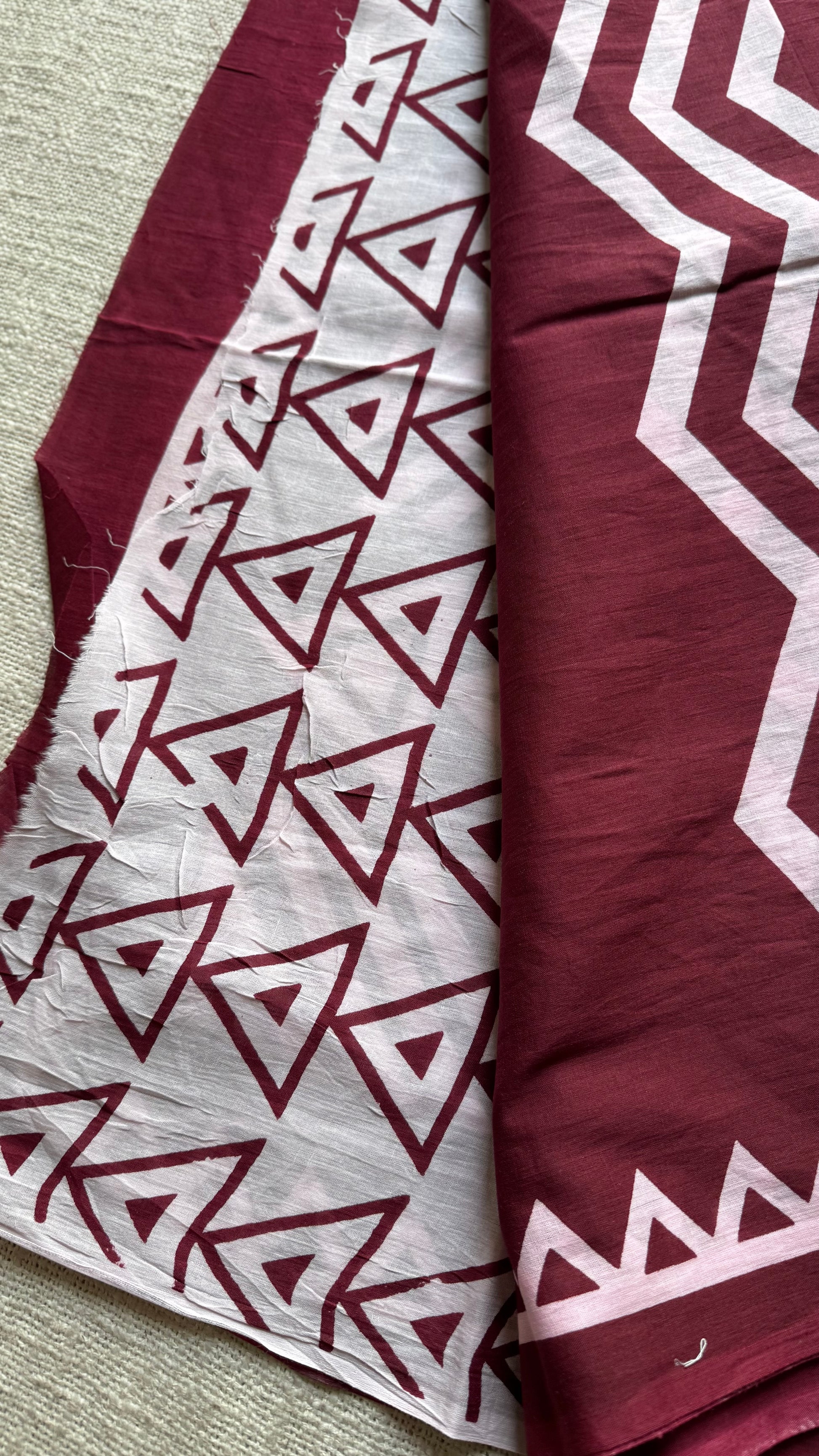 Maroon with white geometric prints, soft cotton - YCTORCMA01