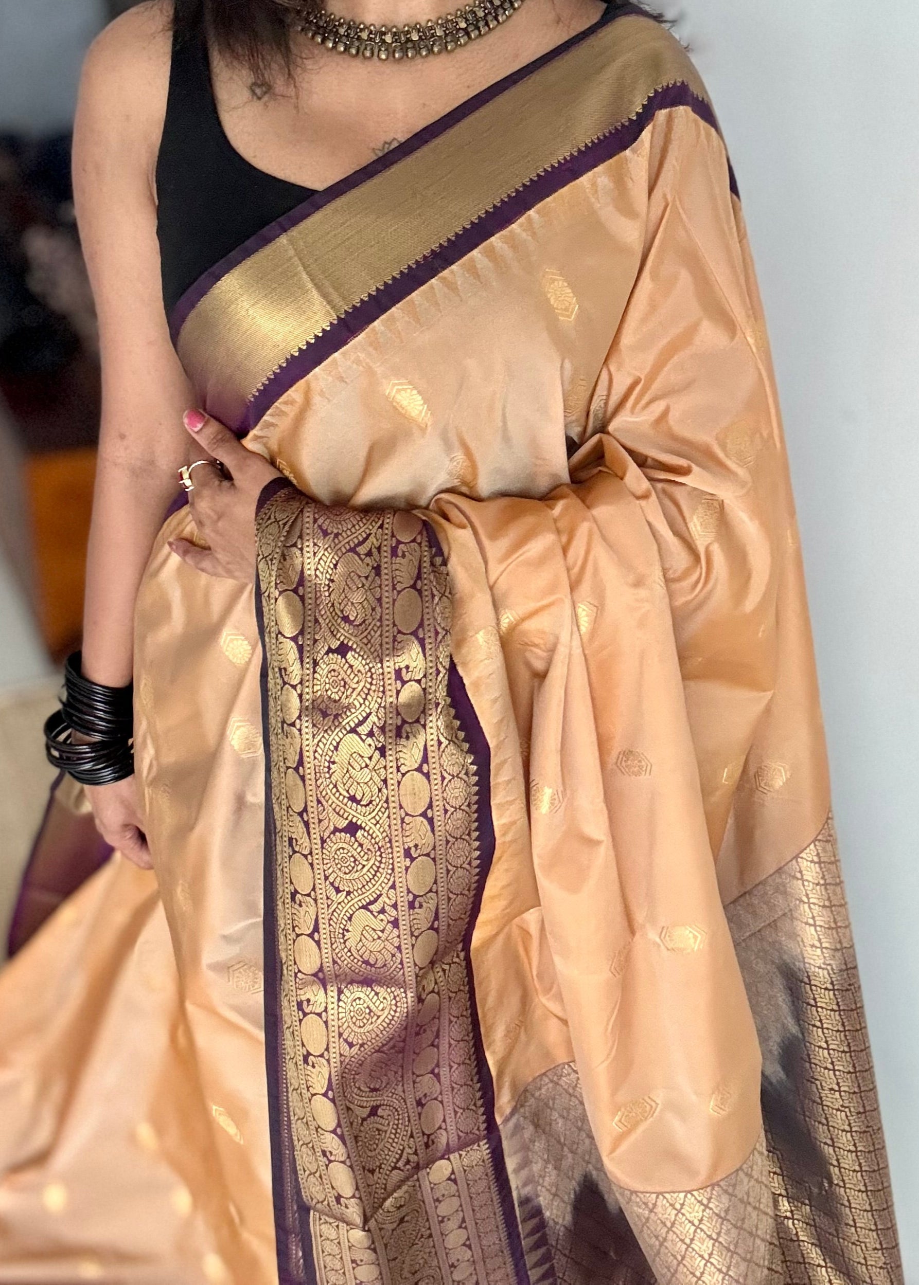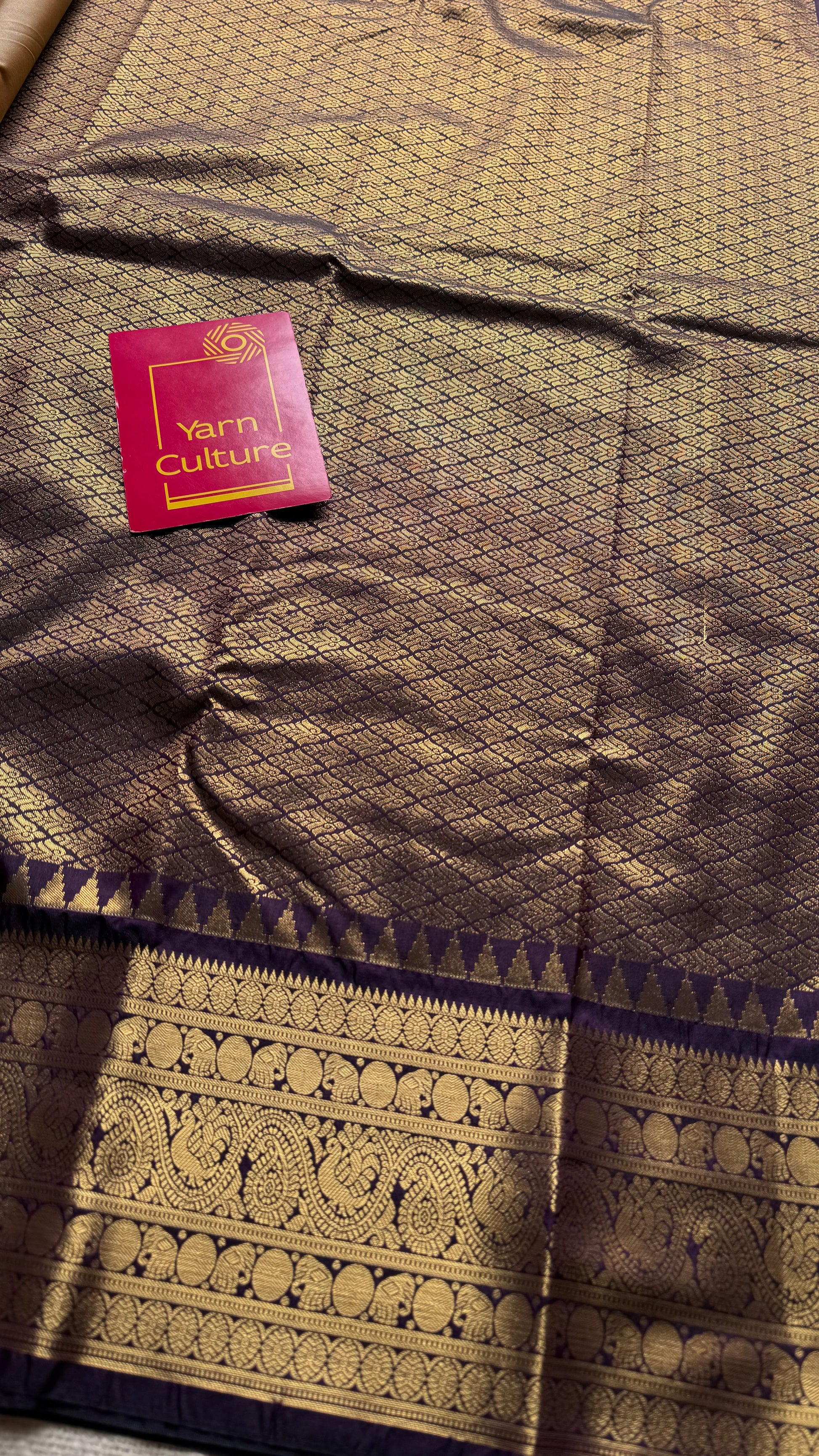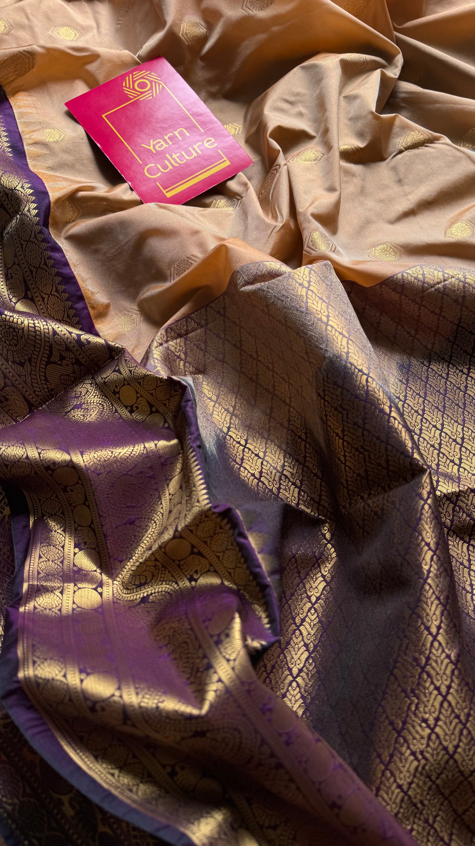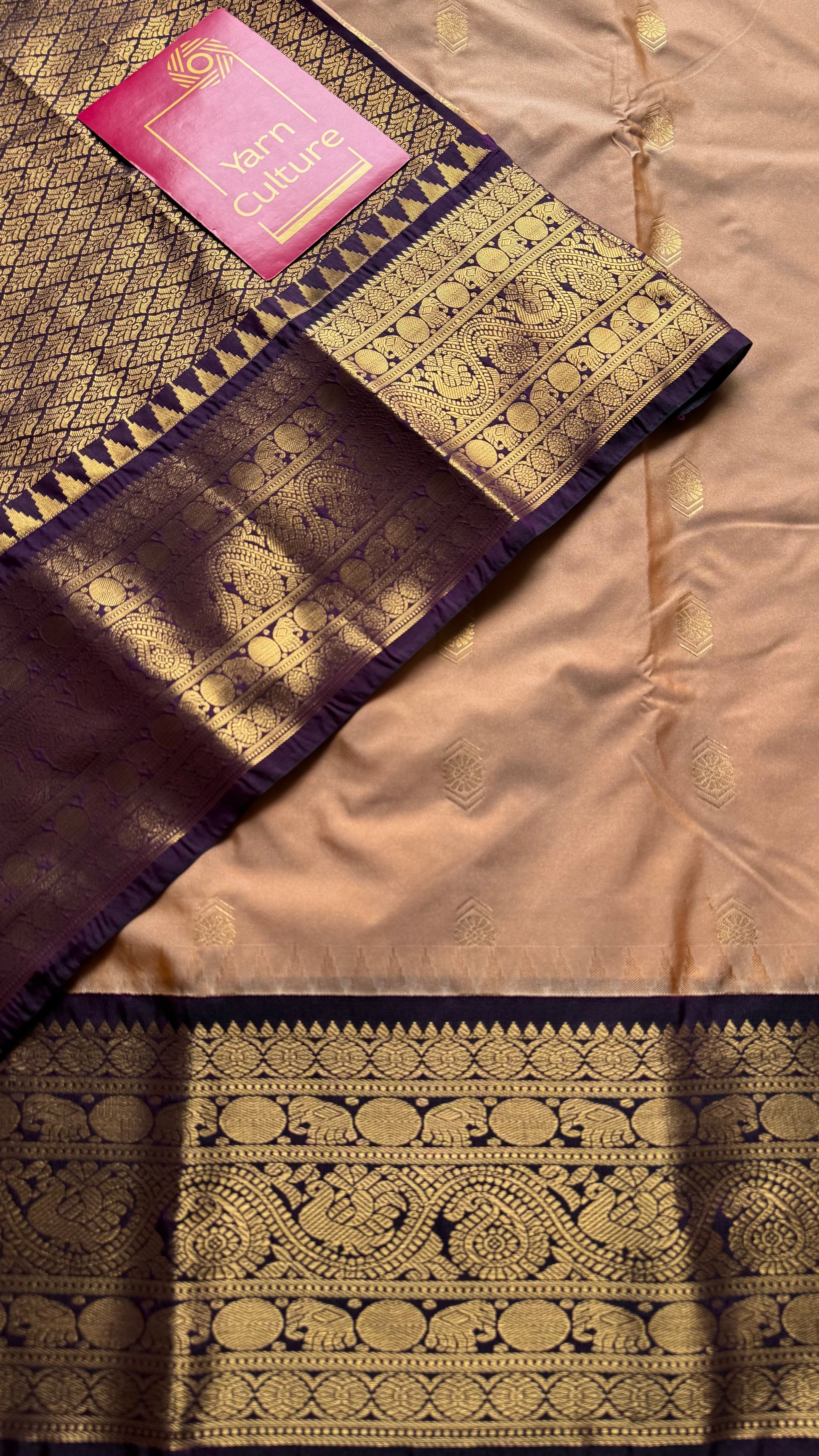 Mohini - beige with deep wine purple, handloom korvai semi silk - YCCOTNFEJUKS06