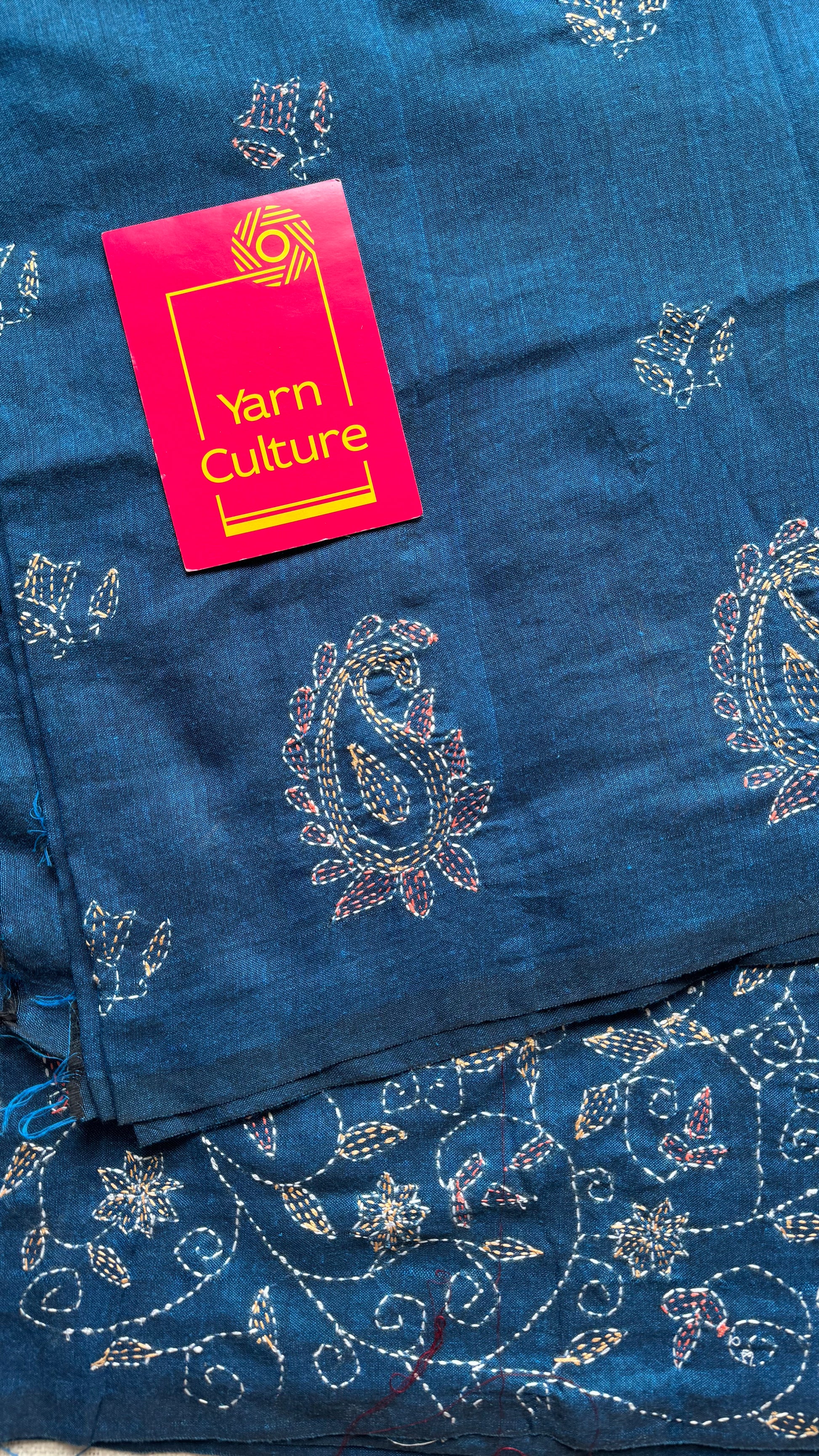 Morupankhi (মরুপঙ্খী) - Peacock Feather, peacock blue kantha weave in soft khadi cotton - YCBCSEKC06