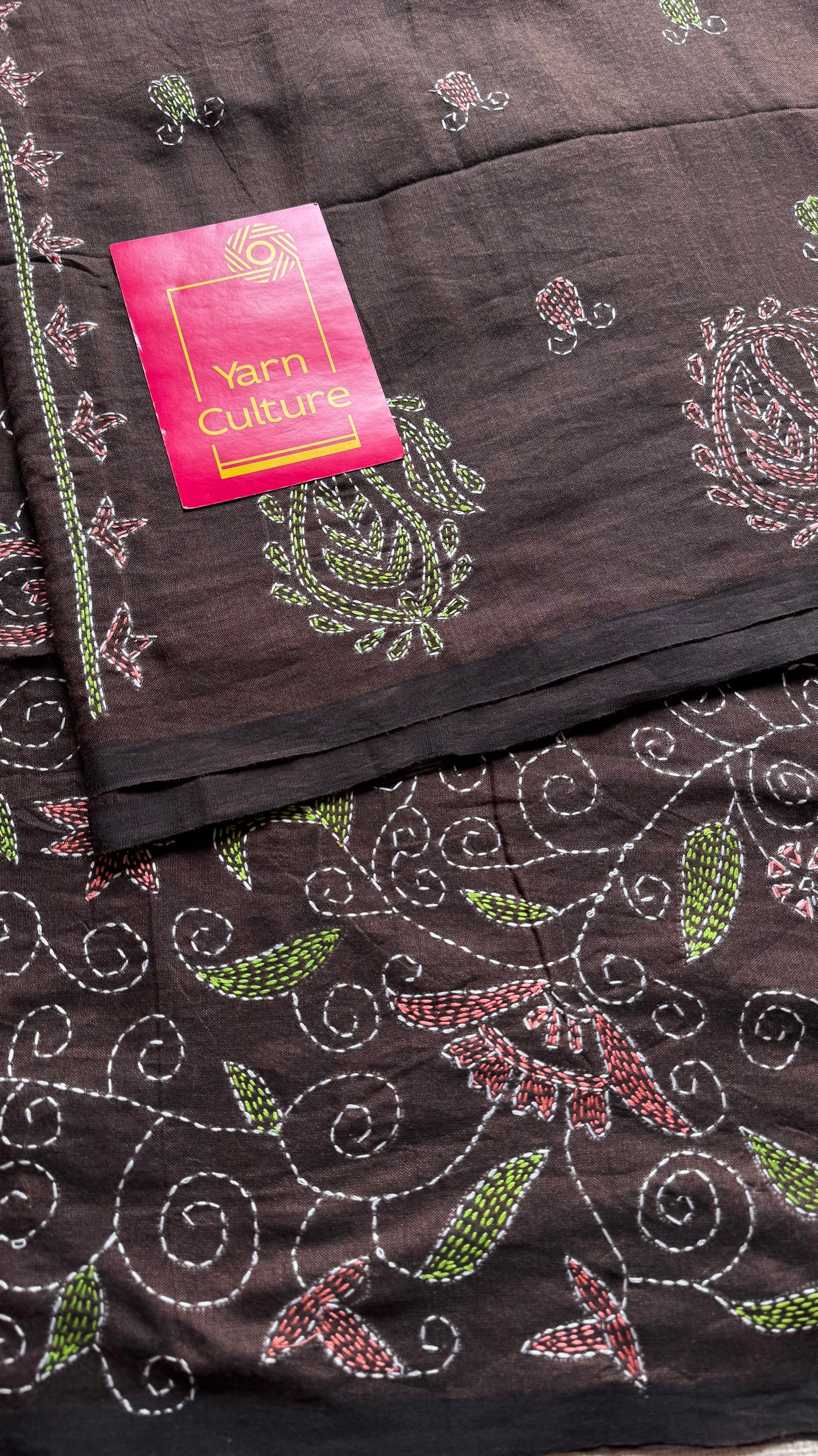 Mrittikar Gondho (মৃত্তিকার গন্ধ) - The Scent of Soil, dark brown kantha weave in soft khadi cotton - YCBCSEKC04
