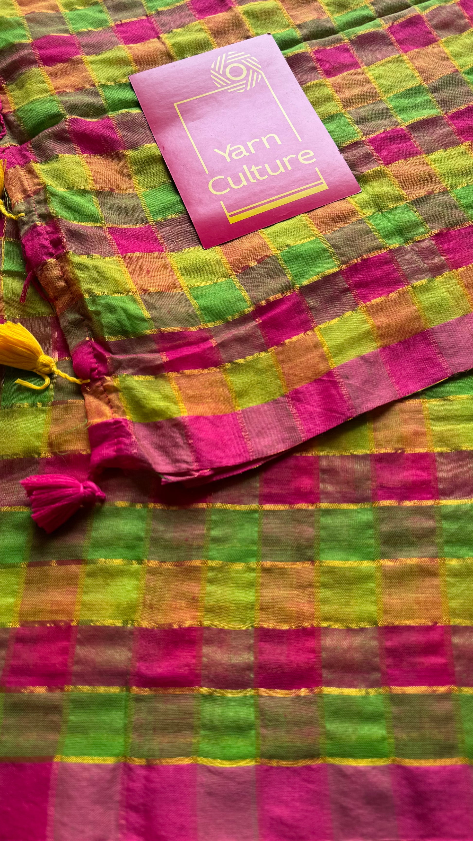 A vibrant mul cotton saree inspired by classic Madras checks, featuring a lively multicoloured check pattern in pink, green, orange, and mauve. Lightweight, breathable, and ultra-soft, it is perfect for summer wear, everyday dressing, and effortless draping.