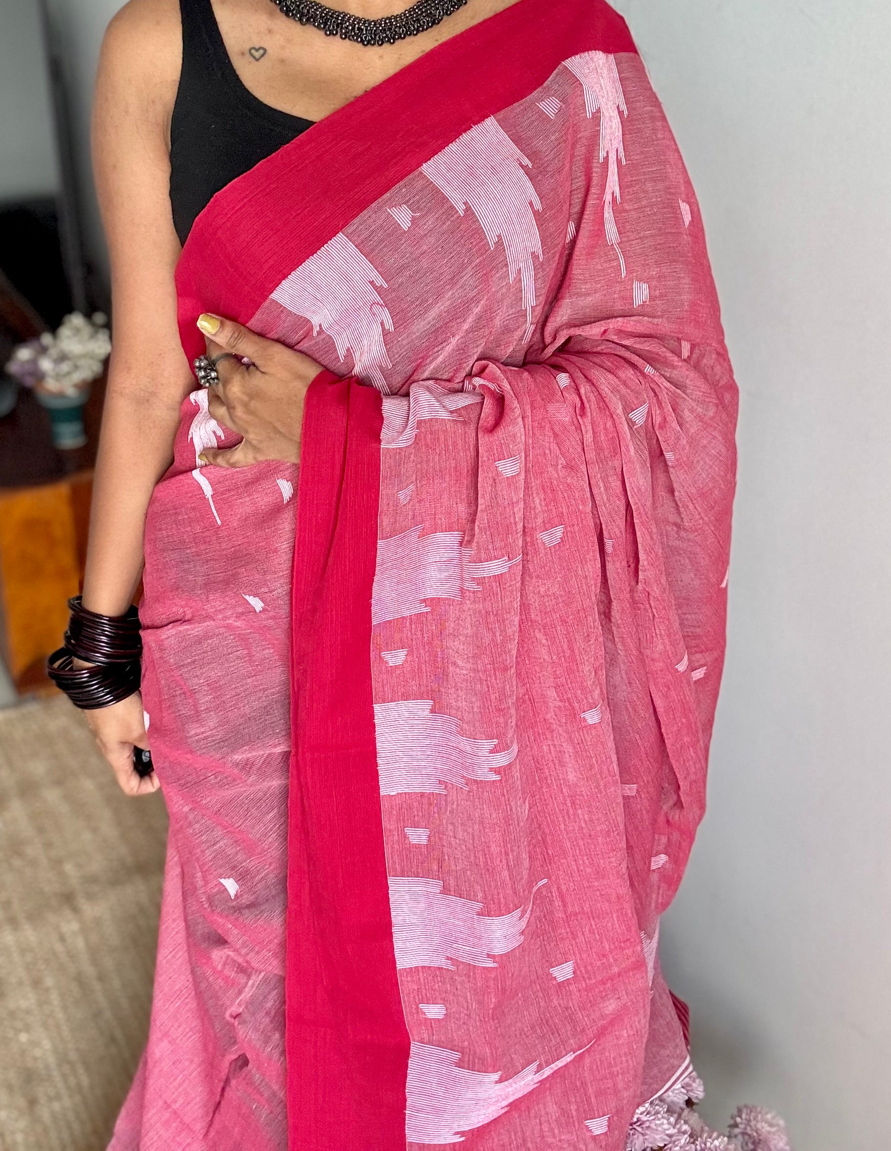 Material: Bengal Cotton/Additional info: With running blouse, Length of saree : 6.3m/ Width: 46”