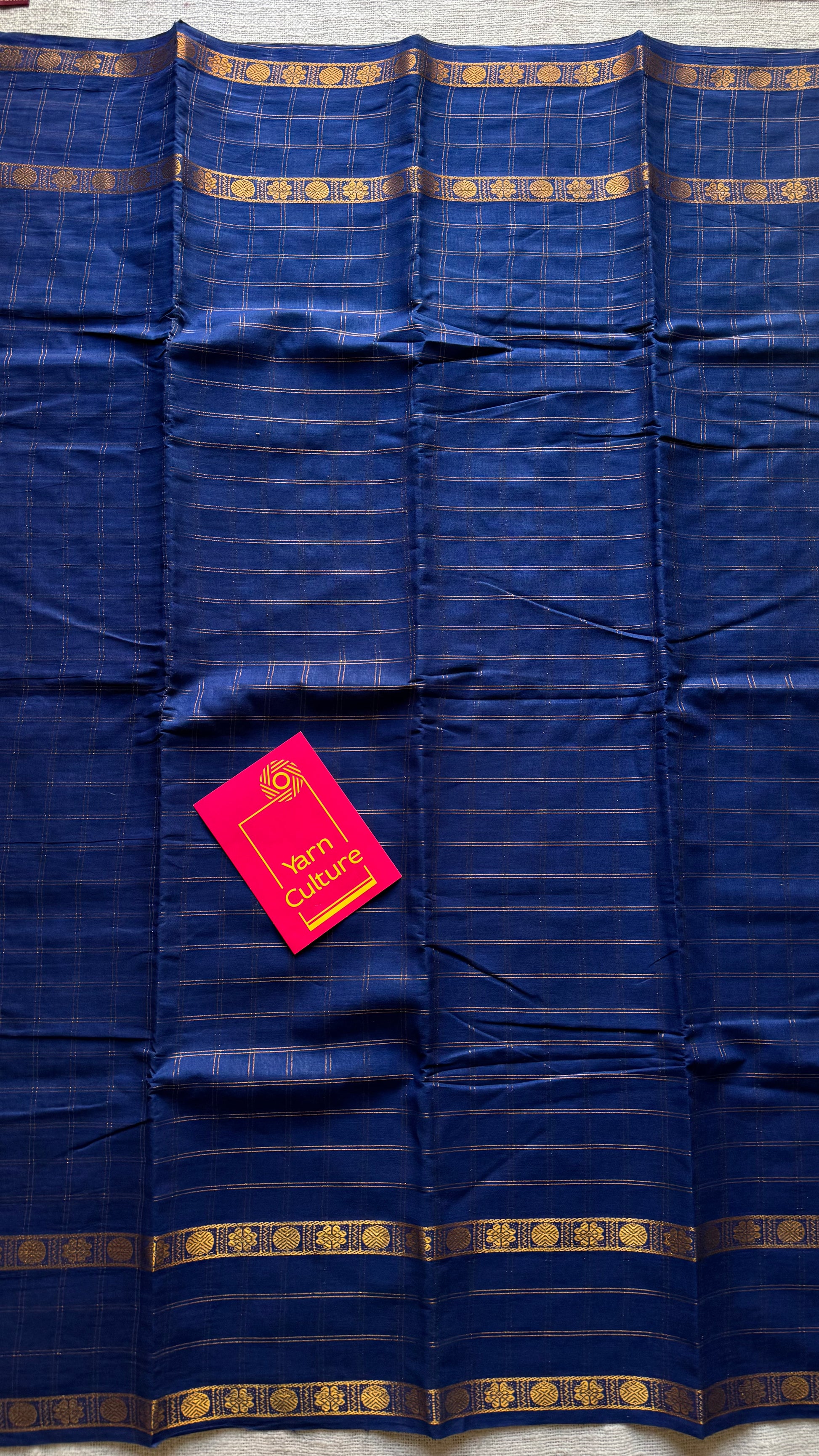 Navy blue adayar gold zari kattam, sungudi cotton - YCCOTNOCSC47