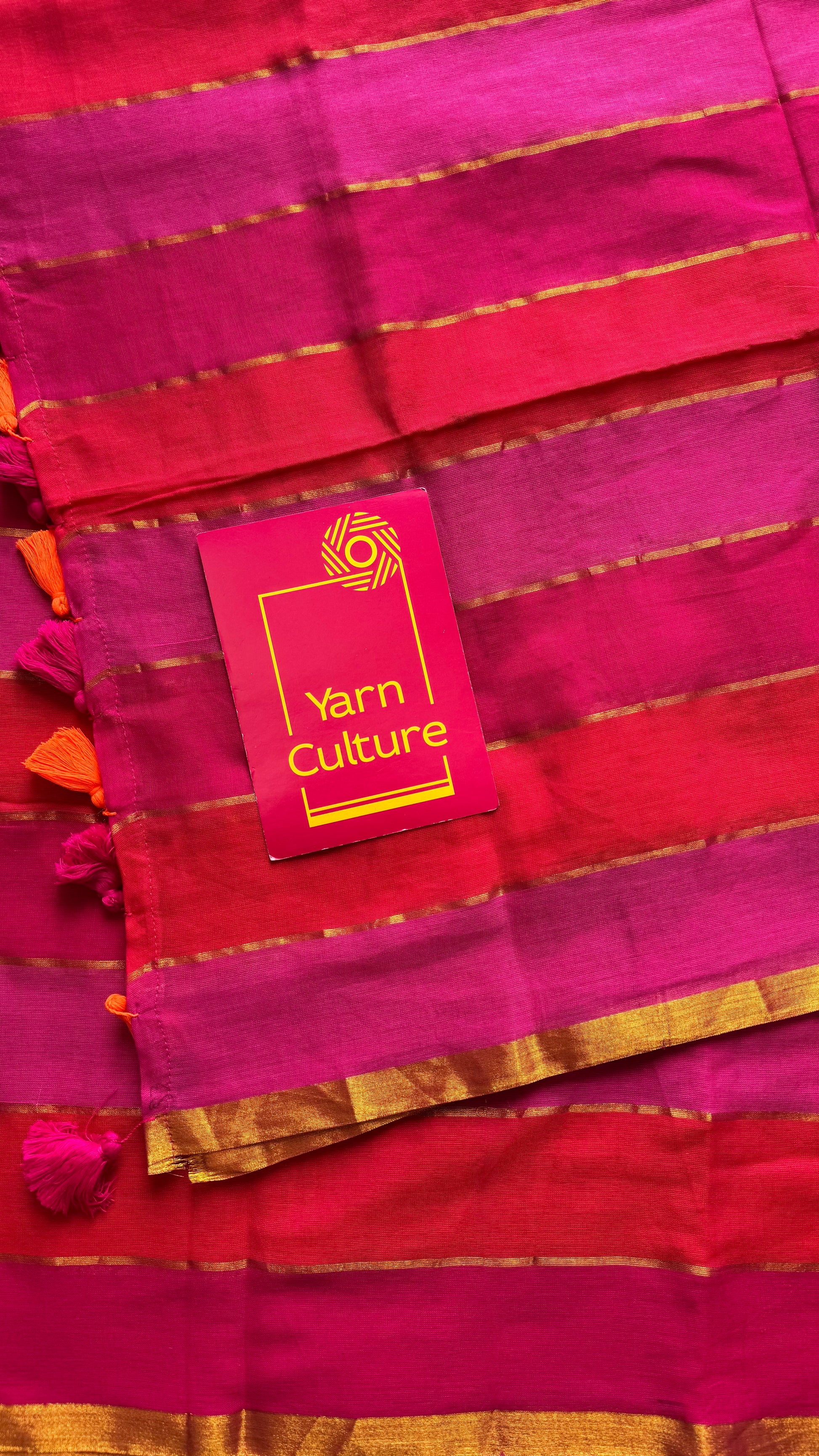 Orange and pink mul with gold multicoloured broad stripes - YCBCMCLSE48
