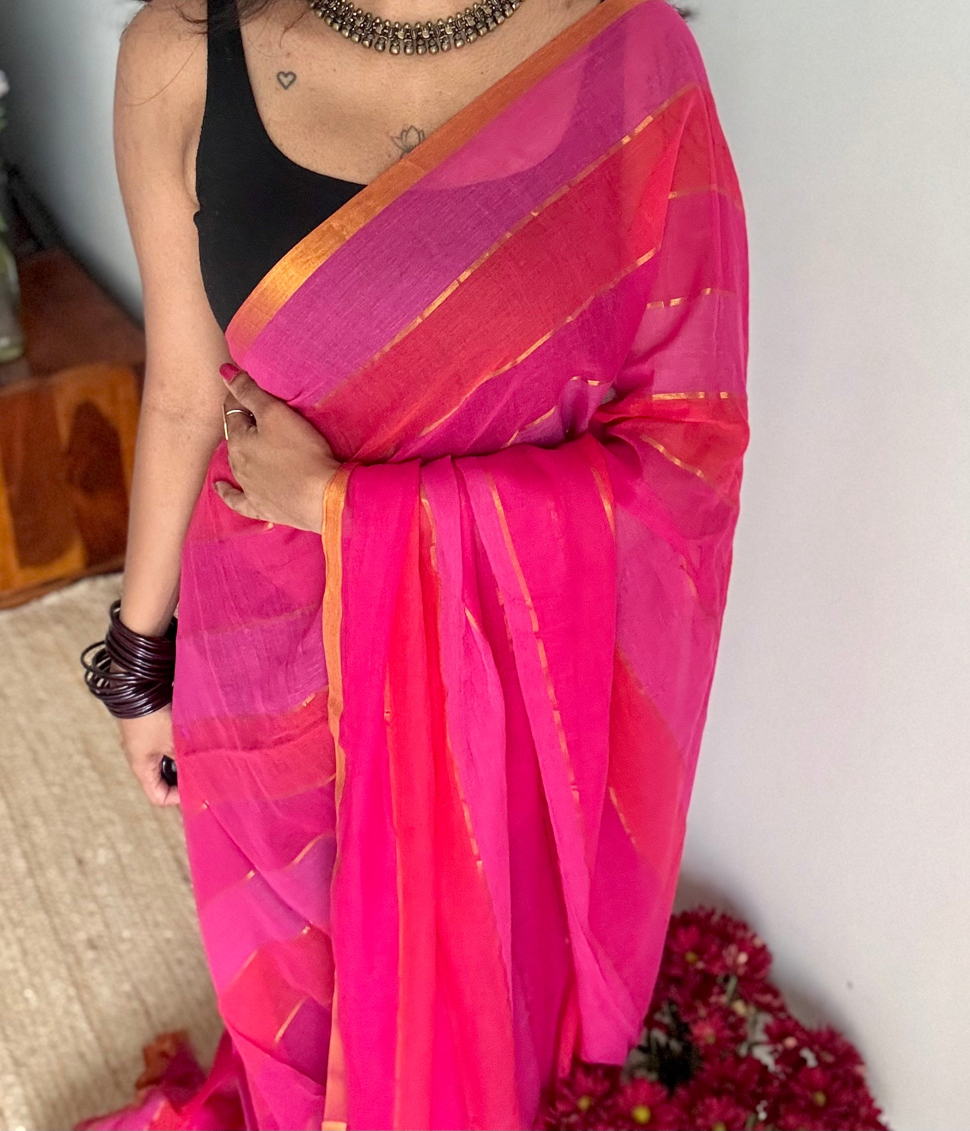 Material: Mul Cotton/Additional info: No blouse, Length of saree : 5.5m/ Width: 46”