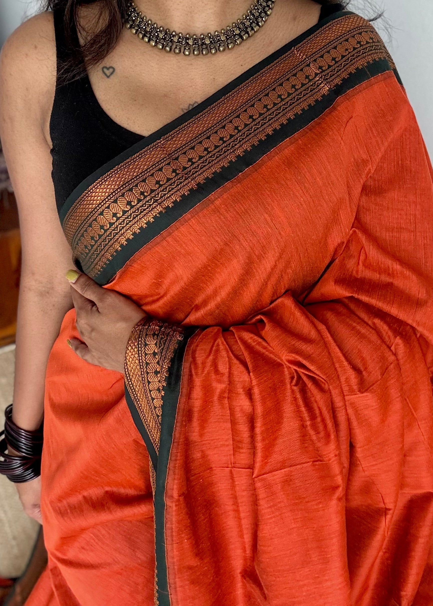 Orange with dark green - cotton silk - YCCOTNSEKCS04