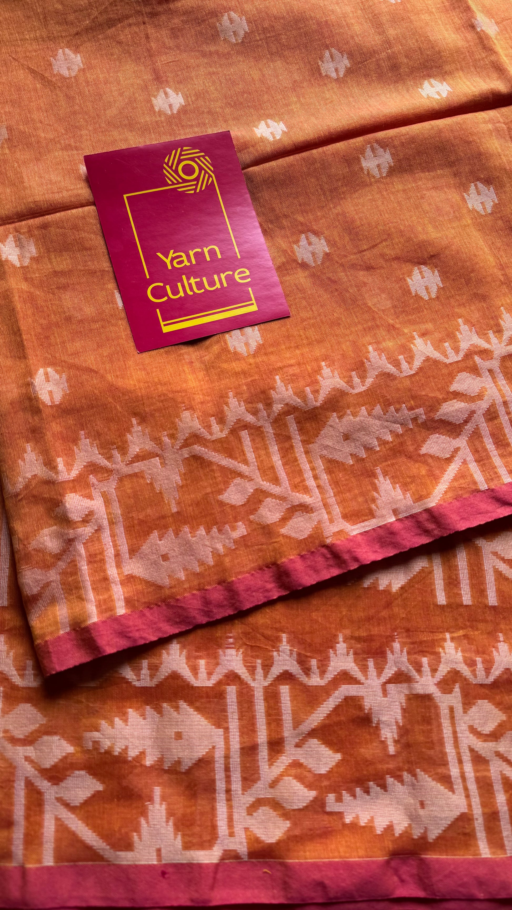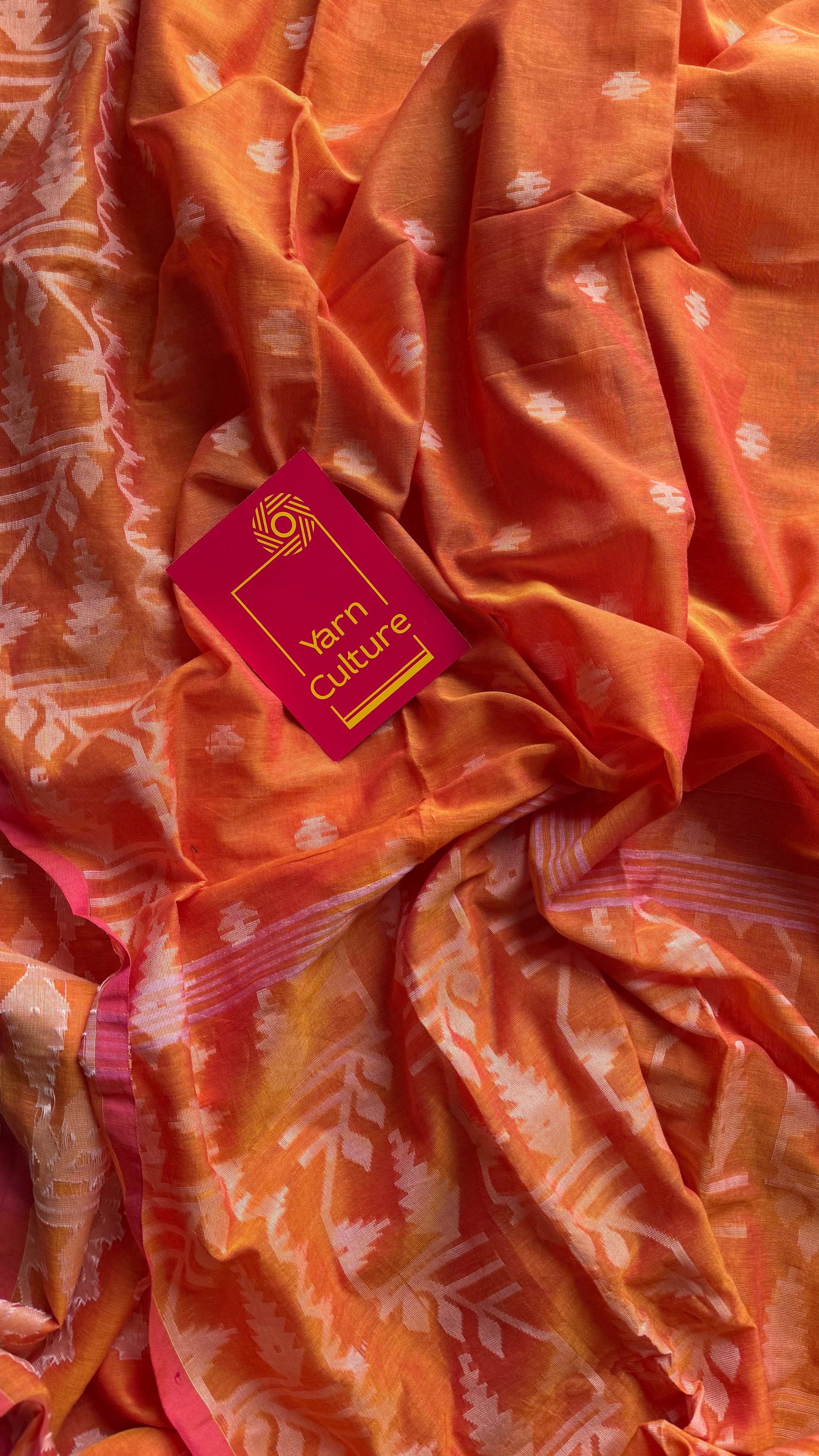 Orange pink double tone jamdani in soft cotton - YCBCKJJA140