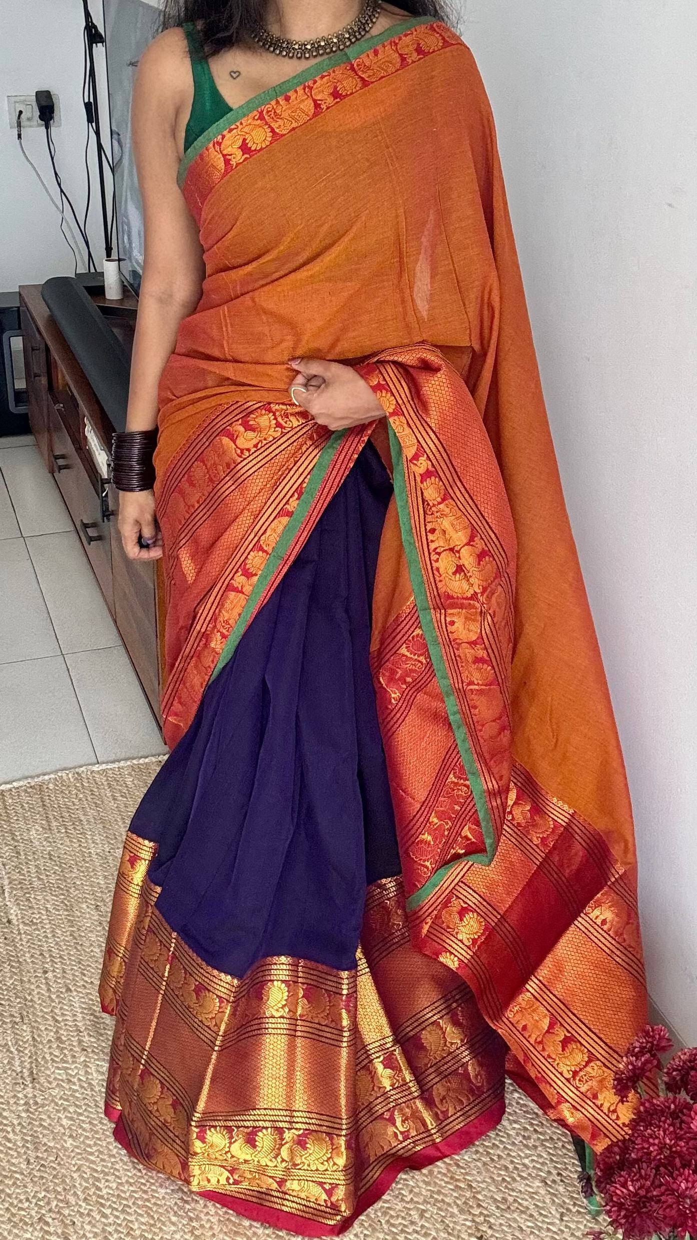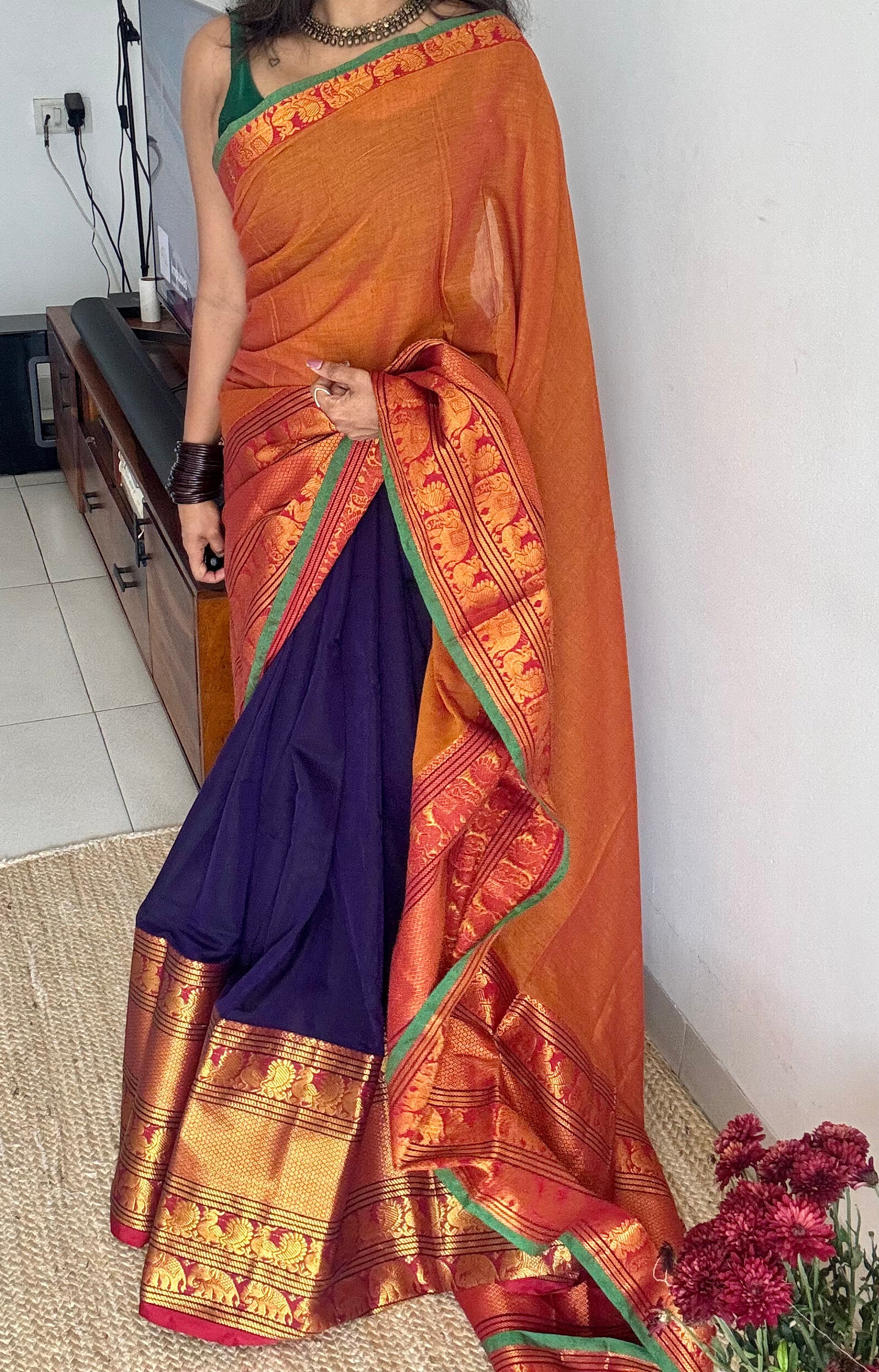 Orange - Violet Narayanpet half saree (dhavani), unstitched material, soft cotton - YCAHSN08