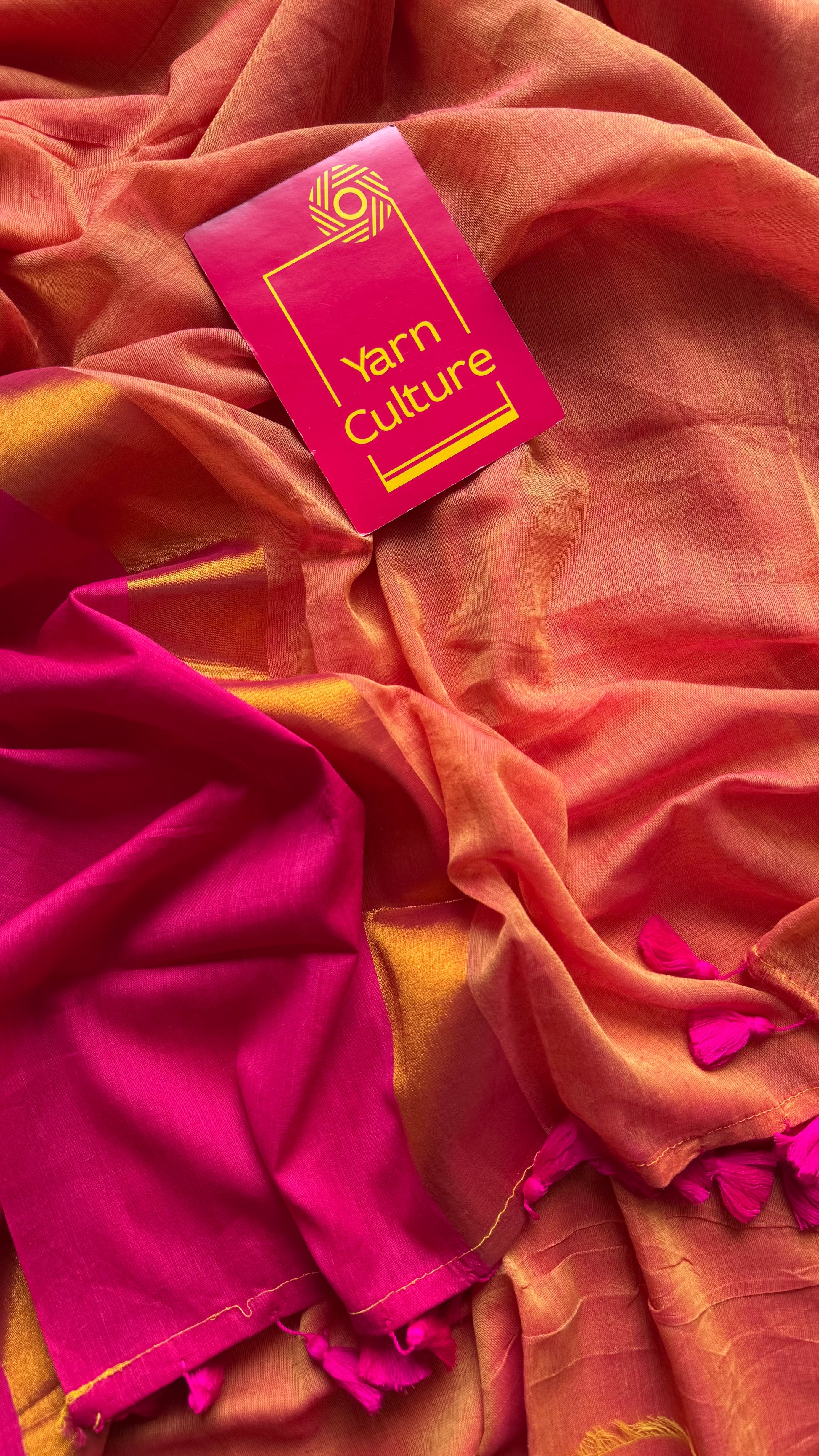 Dual tone orange with contrast dark pink border, gold zari - YCBCMCLSE14