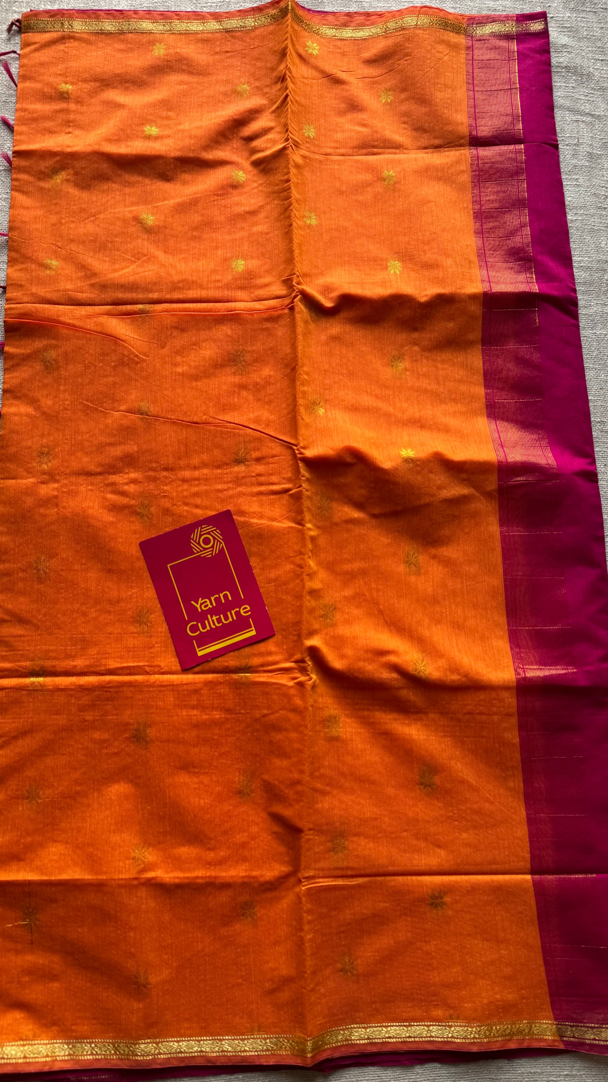 Orange with rani pink, gold buttas, semi maheshwari cotton silk - YCCOTNCSDE88