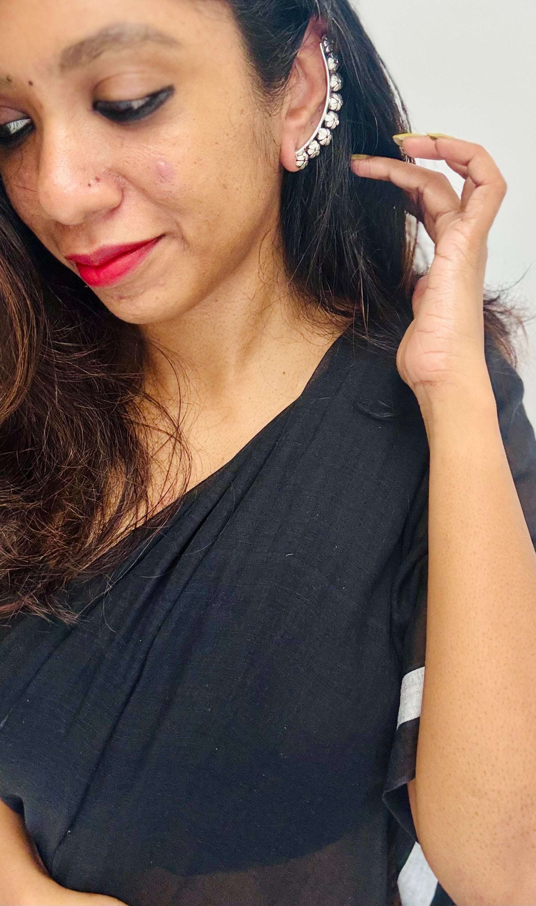 Oxidised silver, floral patterned earcuff.