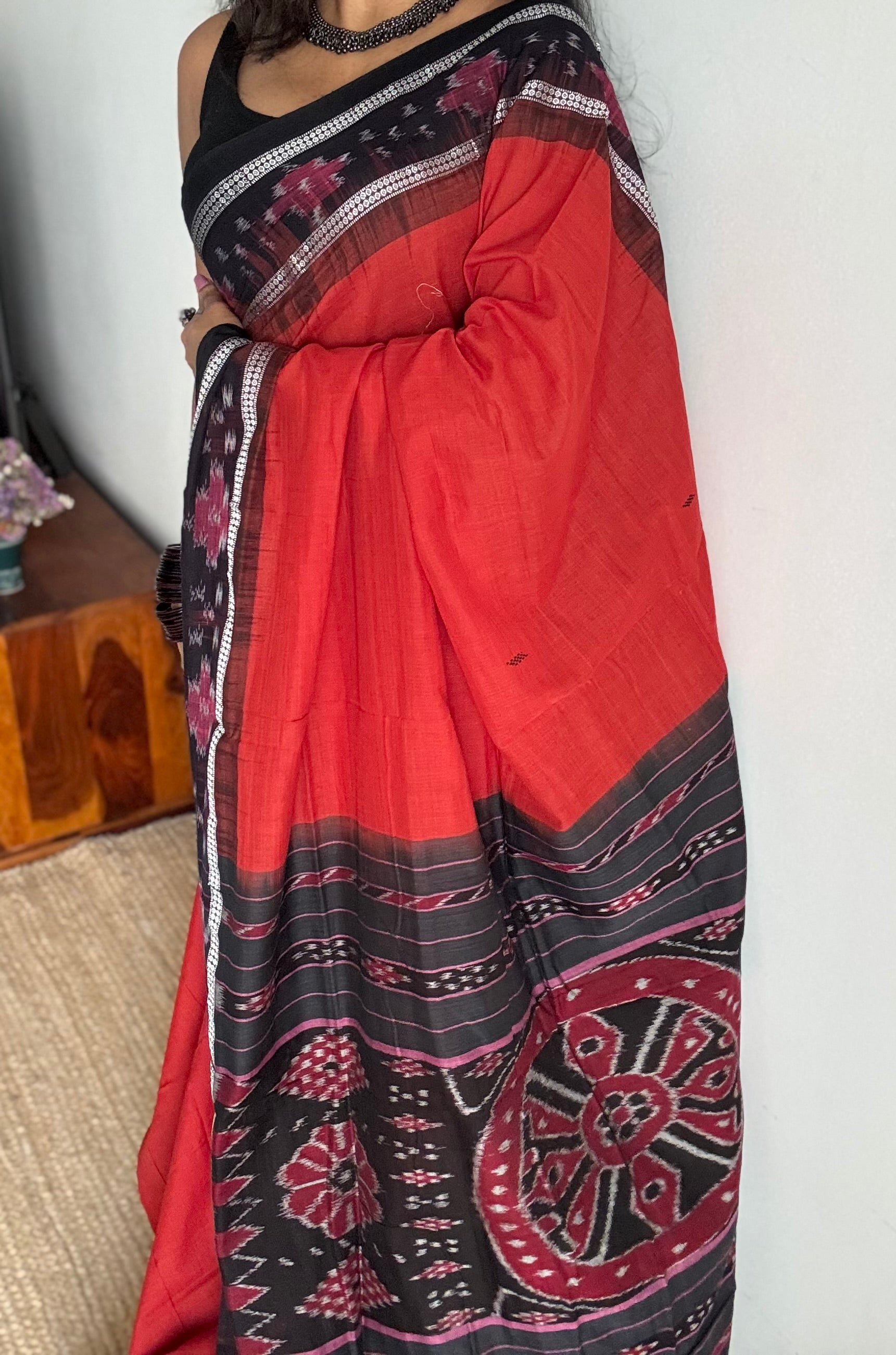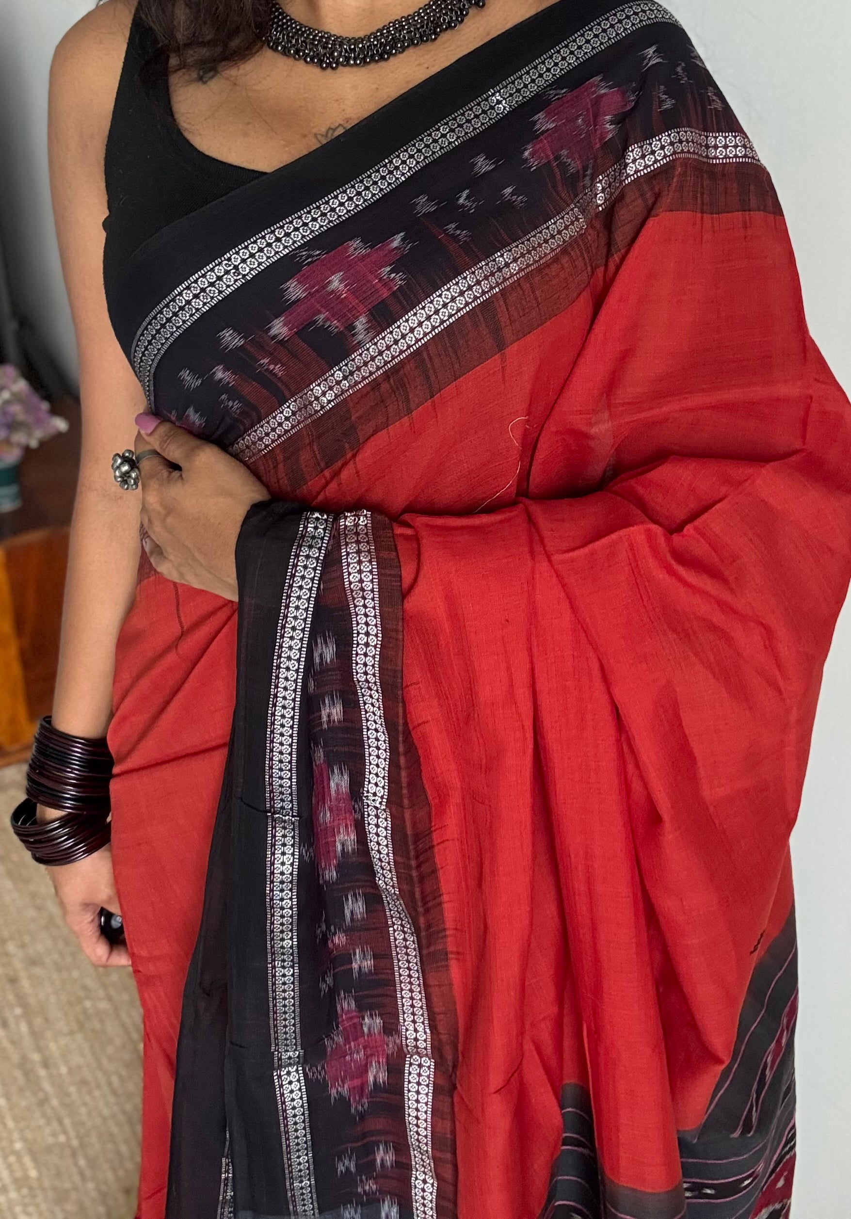 Pasapali Sambalpuri, combination of brick red with ikat border.