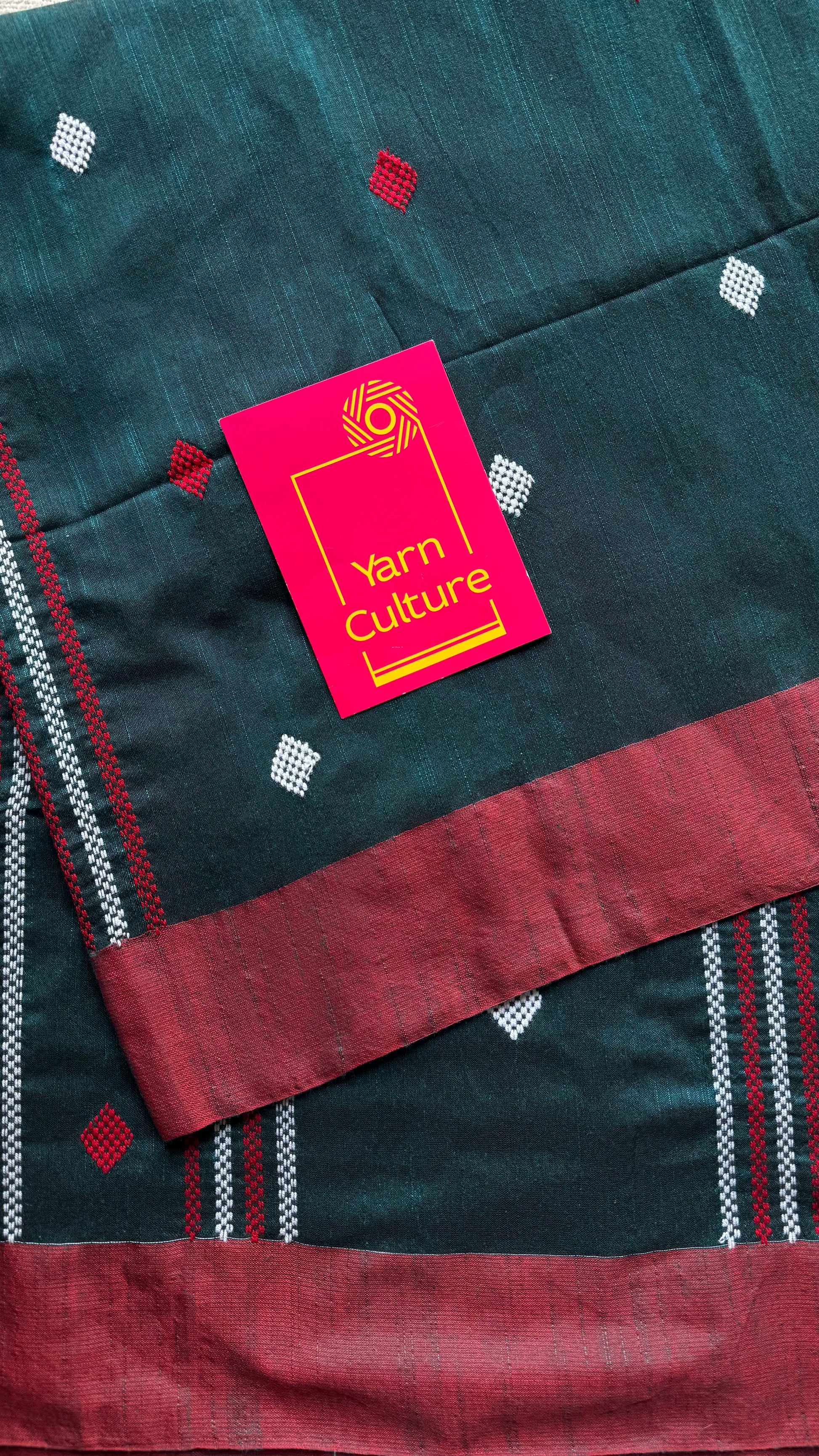 Peacock green with burnt red, soft khadi cotton with woven motifs - YCBCKCDE27